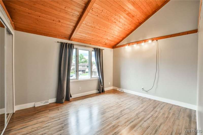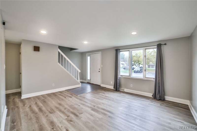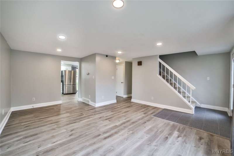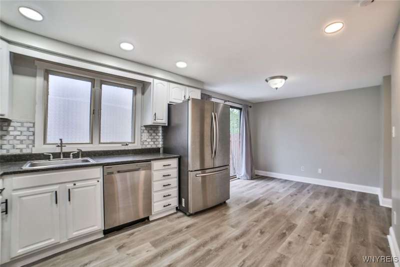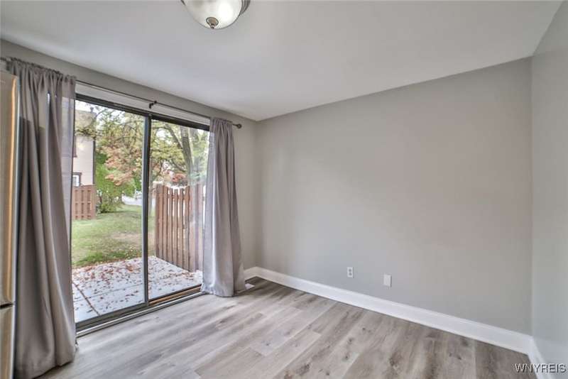 This a lovely, bright, desired end unit that has been freshly painted in neutral tones and is move-in ready. There is attractive newly installed and easy to maintain luxury vinyl flooring throughout the first level with fresh and bright living space. The kitchen is generously sized with pretty white cabinetry, stainless appliances and an eating that will accommodate a large table. This space also offers an abundance of natural light with sliding doors that lead to it's own nicely sized concrete patio. A convenient half bath completes the first floor. There are three bedrooms and a nicely updated full bath on the second floor with a large primary bedroom that offers tongue and groove vaulted ceiling and a full wall of closet space. There is generous closet and storage space throughout this home. You will find the bonus of additional living space in an attractively finished drywalled and carpeted room in the basement level. There is a washer, dryer, workbench and storage space in the other half of the basement, Enjoy easy living in this pet friendly community with a short way to the swimming pools, tennis courts and playground and quick access to the I-90. golf course, doggie park and all conveniences. There is nothing to do but move-in and enjoy.