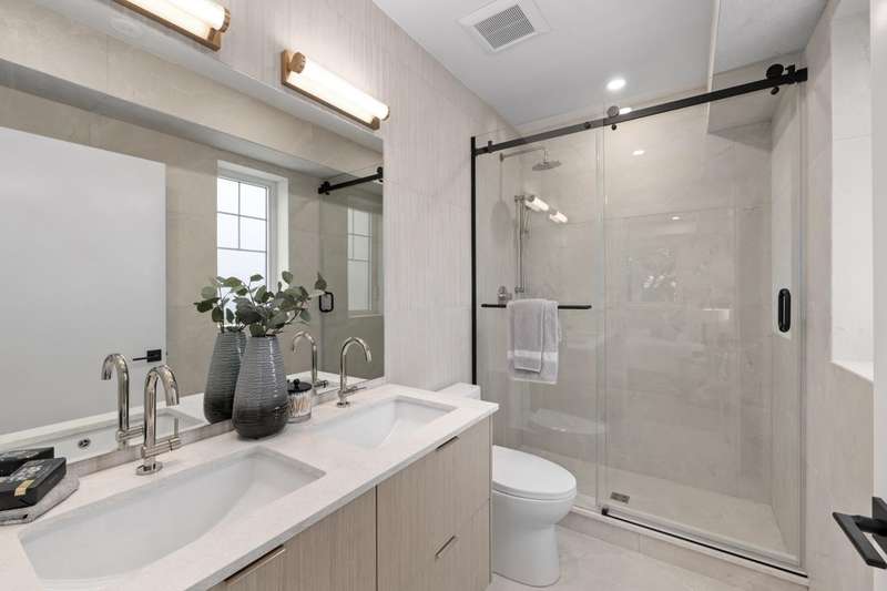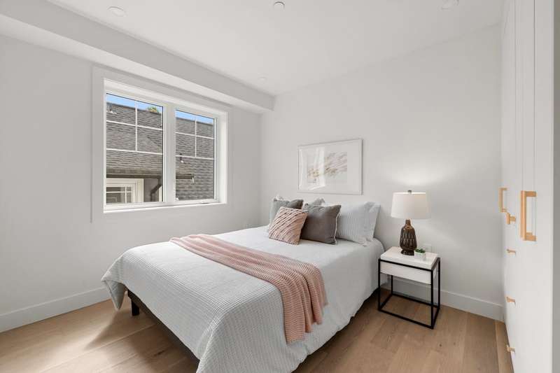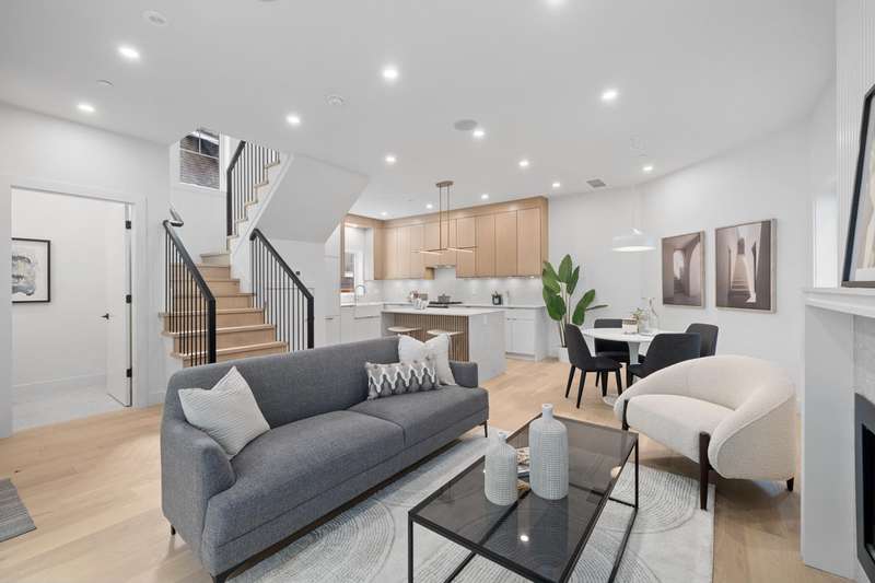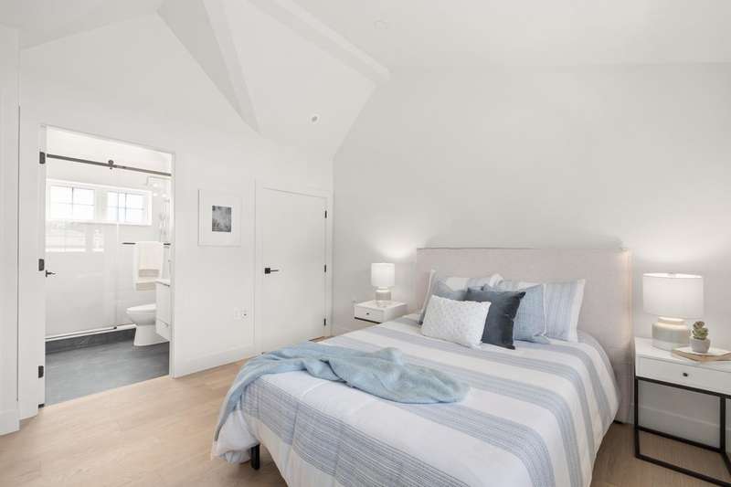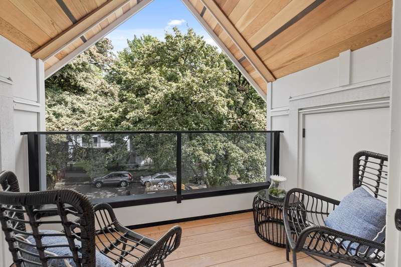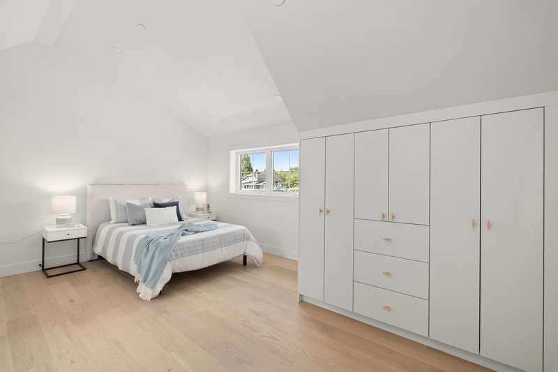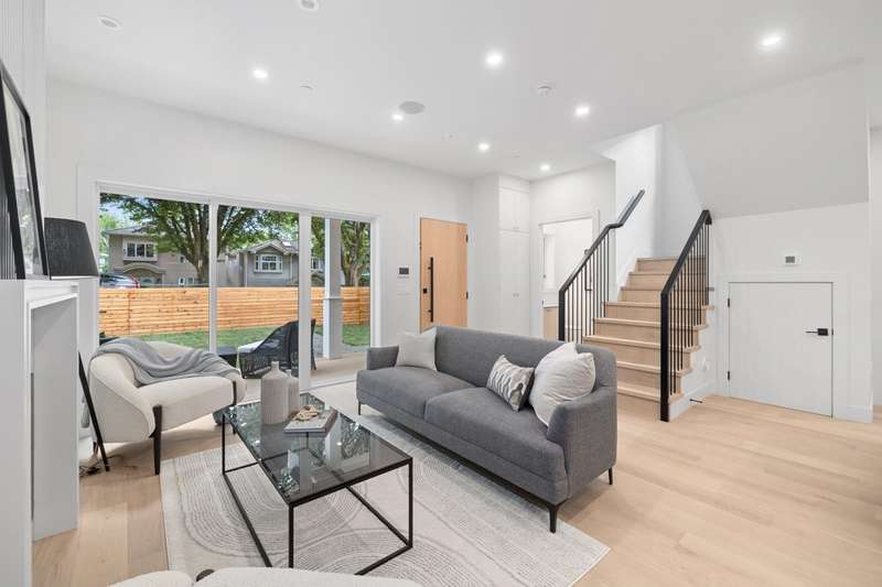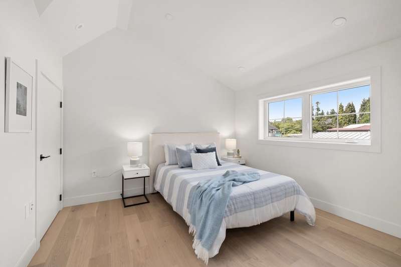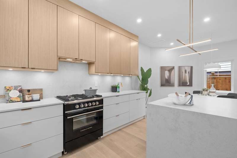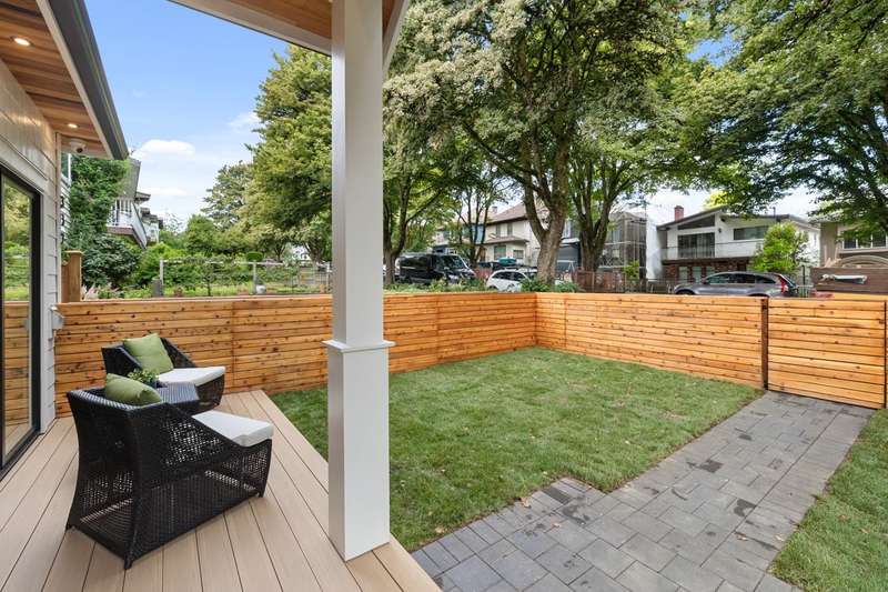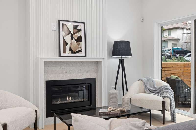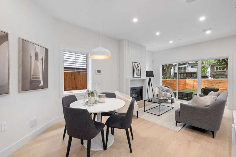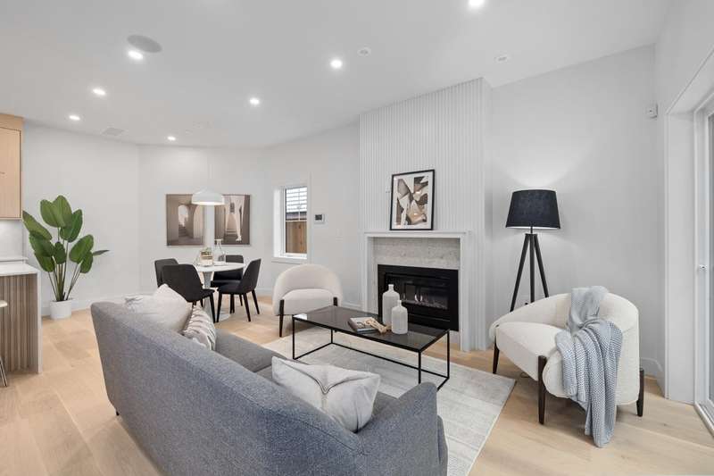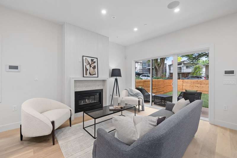 This 3 bed, 3.5 bath 1/2 duplex which has been perfectly designed for your growing family. The large kitchen w/ island features integrated Fisher Paykel appliances and matte finish quartz countertops. The spacious living room w/ gas fireplace leads out onto the patio and fully fenced yard. On the 2nd floor the primary bedroom has a large walk-in closet and double vanity ensuite. The upper floor consists of a secondary primary bedroom featuring an ensuite bath and private balcony.. There is plenty of storage with the private EV capable garage & crawl space. Enjoy peace of mind with the fully fenced yard, security system & 2-5-10 New Home Warranty. Unbeatable location close to Main Street/Prince Edward Park. Open House Sept 27th/28th Sat/Sun/2-4pm