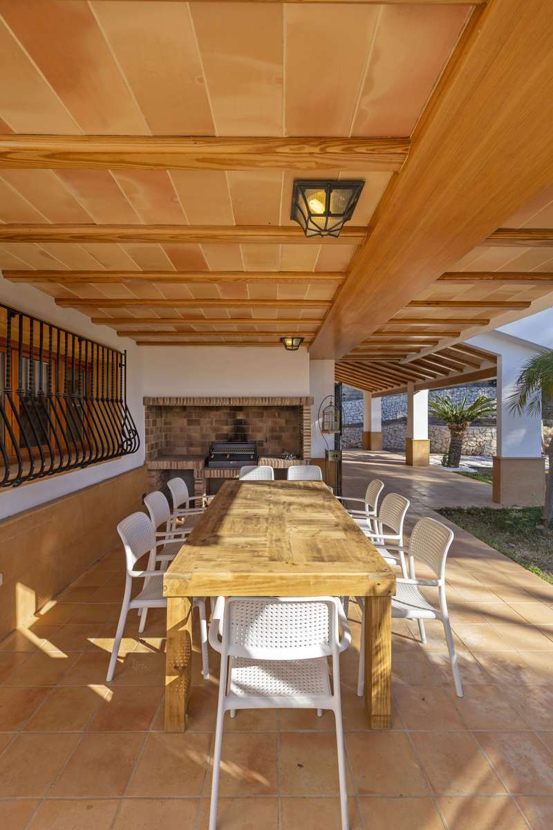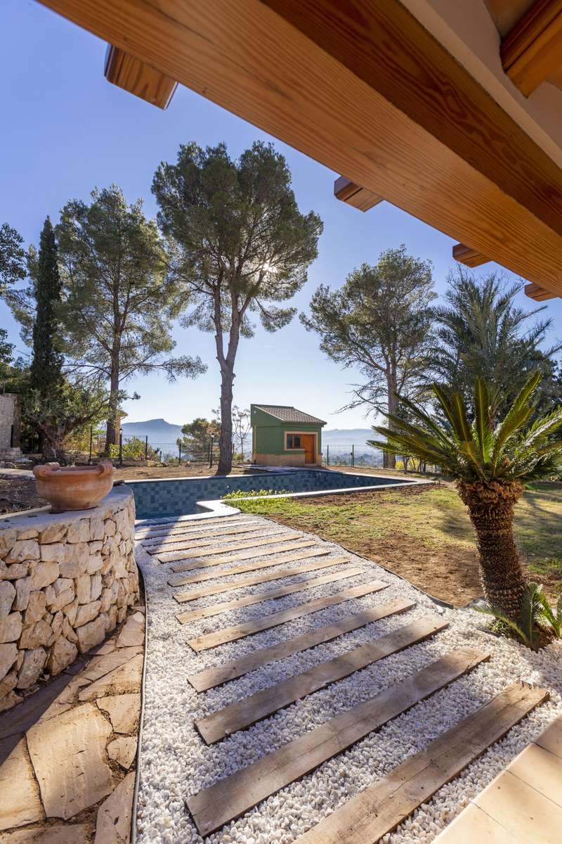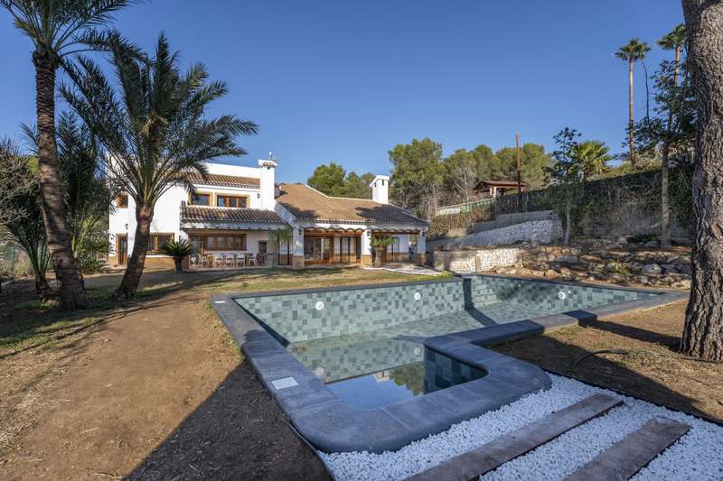 This spectacular, recently renovated brand new villa is located in the heart of the Marxuquera, an idyllic valley, surrounded by mountains and forest and, in addition, very close to the tourist town of Gandía, which has all the services and one of the best beach areas of the province of Valencia. The villa is located in the urbanization Entrepinos, which has 24 hours surveillance, public transport service at the entrance and is surrounded by pure nature. The house, in a Mediterranean style, has been completely renovated, creating a modern and functional atmosphere, along with warm and homey. It rises on a plot of more than 2,000 m2, which is in a dominant position over the rest of houses, thus providing a privileged view from any of its rooms. Wideness and consistency are words that can better define their distribution. In its more than 350 m2, we do not find lost or useless areas; all space is used to live comfortably. The separation of day, enjoyment, rest and relaxation areas is perfectly defined by the very structure of the house. Its garden area is useful almost entirely, since, despite being an elevated plot and with unevenness, it was worked to make the area of enjoyment of the garden flat, obtaining comfort and privileged views. The house has three bedrooms and three main bathrooms and another secondary in its semi-basement area. This area can also be developed as a cellar, gym, meeting area, etc. In its garden, of Mediterranean style and easy to maintain, we find a large swimming pool, green areas and a terrace to live much of the year, with its own outdoor kitchen and different areas for the different seasons of the year. Despite its private location, it is only a few kilometres from the A-7 motorway and less than 70 kilometres from the city of Valencia.
