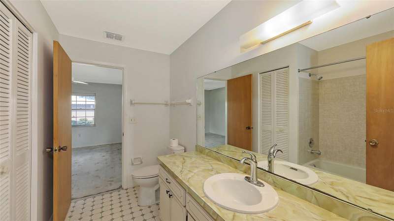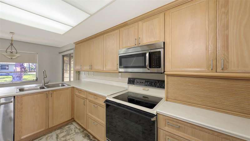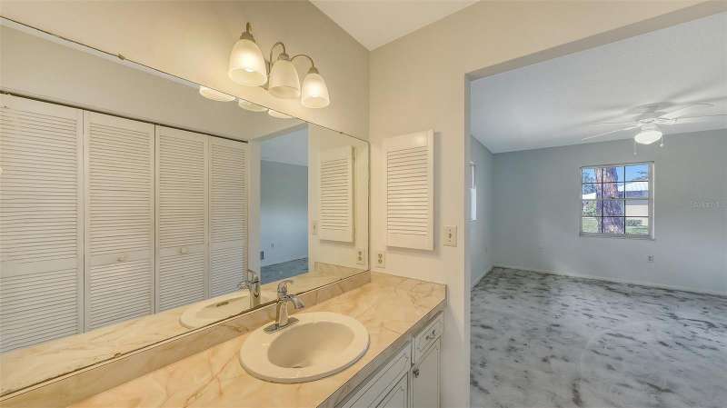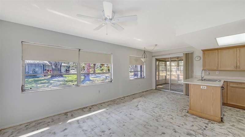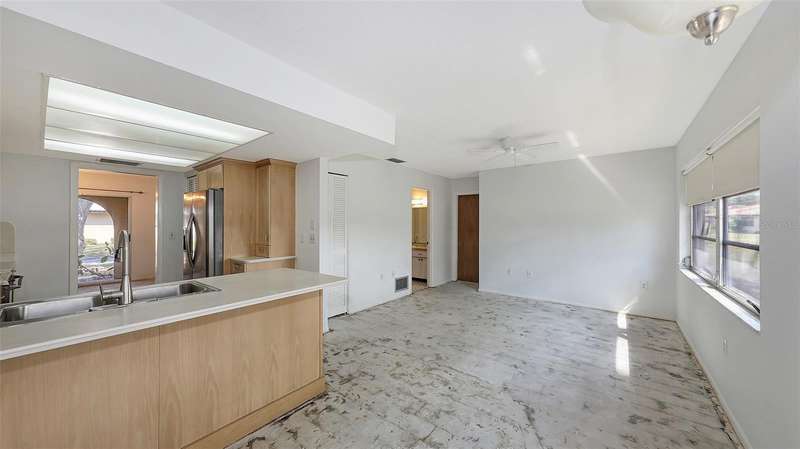 NEW ROOF IS ON! Seller credit of $2000 towards new flooring with an acceptable offer! Bring your vision to this wonderful villa in the heart of Nokomis. Situated in one of the most desired locations within Sorrento Villas, is a hidden gem just waiting for a new owner to make it their own. This special unit has just had a new coat of paint throughout, and all the flooring removed and prepped for an install of your choosing. Just under 1500 square feet, the two-bedroom two bath unit feels spacious and inviting. The back lanai has a serene view of the lake within the community, complete with abundant Florida wildlife. AC replaced in 2020, refrigerator and kitchen faucet in 2022, bathrooms refreshed with faucets, sinks and toilets in 2021, garage door opener in 2023, whole house replumb in 2011 and so much more. Close to all the area has to offer, beaches, shopping, parks and the renowned Legacy Trail. The HOA will be replacing the roof and soffits in the next few months and this villa is due for exterior painting next year (all HOA responsibility). This is your chance to live the dream in warm and sunny Florida. Opportunity awaits!