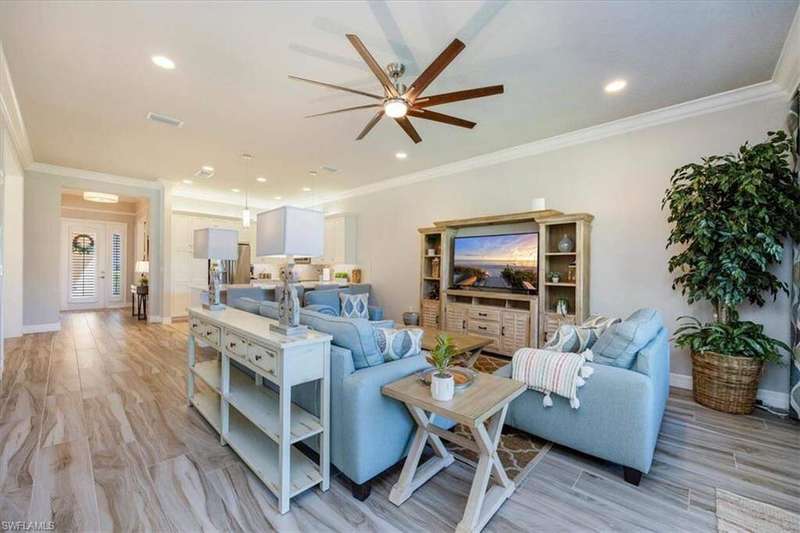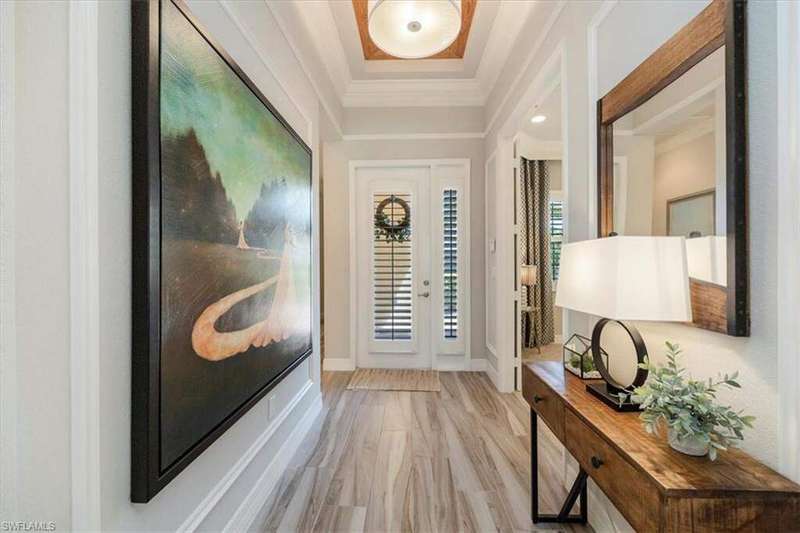 "Live Life Beautifully in Southwest Florida" in this Meticulously Maintained, Fully Furnished Villa with Lake View at Marbella Isles in Naples, FL . Welcome to this beautifully appointed 2-bedroom + den, 2-bath attached villa in the highly sought-after Marbella Isles community. Boasting a serene lake view and an array of upscale upgrades, this meticulously maintained home offers the perfect blend of comfort, style, and functionality - all from its original owner and offered fully furnished. Step inside to find wood-look tile flooring throughout the main living areas, plush carpet in the bedrooms, and designer details at every turn, including crown molding, wainscoting, plantation shutters, and custom draperies. The tray ceilings feature beautiful wood inlays adding a warm, elegant touch. The chef's kitchen is upgraded with soft-close cabinetry, quartz countertops, and premium finishes, matched seamlessly in both bathrooms. The den is outfitted with a California Closet system with Murphy beds, making it a versatile space that allows the home to comfortably sleep six. Additional features include: Two-car garage, Accordion hurricane shutters on all windows and slider, Electric hurricane screen on the lanai, Extended patio overlooking the lake, Upgraded laundry room with brand-new washer/dryer, cabinetry, and sink. Marbella Isles is a low-fee, gated resort-style community ideally located in the heart of Naples - just 7 minutes to Mercato, 10 minutes to local beaches, 15 minutes to Downtown Naples, and 25 minutes to Southwest Florida International Airport. Amenities include: Resort-style pool and separate kiddie pool with slides, Spacious clubhouse with full kitchen, card room, and game room, Tennis, pickleball, bocce ball, half-court basketball, volleyball, Fitness center and social activities for all ages This villa is truly move-in ready - perfect as a full-time residence or seasonal retreat. Don't miss the opportunity to own in one of Naples' most desirable communities!