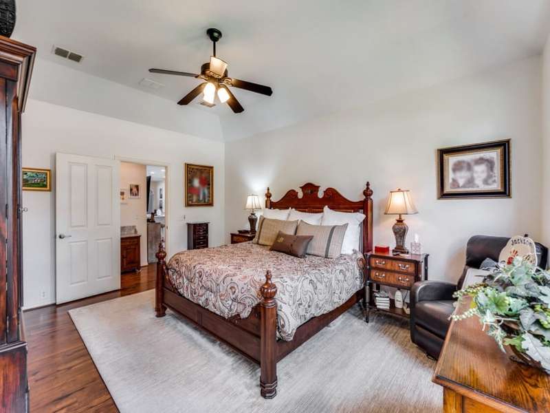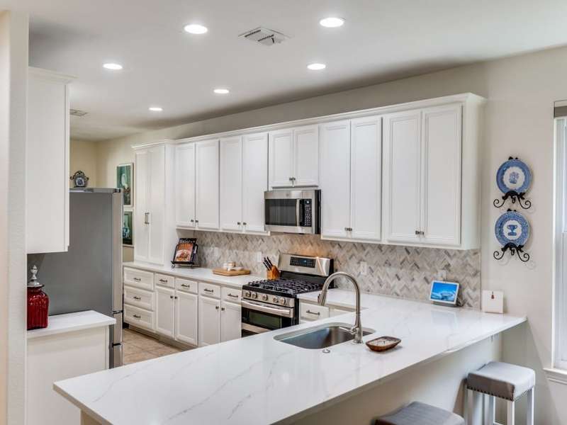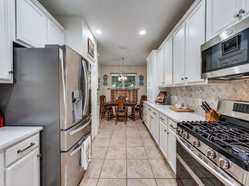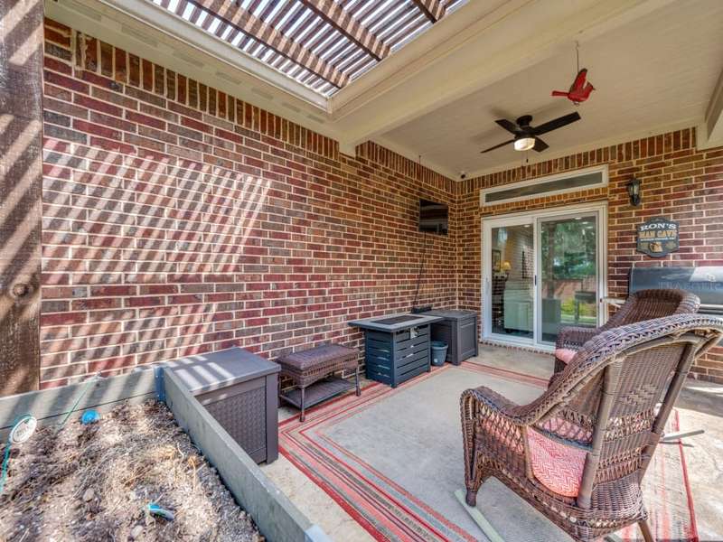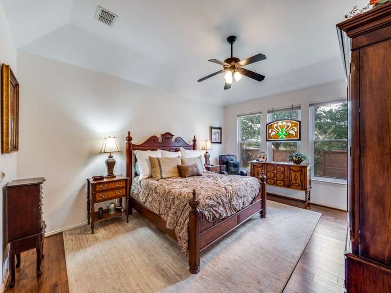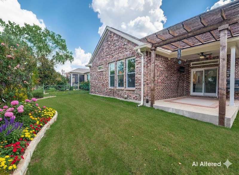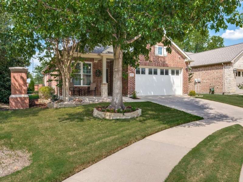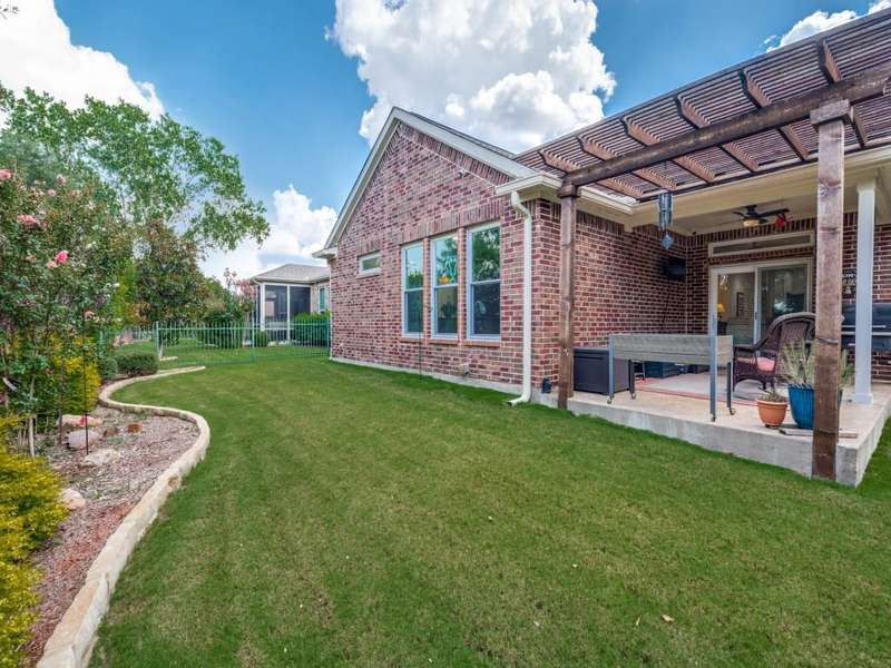 Exquisite Bayberry plan on a private cul-de-sac with no rear neighbors! Step inside to hardwood floors and a gorgeously renovated kitchen featuring custom cabinetry, abundant counters, and a gas range - perfect for the inspired chef. The open layout flows seamlessly into the family room, ideal for entertaining. Retreat to the spacious primary suite with walk-in closet and spa-style shower with bench. Two secondary bedrooms are privately tucked away. Outdoors, enjoy two covered patios plus an extended patio with cedar pergola, creating a fully fenced serene and private backyard oasis. There is even a doggy door! Sound deadening windows (2018) add peace of mind. Roof was replaced in 2022. Oversized garage. Amazing amenities include 3 resort-style pools, walking and biking trails, 3 activites centers with gyms, tennis, pickle ball, bocce, indoor pool, golf and so much more. Come see what all Frisco Lakes has to offer! Frisco Lakes is an active lifestyle community (age restricted 55plus).