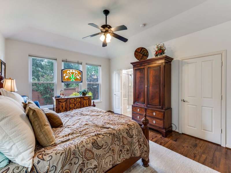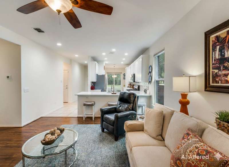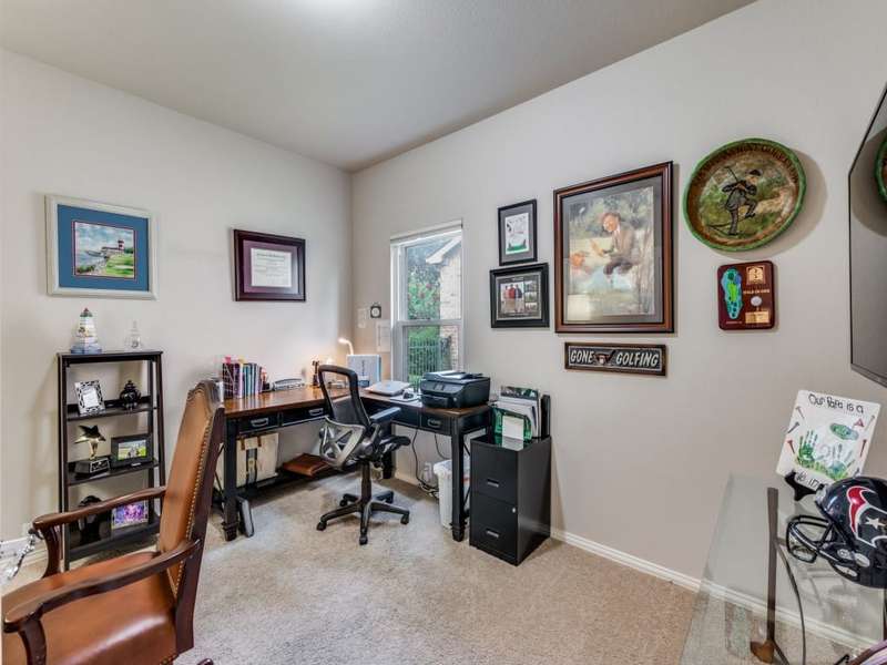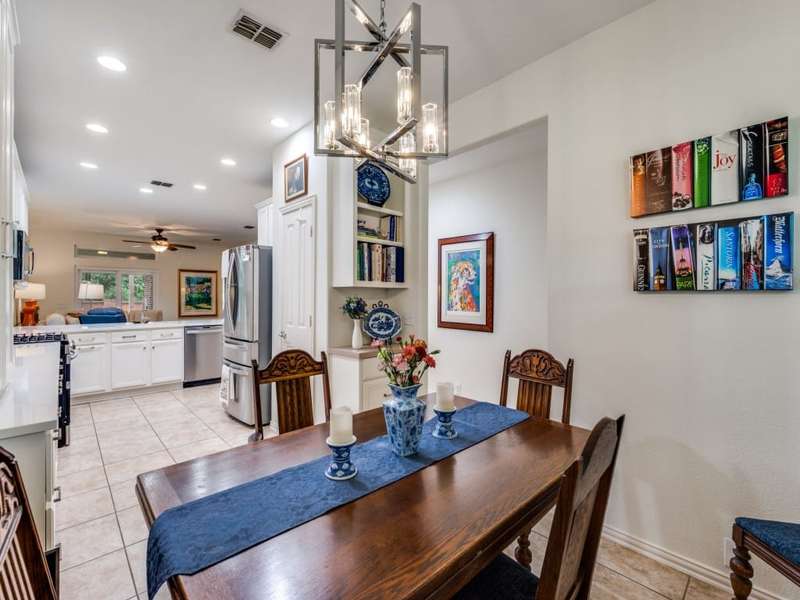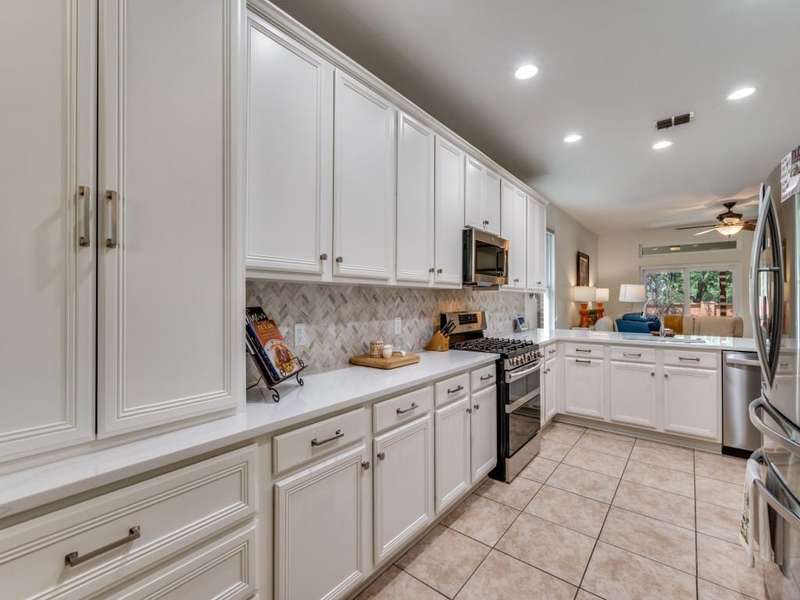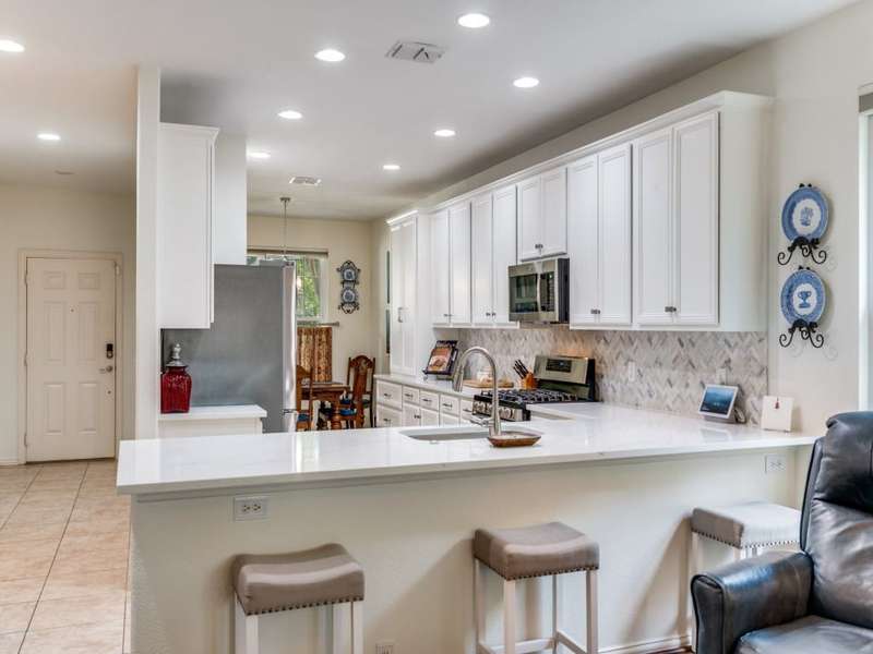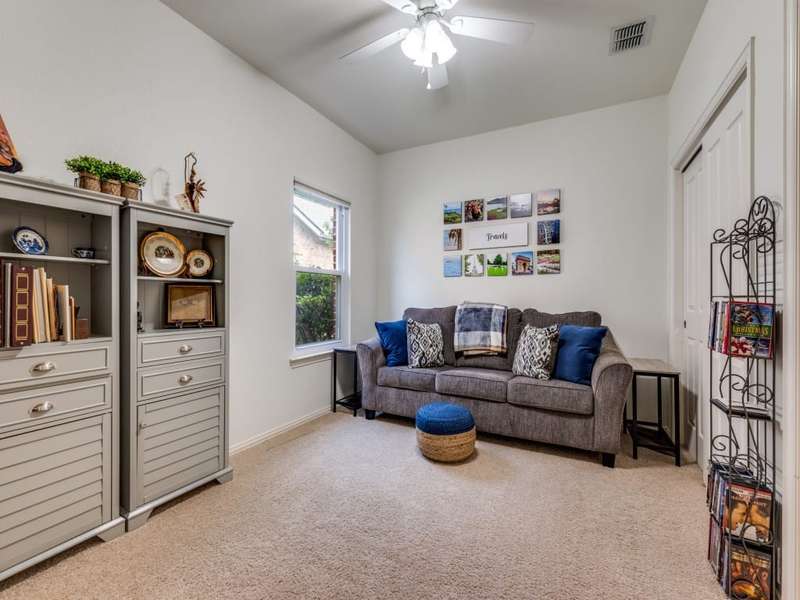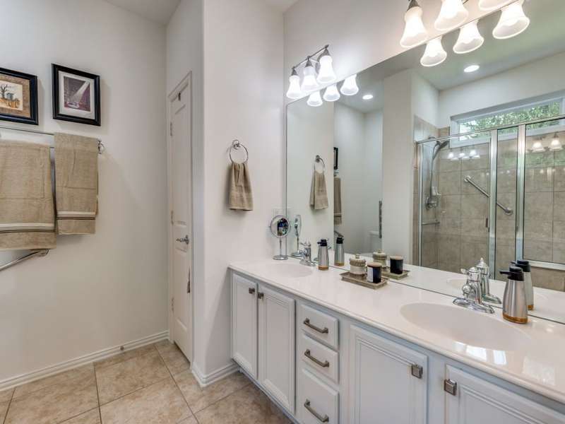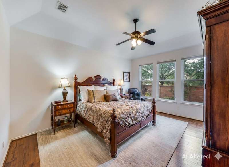 Exquisite Bayberry plan on a private cul-de-sac with no rear neighbors! Step inside to hardwood floors and a gorgeously renovated kitchen featuring custom cabinetry, abundant counters, and a gas range - perfect for the inspired chef. The open layout flows seamlessly into the family room, ideal for entertaining. Retreat to the spacious primary suite with walk-in closet and spa-style shower with bench. Two secondary bedrooms are privately tucked away. Outdoors, enjoy two covered patios plus an extended patio with cedar pergola, creating a fully fenced serene and private backyard oasis. There is even a doggy door! Sound deadening windows (2018) add peace of mind. Roof was replaced in 2022. Oversized garage. Amazing amenities include 3 resort-style pools, walking and biking trails, 3 activites centers with gyms, tennis, pickle ball, bocce, indoor pool, golf and so much more. Come see what all Frisco Lakes has to offer! Frisco Lakes is an active lifestyle community (age restricted 55plus).