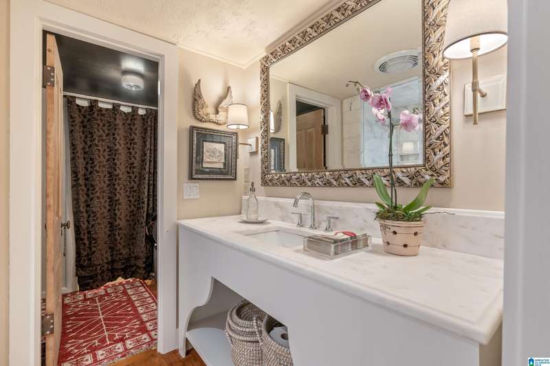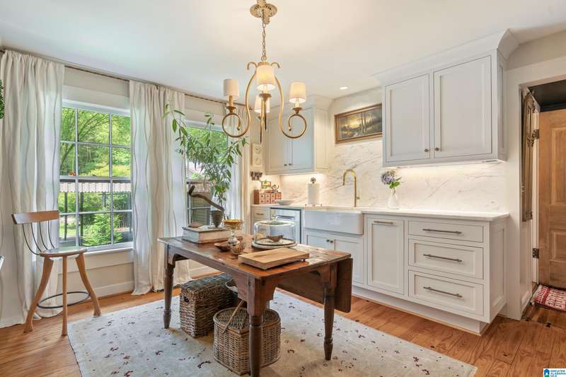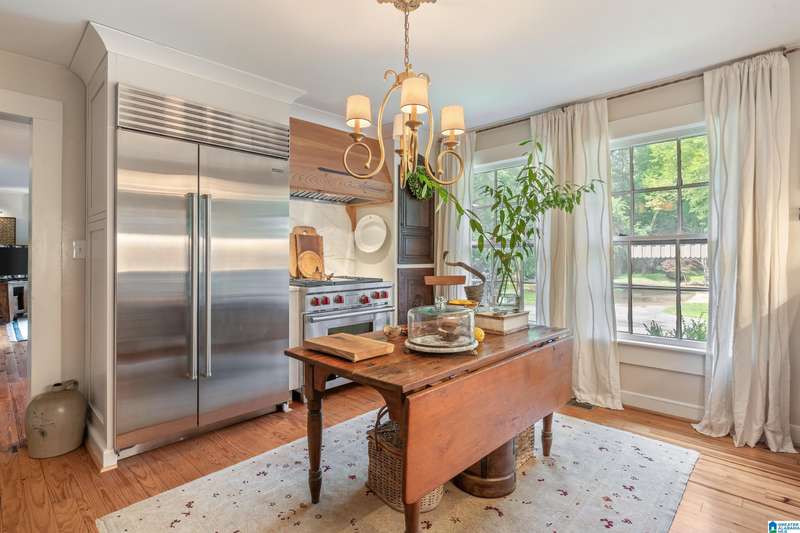 Welcome to this delightful, charming and updated cottage nestled on a picturesque 1.85 acres in Leeds, Alabama! Enjoy outdoor gatherings on the newly installed 16 x 16 deck that is so very inviting. The circular drive enhances curb appeal and convenience. This home offers a perfect blend of cozy living and modern comforts. Step inside the sunroom featuring low E double insulated glass with new roller shades to block out the bright sun. The gourmet kitchen boasts a Wolf gas range and Sub-Zero refrigerator, complemented by stunning Calacutta marble counters. The living/dining space is open for relaxing entertainment and the house has the original beautiful hardwood floors. There are 2 bedrooms and one full bath, but the owners have also installed a toilet in the laundry room. The third bedroom has been transformed into a custom closet oasis by Space Cadets. The updated shower in the bathroom adds a touch of luxury. Don't miss this gem in a tranquil setting that you will LOVE!