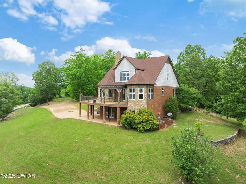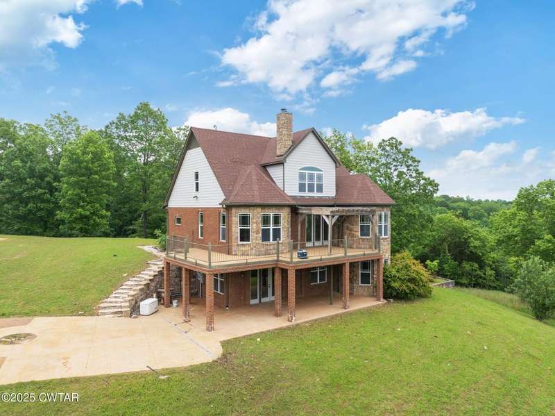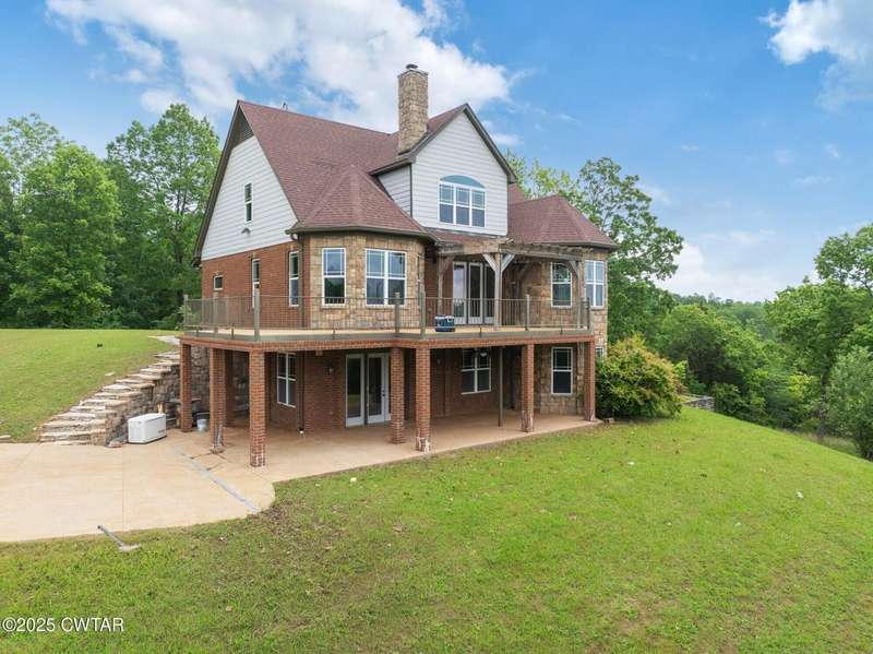 INVESTOR OPPORTUNITY & MOTIVATED SELLER! Majestic Views of the TN River on 2.87 private acres, this property features over 4000 square feet ready for new owners to finish to their taste. 3 levels of living space-all featuring the water views. Electric, septic & water are connected. HVAC units are installed and operational. Exterior is finished & interior rooms are framed. Plenty of places to enjoy the outdoors in the awesome deck, patios, front porch & gazebo. Located in the desirable gated River's Edge resort area, this beautiful build is located on 2 resort lots, & features a custom concrete drive & parking area. The community boat ramp & courtesy dock add to the convenience of TN River living! Riverstone Marina is nearby as is the Clifton Marina.