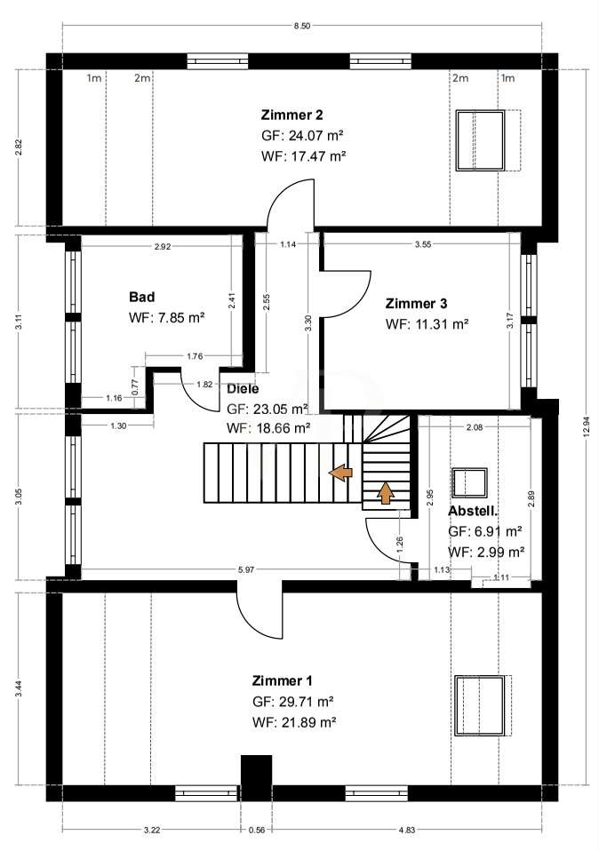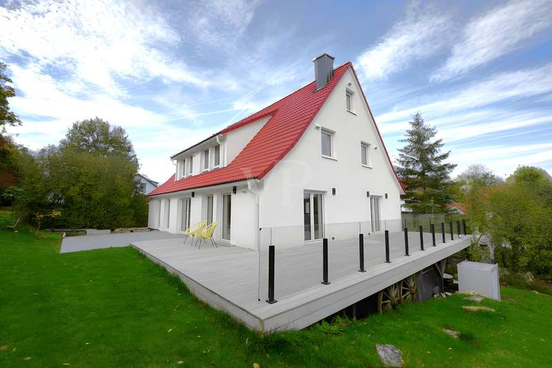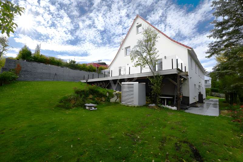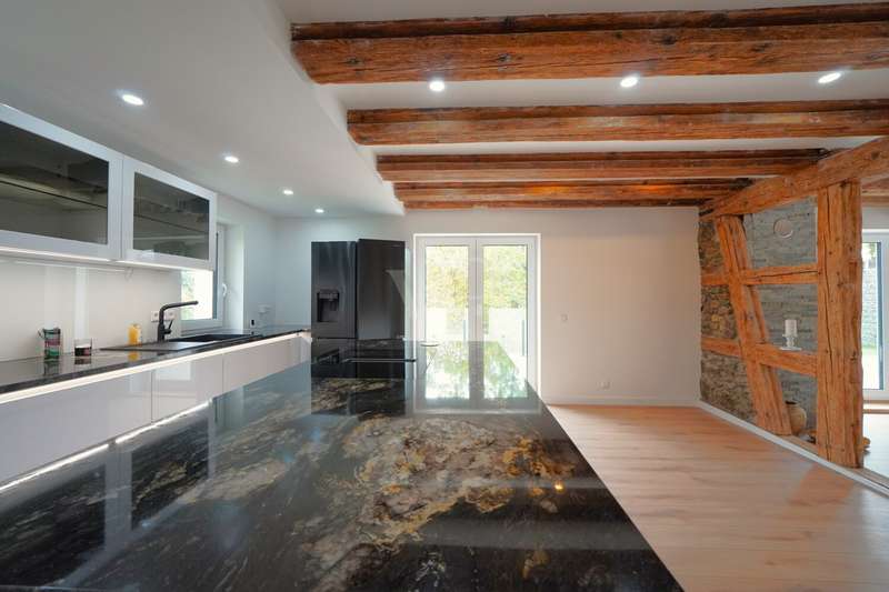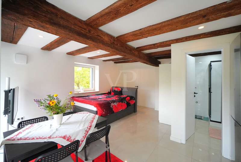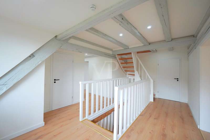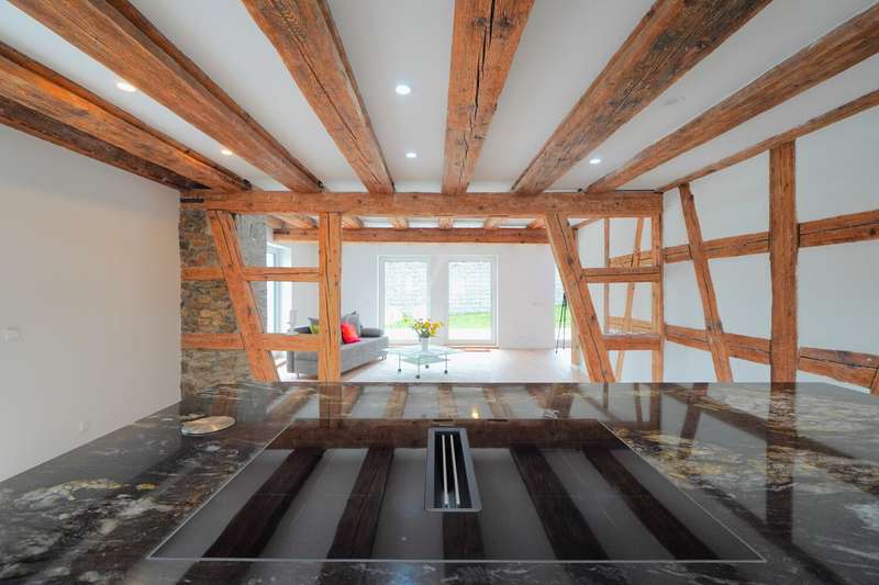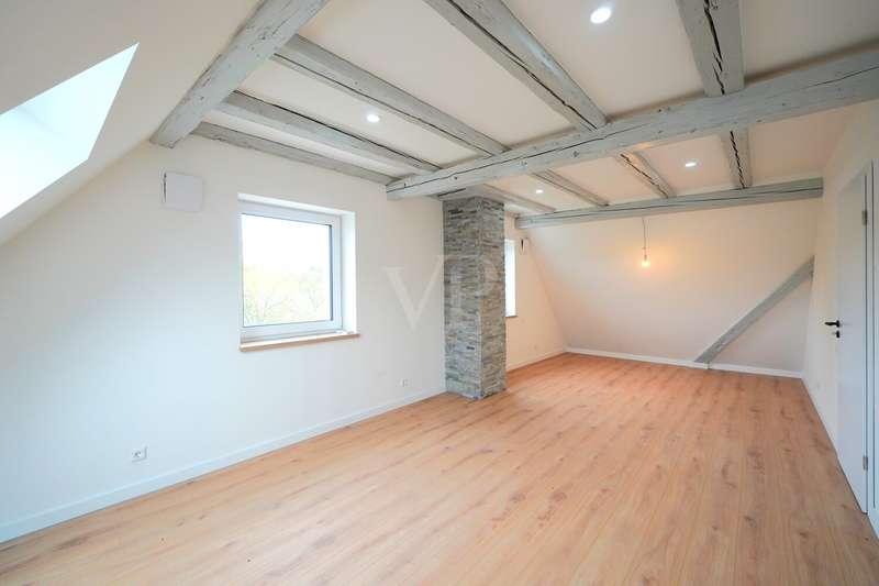 This extraordinary property, originally built in 1803, impressively combines historical charm and state-of-the-art living technology. Following a complete refurbishment in 2023/2024, the building is now a state-of-the-art low-energy house built in 2025 - a truly rare gem that perfectly combines history, style and sustainability. With a total living area of around 276 m² and a usable area of approx. 164 m², the property offers a wide range of possible uses - ideal for families, multi-generational living or living and working under one roof. The spacious plot of around 1,700 m² impresses with its well-tended garden, mature plants and sunny south-facing terrace, which invites you to linger and relax. The architectural uniqueness can be felt as soon as you enter the house: exposed beams, natural stone from the original year of construction and stylish materials create an incomparable atmosphere. Despite its historical origins, the house is technically and energetically equivalent to a new build - a symbiosis that is extremely rare to find. The complete energy refurbishment includes state-of-the-art measures: an air/water heat pump, a ventilation system with heat recovery (93%), triple-glazed plastic windows, full thermal insulation and underfloor heating in all living areas. Thanks to these features, the property meets the highest standards in terms of energy efficiency and comfort. The installed smart home control system enables convenient operation of all building technology functions - modern, secure and future-oriented. On the first floor there are two lovingly designed granny apartments (approx. 19 m² and 25 m²), each with its own entrance, kitchen and full bathroom - ideal for guests, relatives or as high-yield rental units. This level is complemented by a spacious hobby room, guest room or study, the utility room and access to the renovated vaulted cellar - a real highlight with impressive character and top condition. The upper floor is the central living area and impresses with a spacious living, dining and kitchen area that captivates with its openness and abundance of light. The exclusive NOLTE kitchen with an exquisite Brazilian marble worktop leaves nothing to be desired. An adjoining pantry provides additional convenience. On this level there is also an office/guest room, a guest WC and a spacious bedroom with en-suite bathroom - equipped with Italian tiles, double washbasin, large shower and whirlpool bath. On the top floor, three further rooms offer flexible usage options - whether as children's rooms, guest rooms or offices. A further full bathroom with shower, bathtub and WC, as well as a storage room complete this floor. A staircase leads to the fully developed attic, which offers additional space for an office, studio or play area. The ensemble is rounded off by a 5,000-liter cistern for outdoor irrigation, a fibre optic connection and the option of dividing the property into two plots if required - an ideal option for future development or expansion projects. This property is a prime example of the successful combination of tradition and innovation. The historic character of the house has been preserved with the utmost sensitivity, while the modern technical equipment ensures maximum living comfort. A home that sets standards both aesthetically and functionally - unique, energy-efficient and timelessly beautiful.