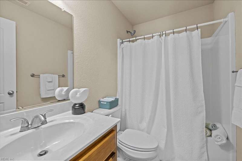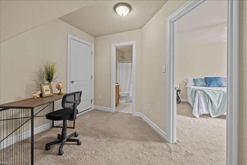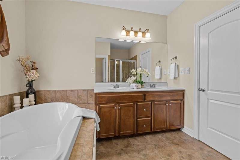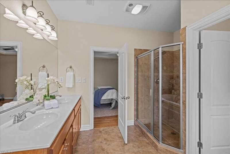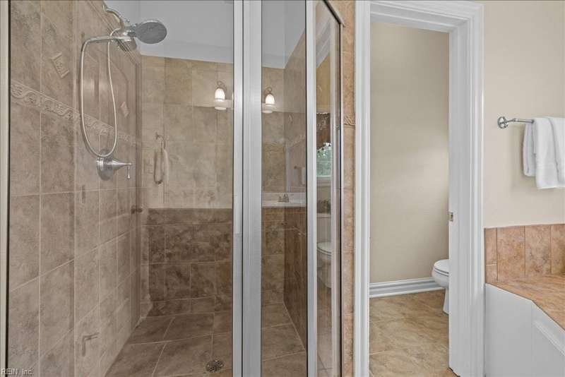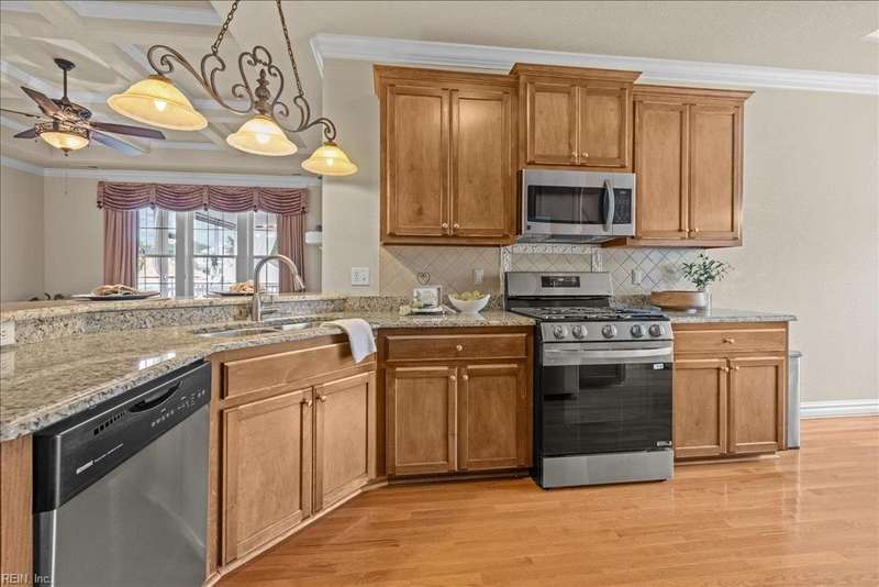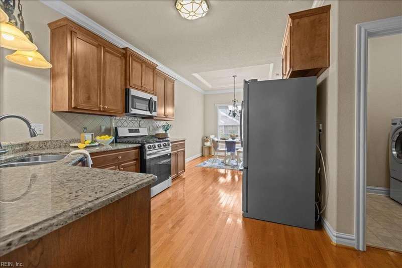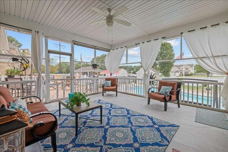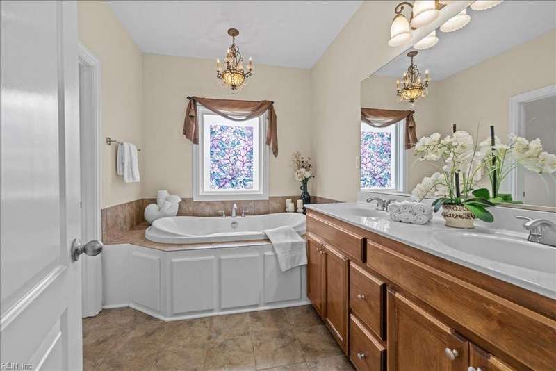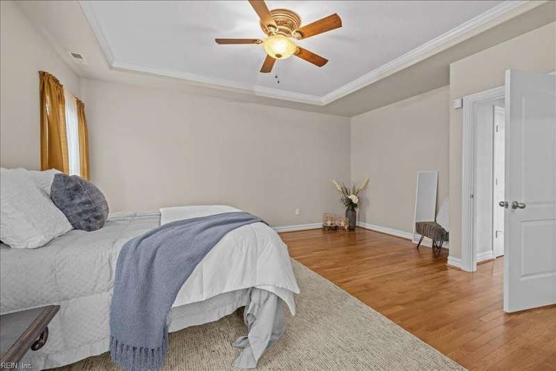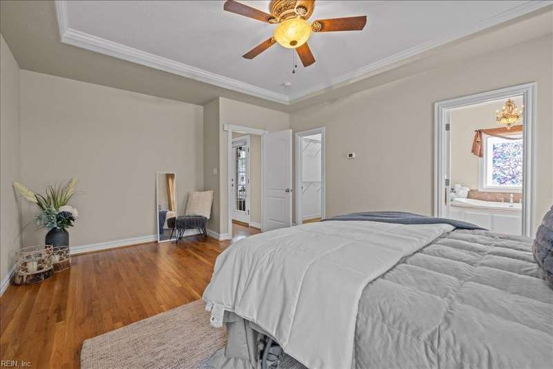 This absolutely stunning all brick, custom built home tucked away on a quiet street w/ NO HOA fees offers 4 spacious Bedrooms & 3 full Bath. You'll immediately notice the impressive architectural details throughout ie: tray ceilings & crown molding. Primary bdrm w/spa-like ensuite & add'l 2 bdrms & 1 full bath located on the 1st floor w/4th bdrm, full bath, huge 22x25 den & walk-in Attic in the ROG. Beautiful hardwood floors throughout foyer, living room, kitchen, formal dining area, primary suite. A modern kitchen w/breakfast bar-top seating & eat-in area, granite counters & ss appliances is open to the large family room w/gas fireplace. Natural light beams through family room & it overlooks large screened in porch that was made for entertaining! Enjoy time outside in your private fenced in backyard relaxing, or swimming in the saltwater pool w/ diving board. Located in the sought-after Great Bridge school district is your own piece of serenity in the heart of Chesapeake!