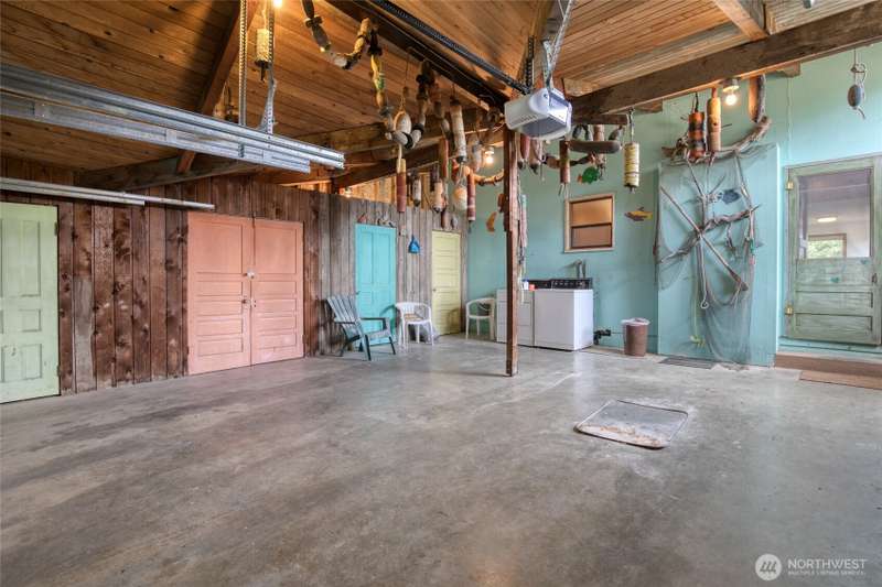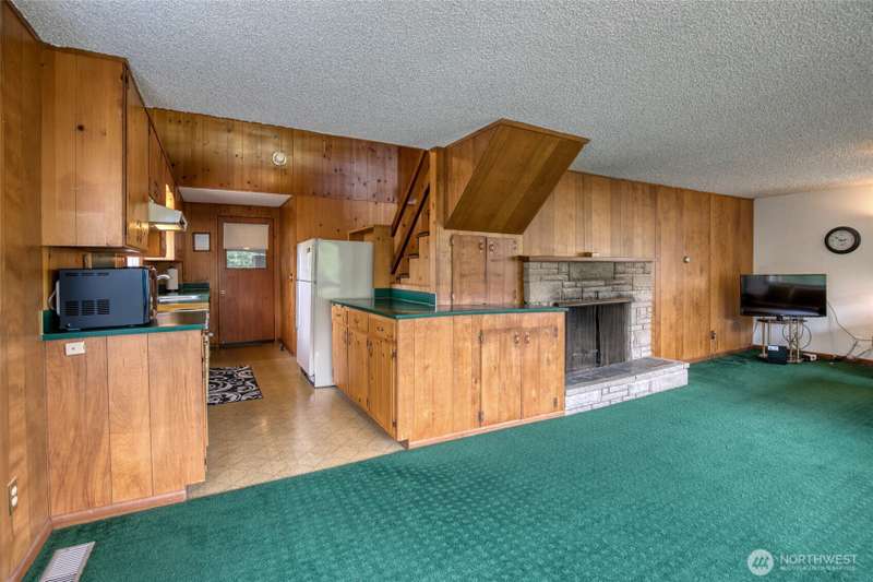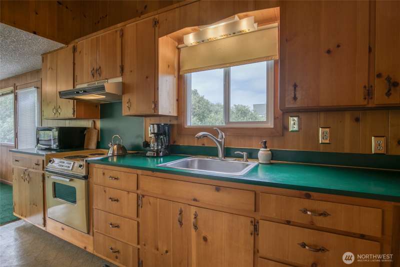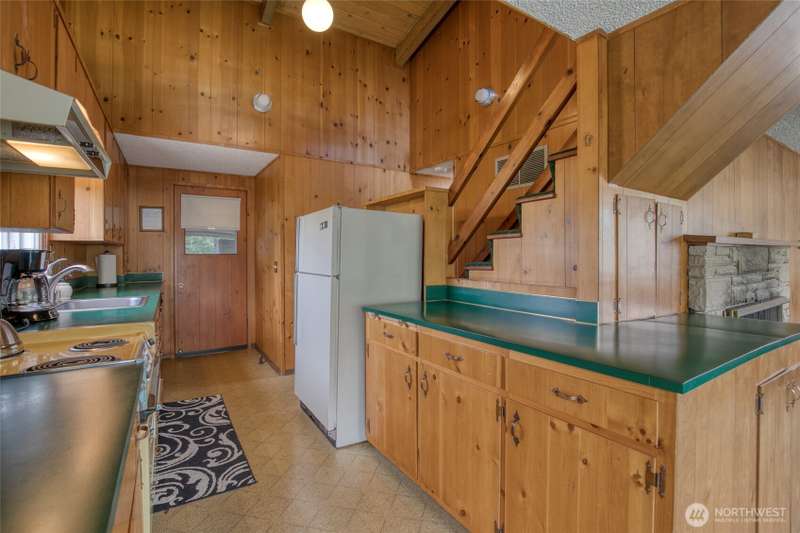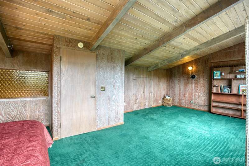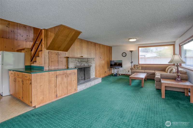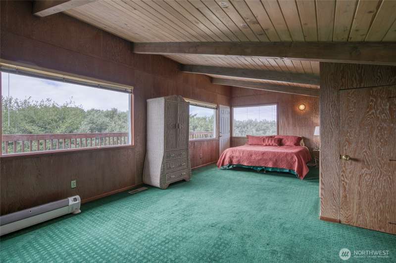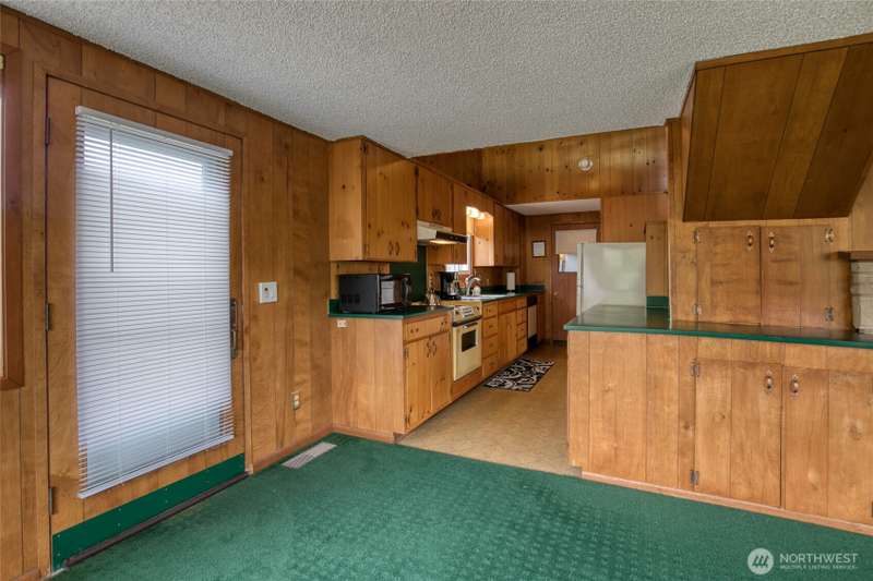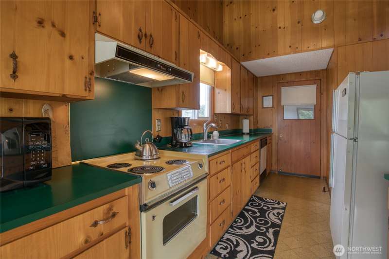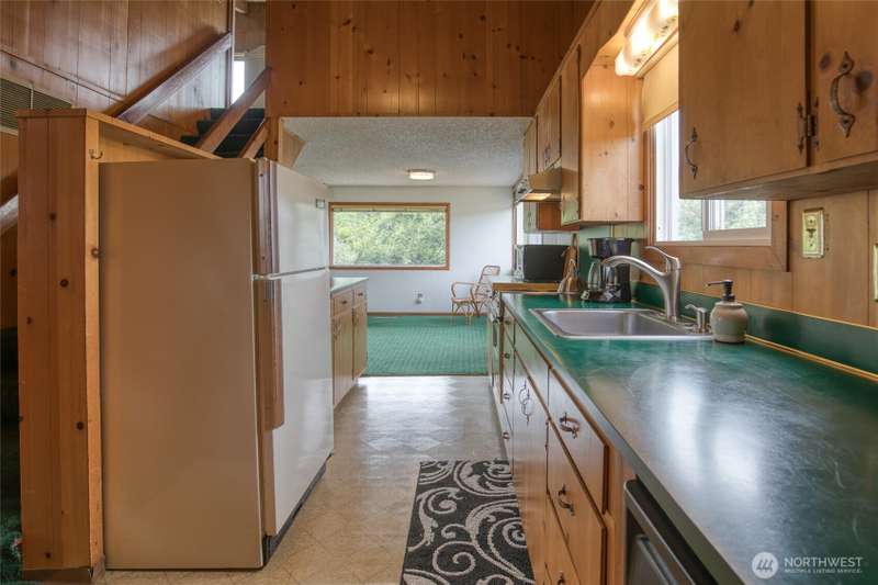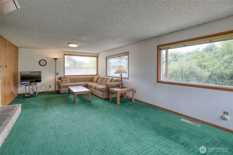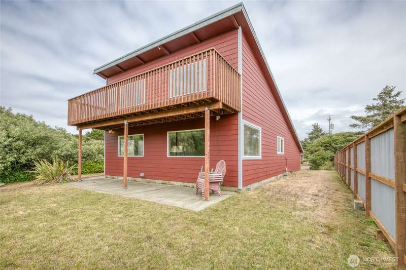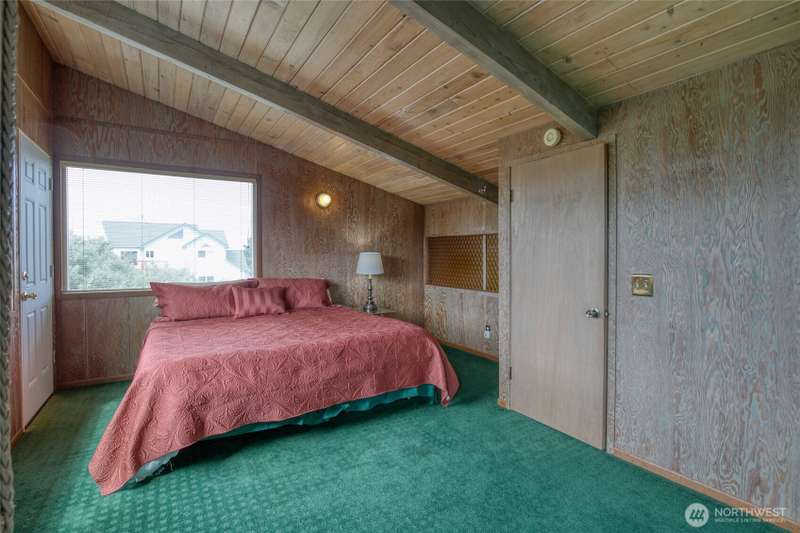 Hear the ocean waves while vacationing in an original 1960’s beach cabin. Just a short stroll to the ocean. Knotty pine cabinets & vintage stove you’ll love. Every room has oversize windows. The dining area is big enough to host the reunion dinners. Vaulted open-beam ceiling from the kitchen to upstairs. A big bonus-room / bedroom / den with more big windows & a private trex deck to take in the sea air & Ocean Shores’ famous sunsets. 1st floor bedroom has a roomy closet & a built-in vanity. Oversize 2 car garage, funky storage doors & the laundry. Wood burning fireplace & electric furnace heat. Enjoy the wildlife, warm days & winter storms. Break out the board games by the hearth on those chilly coastal nights.