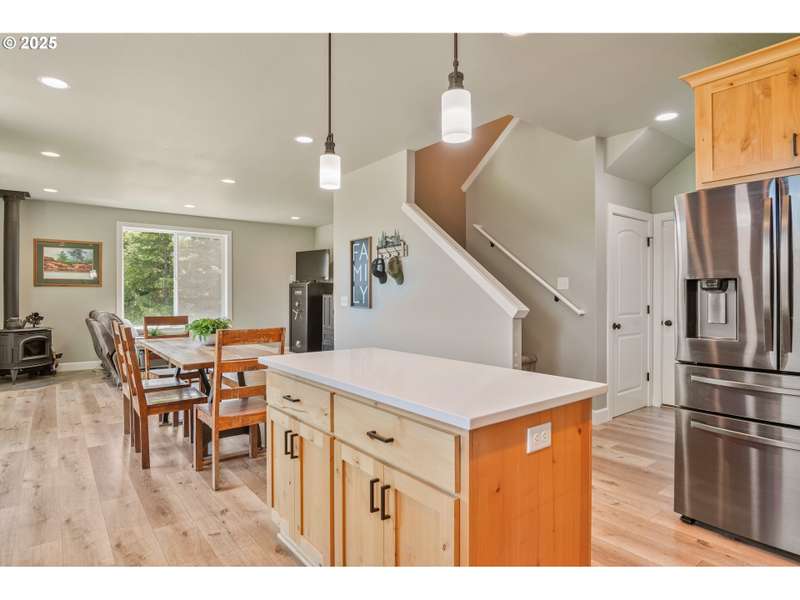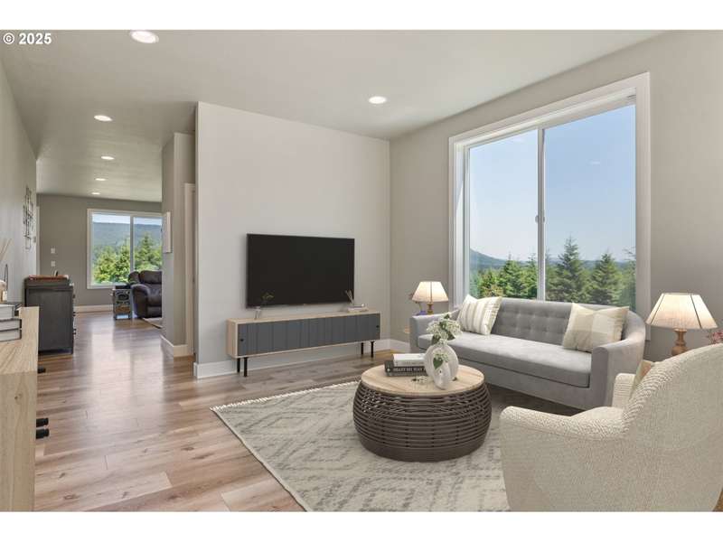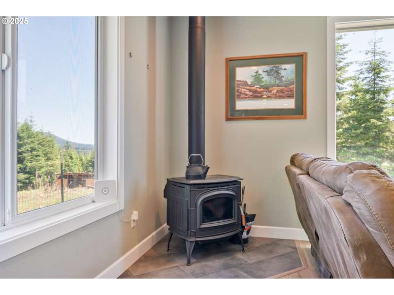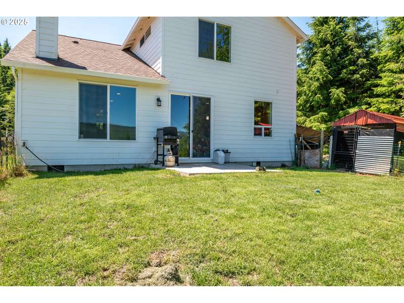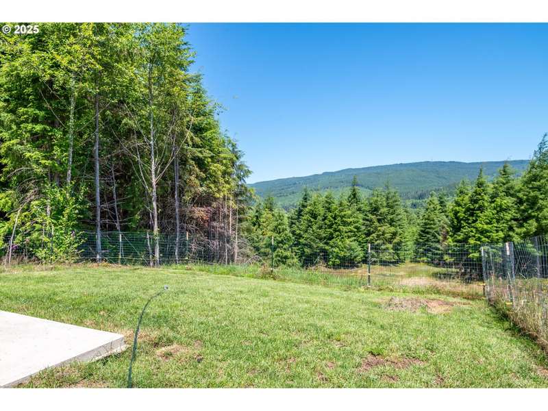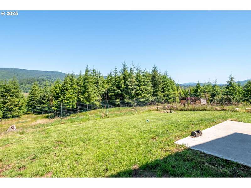 Modern living meets natural beauty on 13+ forested acres. This 2023-built home offers the perfect blend of privacy, space and style, nestled among over 13 acres of fir trees. Step inside to soaring windows that flood the space with natural light and frame sweeping views. You are welcomed by the front living room which offers a quiet retreat, with luxury vinyl flooring throughout the main floor. The grand kitchen is built for both beauty and function, featuring quartz countertops, stainless steel appliances, abundant storage and generous counter space. It flows seamlessly into the dining area and spacious family room, where a wood stove adds warmth and charm- ideal for gatherings or quiet evenings in. The primary suite is a true retreat with a large walk-in closet and a spa-like bathroom complete with an oversized tiled shower. Two additional bedrooms and 1.5 baths round out the thoughtfully designed floor plan. Outside there is room to stretch out. RV parking, space for a shop and a small pasture with chicken coop ready for your hobby farm dreams. With potential to subdivide (buyer to verify), this property offers both lifestyle and investment opportunity. Private, peaceful and surrounded by evergreens- this is Northwest living at its best!