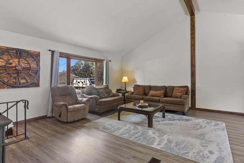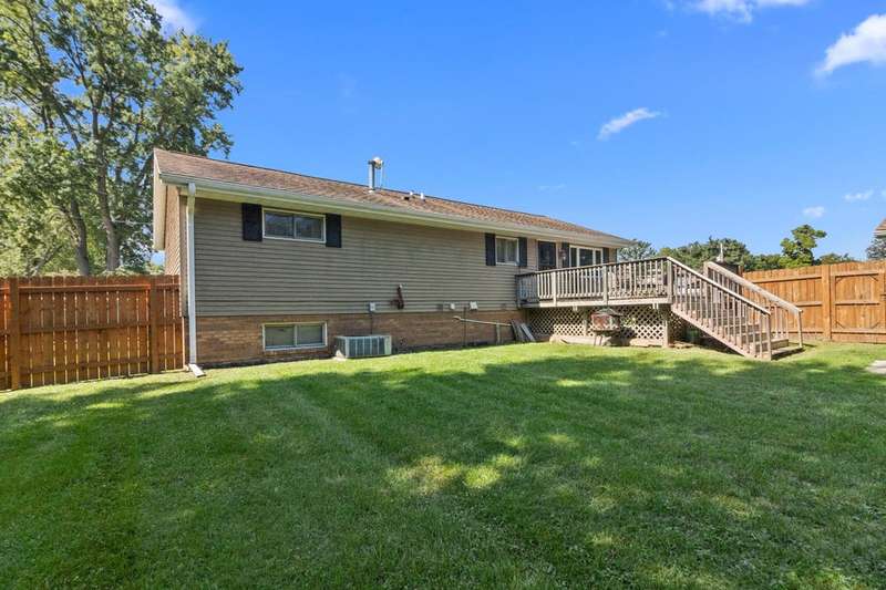 Charming three bedroom, two bath home featuring new flooring throughout and a bright finished lower level with full sized windows, perfect for additional living space. Relax on the deck overlooking a large, private, fenced backyard on over half an acre, ideal for entertaining or enjoying nature. An oversized 22x30 detached garage provides ample room for vehicles, storage, or hobbies. This move-in ready home offers comfort, space, and privacy in a desirable setting. Close to Lake Geneva, and highway 12 for an easy commute. Call today for a private showing.