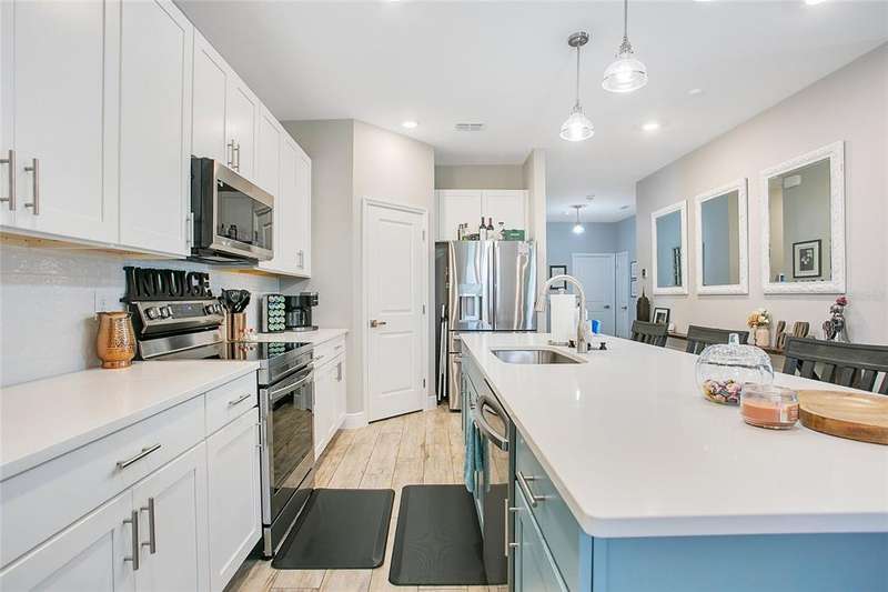 Built in 2023 and situated in the Hampton Oaks neighborhood, the home offers a peaceful oasis that backs up to a conservation area with a lake, providing a relaxing water view. Start your mornings with coffee or unwind in the evening with a glass of wine or dinner from the comfort of your screened lanai, which is plumbed for an outdoor kitchen. The split floor plan provides privacy, while the open-concept living and dining area is perfect for everyday living and entertaining. At the heart of the home, the kitchen boasts a large walk-in pantry, a spacious island, and a well-appointed chef's kitchen, making it ideal for hosting family gatherings. Many builder and homeowner upgrades, including epoxy floors in the garage and on the lanai, a Tesla charger, whole-house surge protection, and more, make this home a standout. Located in Volusia County, just 25 miles from the ocean and conveniently situated between Orlando and Daytona Beach, the area is ideal for those who appreciate nature trails, community events, and a more relaxed lifestyle away from the city's hustle and bustle.