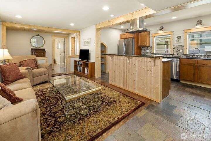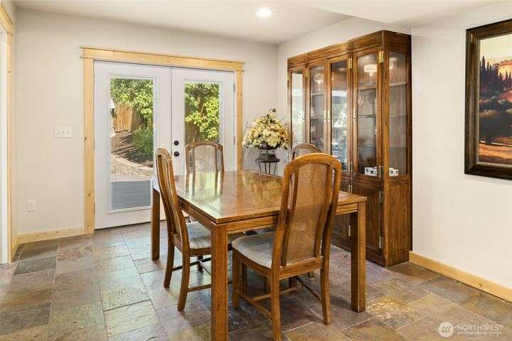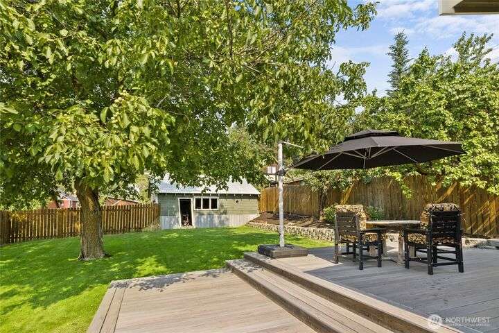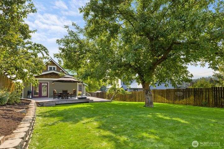 Welcome to this inviting 3-bedroom, 1.75-bath home offering a perfect blend of comfort and modern updates. The open concept living and dining area flows into a stylish kitchen with granite counters and stainless-steel appliances. A spacious utility/mud room provides ample storage, while radiant floor heating and a dual-head mini-split heat pump ensure year-round comfort. French doors open to a large fully fenced yard featuring a spacious deck and immaculate lawn with in-ground sprinklers, plus a garden area with raised beds ideal for outdoor living. A detached two-car garage with alley access needs work but adds convenience. In close proximity to historic downtown Roslyn and Teanaway Community Forest Trailhead.