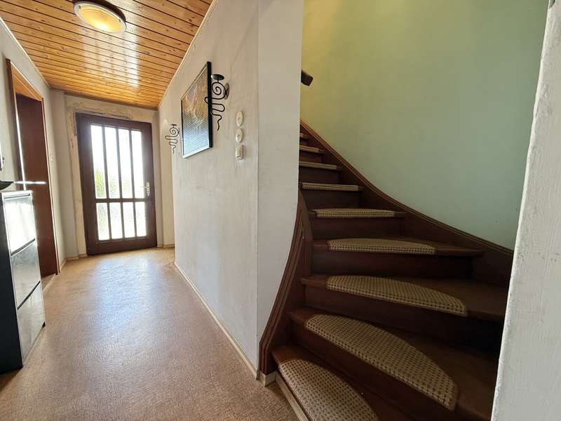 This spacious detached house presents itself as an interesting offer for buyers looking for a property with potential for individual design and personal initiative. The property was originally built in 1958 as a solid construction and extended with an annex in 1991. It is in need of renovation and offers a solid basis for your own modernization projects. The house extends over two residential levels, which are located on the first floor and second floor. Each unit has its own entrance and a functional room layout, making the house ideal for multi-generational living as well as for alternative use. A total of six bedrooms are available, which can be used individually as bedrooms, offices or guest rooms. The living space offers enough room for a comfortable and flexible everyday life. Notable features include the as-new gas heating system, which guarantees efficient and reliable heating. The property has also been partially repainted, meaning that initial maintenance work has already been carried out. An installed water softening system ensures a pleasant and low-calcification water experience throughout the house. The roof peak in the old building has already been professionally insulated. With its spacious double garage including workshop, the property offers ideal conditions for people who need a lot of space, whether for vehicles, hobbies, crafts or storage. Two separate outbuildings open up additional possibilities for use - for example as a storage room, for garden tools or even as a small workshop. A cozy outdoor seating area with adjoining garden shed rounds off the offer. This area invites you to spend relaxing hours outdoors and offers plenty of space for individual garden design. The residential area is characterized by a quiet neighbourhood and a mature environment with good infrastructure. Shopping facilities, schools and doctors are all within easy reach. Transport links are equally available and ensure smooth connections to the regional and national road network. Due to its layout and current condition, the house is particularly suitable for buyers who are skilled in their trade and value freedom of design and their own ideas. Modern living requirements can be realized here and the potential of the property fully exploited. Experience the possibilities that this detached house offers you. Arrange a viewing appointment today to get a personal impression of the property and its scope for development. If you have any questions or require further information, please do not hesitate to contact us.