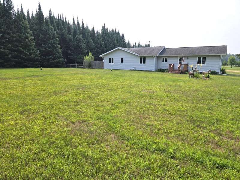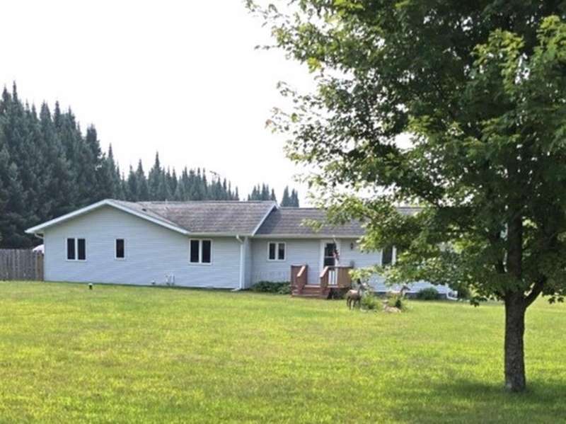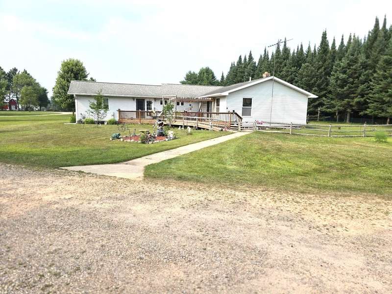 Ranch home offering 3 bedrooms and 2 full baths set on 6.24 Acres and 30 X 54 insulated Garage with two-16 X 54 lean-2's for parking, shop, storage you name it. Outdoor wood burning furnace to heat the building. Kitchen area with ceiling fan and dining area both with Hardwood Flooring. Snack bar off dining area with large windows overlooking the property. Family room offers patio door leading to a large open deck. Full basement with Bilco door, water softener and tankless water heater. ATV/UTV and Snowmobile Trails go past the property with Hines Creek at the end of the road. National Forest Access within walking distance.