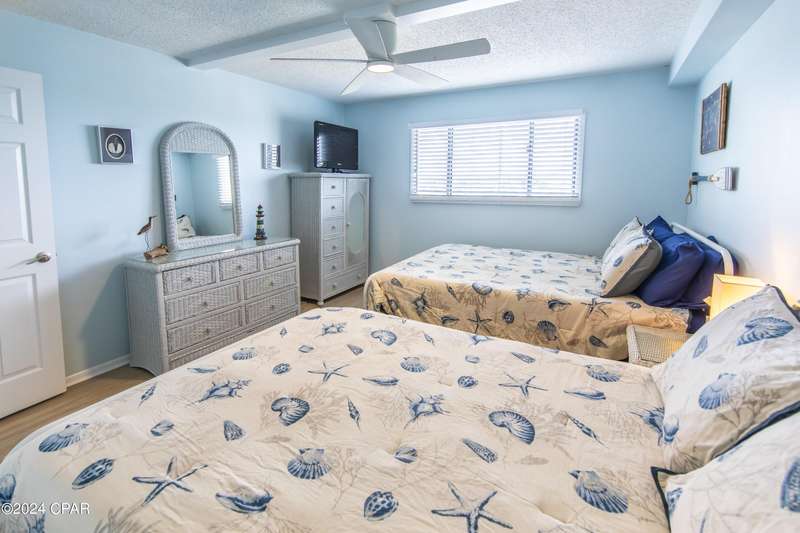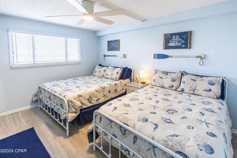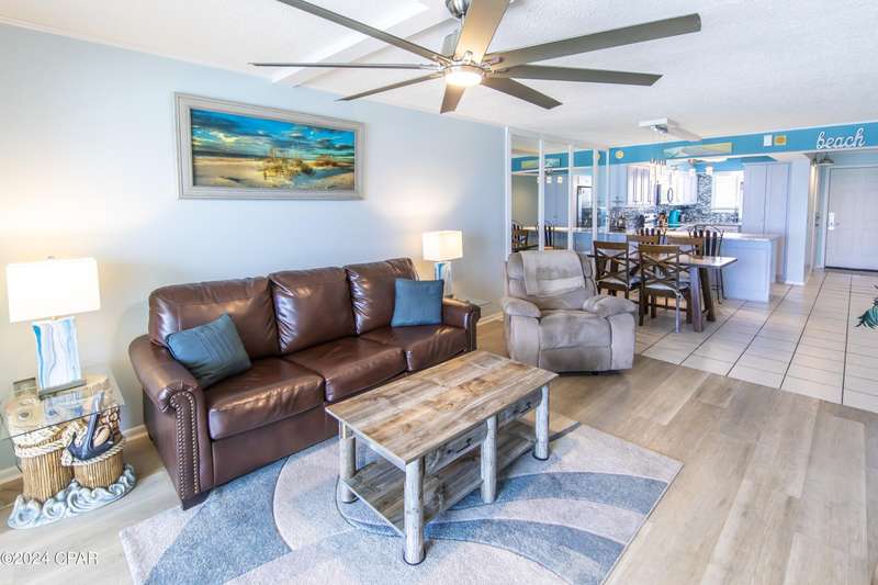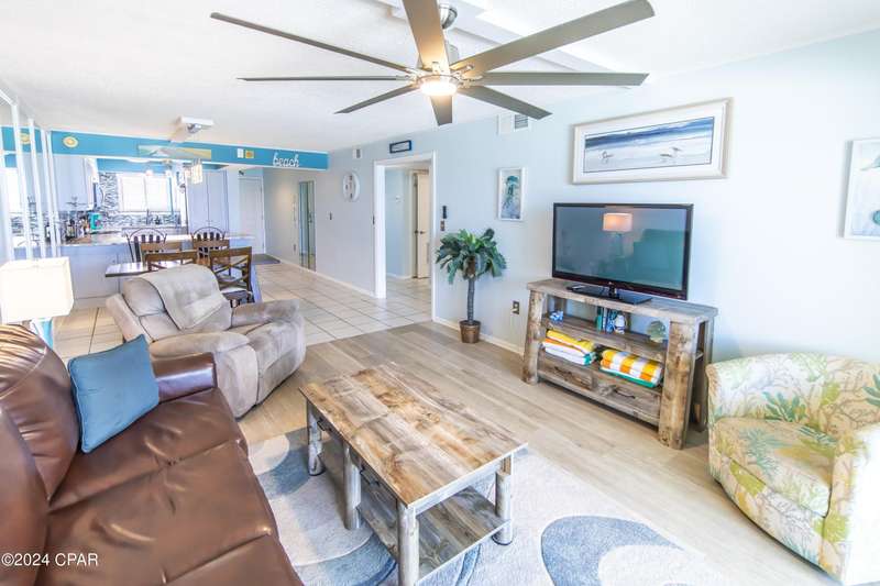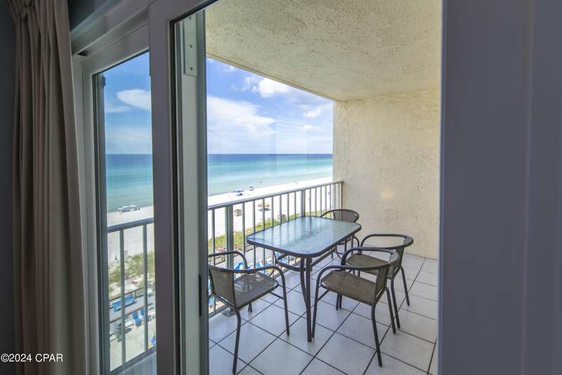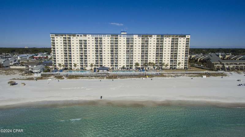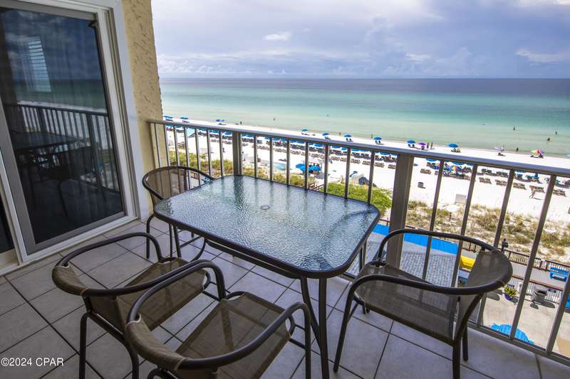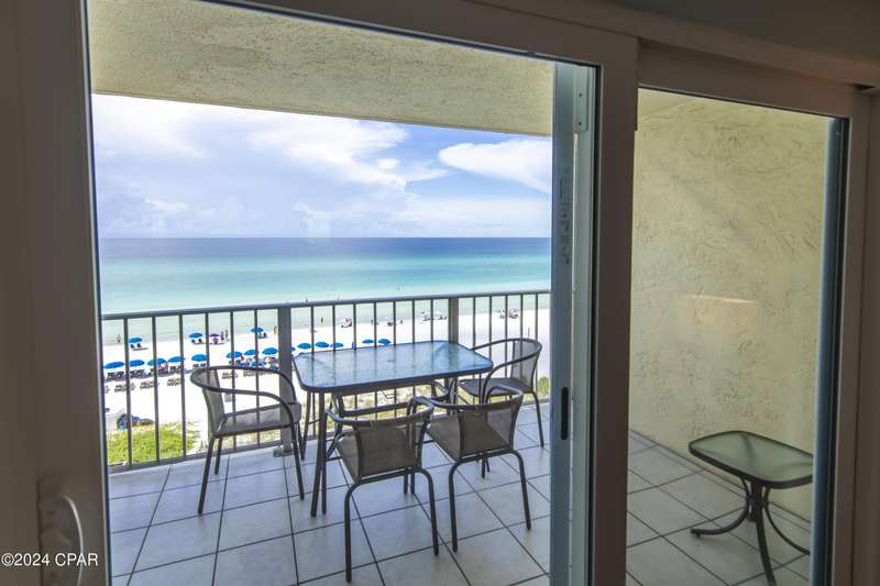 Welcome to Regency Towers Condo unit 611, a captivating gem in Panama City Beach. This immaculate 2-bedroom, 2-bath unit is a turnkey vacation rental, perfect for investors and beach lovers alike. Professionally renovated this condo exudes coastal charm including new sliding glass doors in the living room and master bedroom, granite countertops and LVP flooring. The coastal decor and beachy furnishings further enhance the beachside ambiance, providing a true retreat for vacationers. Situated on the coveted 6th floor, this unit offers stunning beachfront views from the living room and master bedroom. The gated security of Regency Towers ensures privacy and tranquility Amenities include two large pools, a tiki bar, hot tub, tennis courts, shuffleboard, pool room, and exercise room.