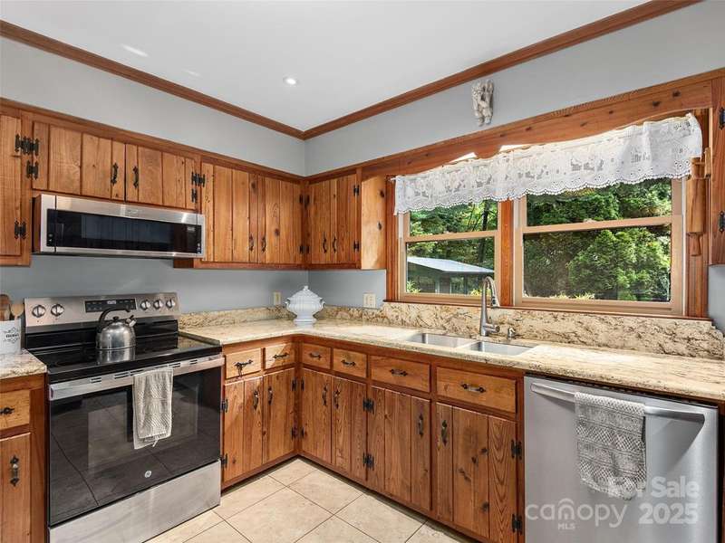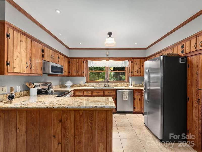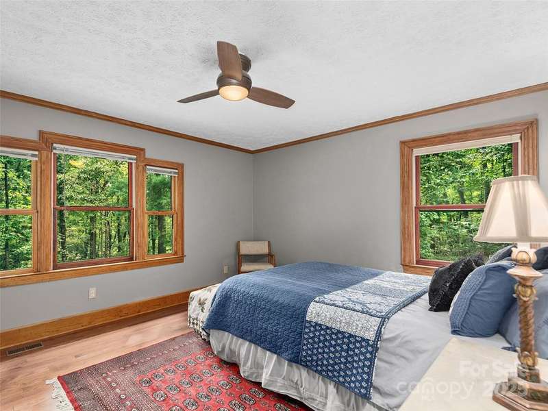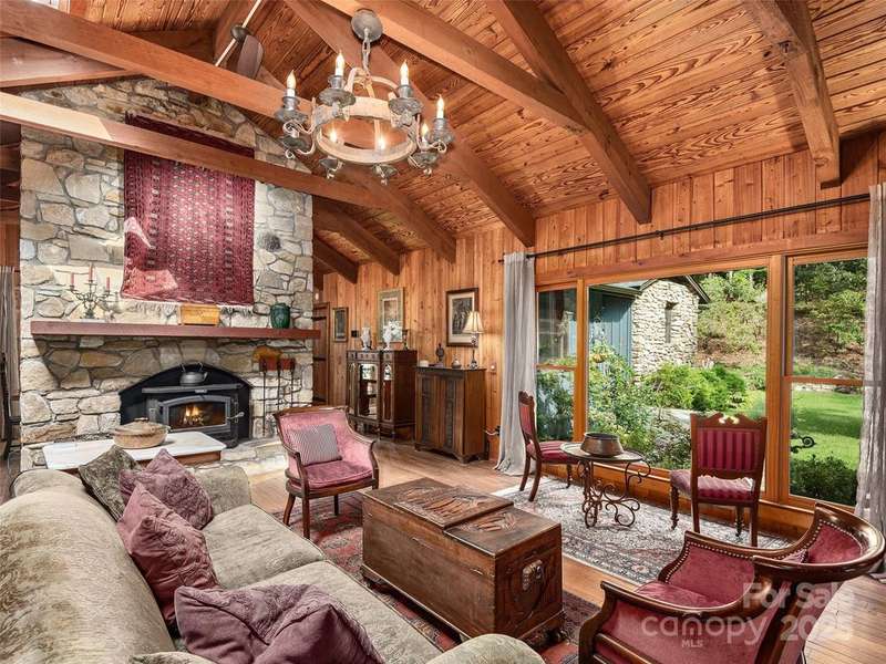 Set on a private almost 3 acre lot in Hidden Lakes, this beautifully updated home combines mountain charm with modern comfort. The spacious living area features a striking stone fireplace built with Pinnacle Mountain stone, while the renovated primary suite includes a redesigned closet and spa-inspired bath. Recent upgrades add value and peace of mind: new Lennox heat pump with propane gas backup, Generac whole-house generator, Navientankless water heater, oak hardwood floors, new kitchen appliances, and extensive landscaping. Large windows bring in natural light and frame the surrounding beauty. Conveniently located near downtown Hendersonville, shopping, dining, and outdoor recreation.