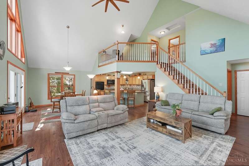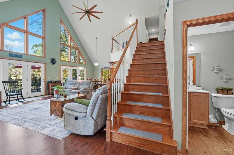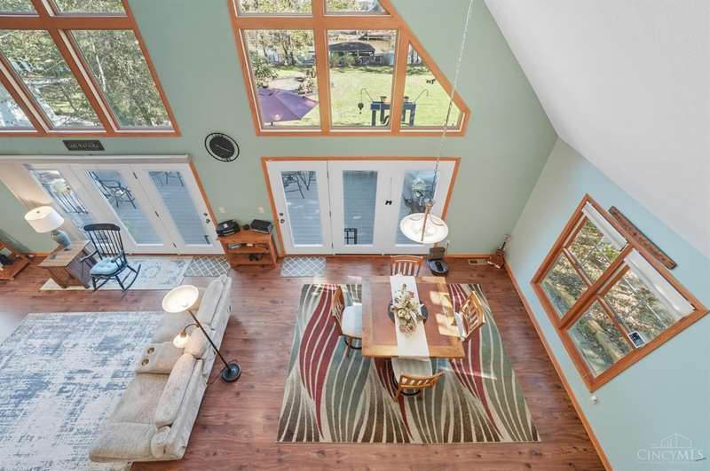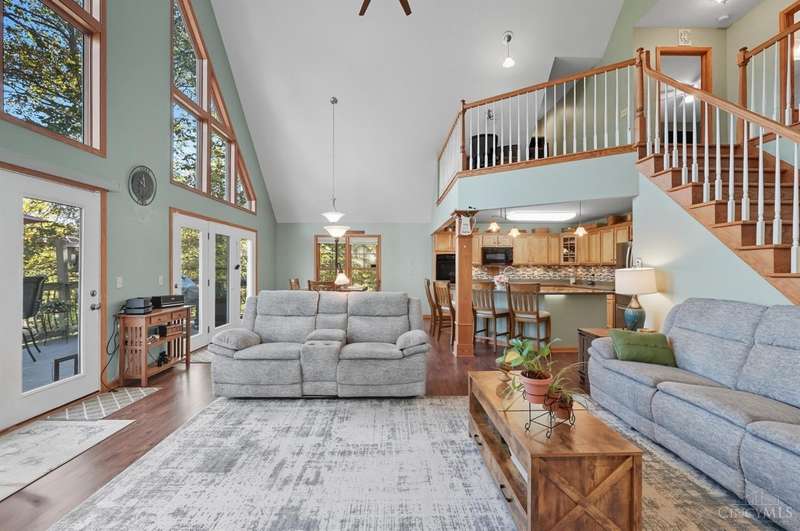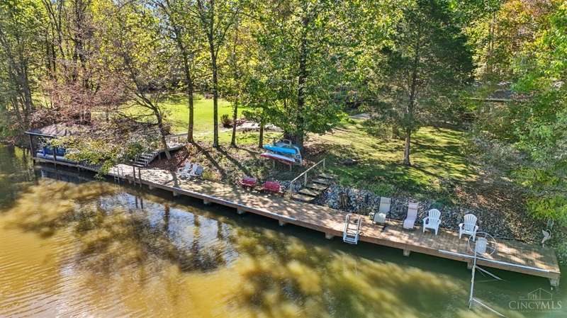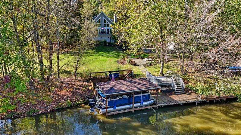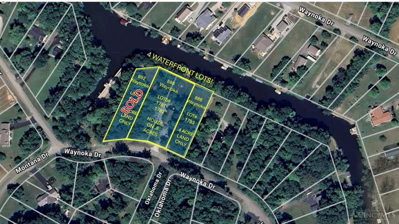 Amazing setting on this Beautiful 2 LOT (possible 4 LOTS) Lakefront home at Lake Waynoka! Huge expansive dock with boat cover & lift! Wrap around covered front porch leads you into this 2 story vaulted Great room with spectacular views! Plenty of storage with 2 attached garage spaces and 2 detached garage/barn. Purchase additional lots for additional park-like settings, garden, and so much more! Finished LL can serve as 4th BR with full bath! Enjoy everything Lake Waynoka has to offer!