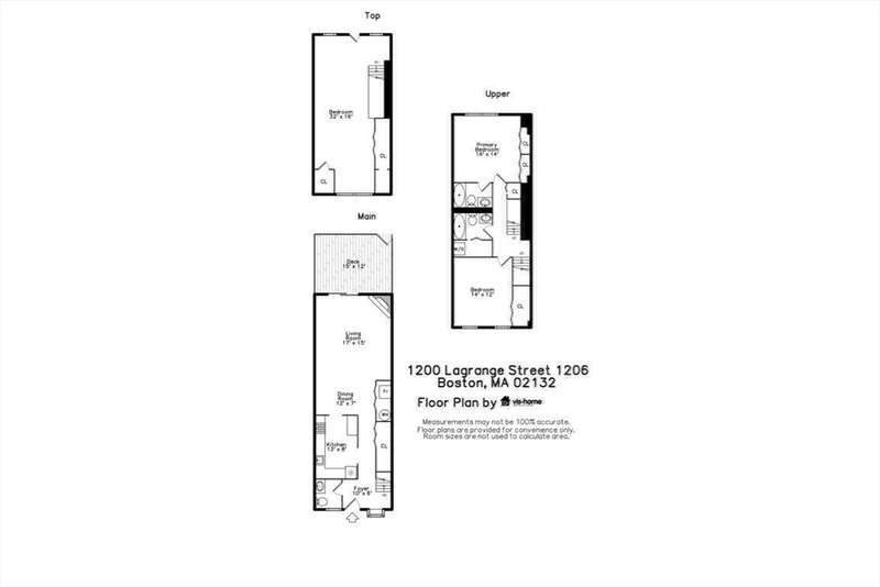 Easy living in this spacious, three level townhouse located in West Roxbury at the Chestnut Hill line. Large, updated kitchen with ample cabinetry and LG appliances, opens to inviting dining area. The living room features a charming wood burning fireplace and sliders to an enclosed private deck, perfect for outdoor entertaining. The second level features 2 good size bedrooms. The primary bedroom offers ensuite bath. Handy 2nd level laundry! Versatile 3rd floor with skylight and exposed wood beams serves as the 3rd bedroom with plenty of additional space for home office/family room. Gleaming hardwood floors and large closets throughout! The exterior envelope has been refurbished, including roof, siding, windows & decks making it a great time to buy. So snap it up! Minutes to West Roxbury's Centre St, commuter rail, shopping, & newly opened Trader Joe's. Close to Chestnut Hill with plenty of shopping, restaurants and the green line. Easy access to Rte. 9, 128 and 95.