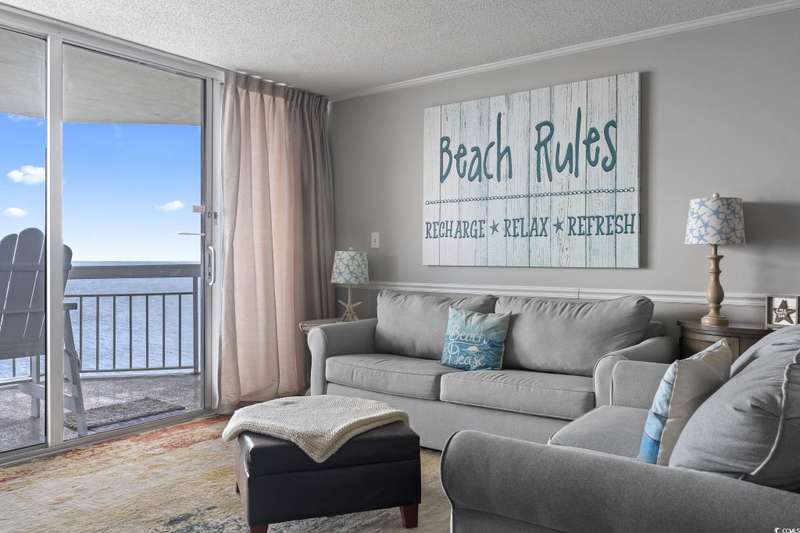 **PRICE IMPROVEMENT**Get in during the peak rental season! This unit books fast! STUNNING oceanfront 1BR/2BA condo in the sought-after Waters Edge Resort in Garden City Beach! Enjoy breathtaking, unobstructed views of the Atlantic Ocean right from your private balcony. This beautifully updated unit features two full bathrooms. The primary bathroom shower is upgraded with ceramic tile for a fresh, coastal feel. The stainless steel appliances are perfect for cooking after a day on the beach. The in-unit laundry is a plus to not have to use the community laundromat! Ideal as a vacation home, investment property, or weekend getaway—Waters Edge offers fantastic amenities including a hot tub, gym, outdoor and indoor pool. The HOA includes EVERYTHING except your electric AND it includes your exterior insurance!! There is a cafe and ice cream shop right on site! Located between both the Surfside Beach and the Garden City Pier, close to shopping, and dining. Don't miss your chance to own a piece of paradise on the beach!