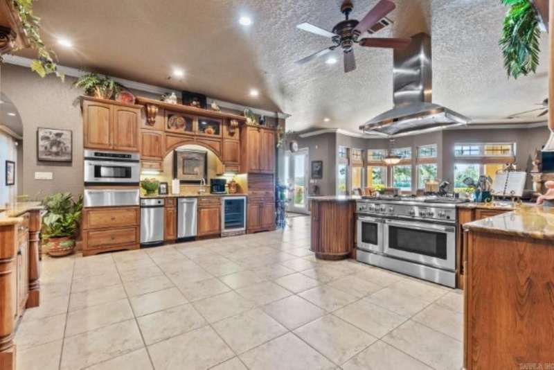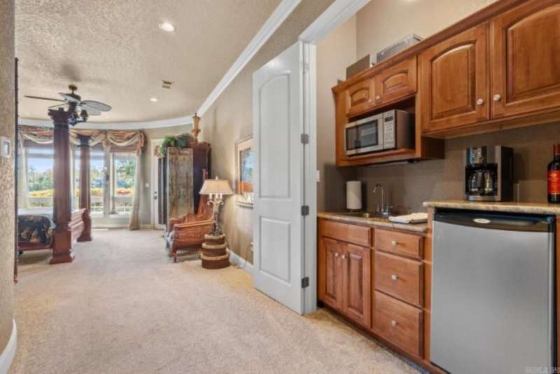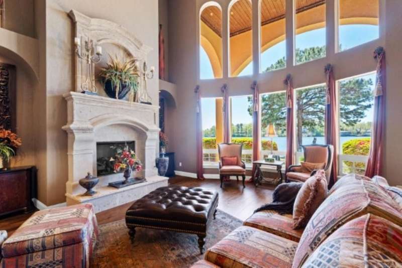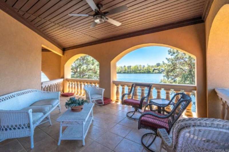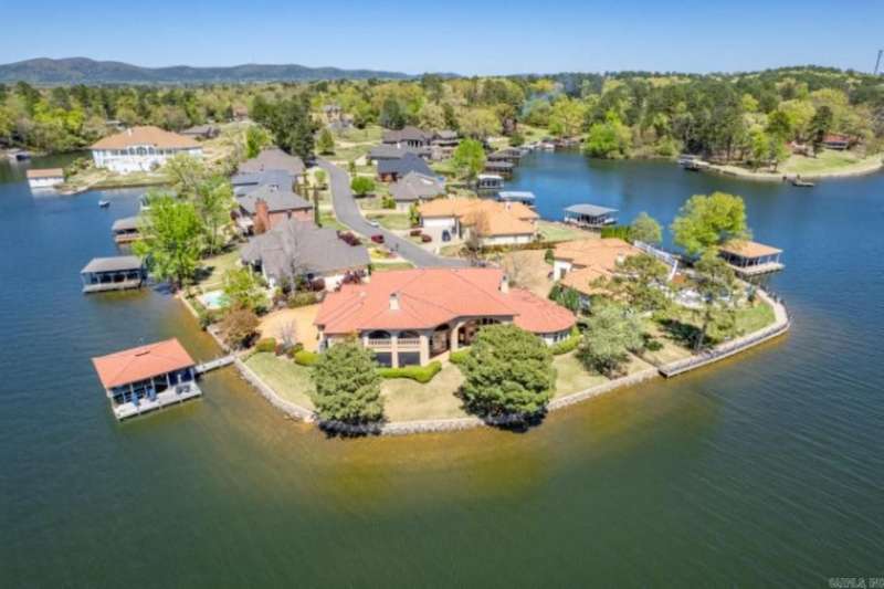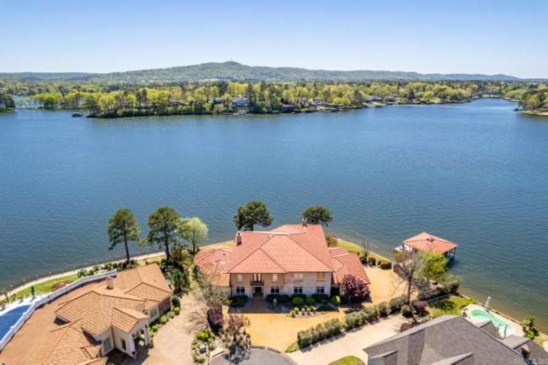 BEST VIEW ON THE LAKE! 5/5/3 lake home. Located on a large level point lot with 260' of lake frontage. Open living concept w/exceptional lake views of the main channel. Beautiful craftsmanship throughout, custom cabinets, granite countertops, crown molding. Hardwood floors in the living room & carpet in all the bedrooms. Sitting room and separate dining room. Upscale kitchen is completely custom and provides every amenity a chef could need. Guests can relax in the hearth room while meals are made. There is a large and private guest bedroom off the exercise/bonus room. Also located on the main floor is an office area/utility room. Each level has a laundry room, for convenience. Master bedroom is luxurious! It features TWO separate master bathrooms, each with its own huge WIC. This bedroom also has a coffee/wet bar and private patio access. This home has its own elevator! On the second floor you will find two guest bedrooms that share a Jack-n-Jill bathroom. A third bedroom with a private bathroom and WIC. Cont'd..
