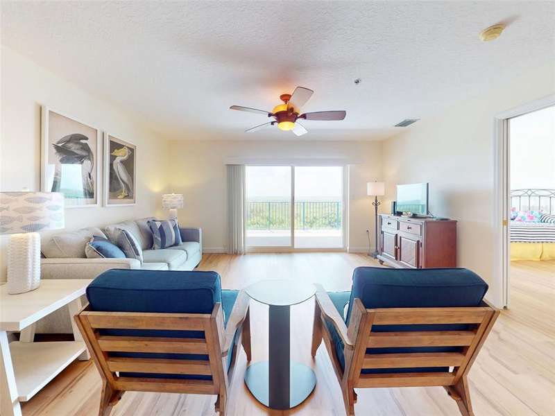 THIS BEAUTIFUL PARTIALLY FURNISHED TWO BEDROOM CONDO IN OCEAN WALK. THE SECOND BEDROOM CAN BE A BEDROOM OR AN OFFICE AND HAS NEW LUXURY VINYL PLANKING FLOORING AND BASEBOARDS THROUGH OUT THE UNIT. COMPLETELY UPDATED WITH GRAINTE COUNTERTOPS, NEW 2025 STAINLESS STEEL APPLIANCES, SLIDERS HAVE NEW 2025 VERTICAL BLINDSAND A BRAND-NEW 2022 AC. THIS BUILDING HAS COMPLETED AN EXTENSIVE EXTERIOR RENOVATION A LITTLE OVER THREE YEARS AGO AND IS MOVE IN READY WITH BEAUTIFUL FURNISHINGS, QUEEN SOFA SLEEPER. YOU WILL NOT WANT TO MISS THIS OPPORTUNITY TO LIVE JUST SHORT DISTANCE TO THE BEACH, CLUBHOUSE AND POOL. VIEW WILDLIFE AND BEAUTIFUL FLORIDA SUNSETS OVER THE SALT MARSH NATURE PRESERVE AND NATURE PATHS FROM YOUR COVERED LANAI. MAIN BEDROOM HAS LARGE CLOSET, DOUBLE SINKS IN THE OVERSIZED BATHROOM, AND IN MAIN BEDROOM SEPARATE SLIDERS TO THE LANAI. THE DINING ROOM, LIVING ROOM COMBINATION GIVES THE UNIT THAT LARGE AND HAS SLIDERS TO THE LANAI WHICH GIVES A SPACIOUS AND BRIGHT FEELING OF LIVING IN THE PERFECT CONDO. THE BREAKFAST BAR IN THE KITCHEN IS CONVENIENT FOR SERVING AND FOOD PREPARATION. LOTS AND LOTS OF CLOSETS AND STORAGE. THE CONVENIENCE OF THE UNDER-BUILDING GARAGE AND BEING CLOSE TO THE ELEVATOR MAKES SHOPPING AND TRANSPORTING GROCERIES AND OTHER GOODS EASY WHILE PROTECTING YOUR AUTOMOBILE FROM THE ELEMENTS. AN ADDITONAL LARGE STORAGE CLOSET IS LOCATED CLOSE TO THE UNIT