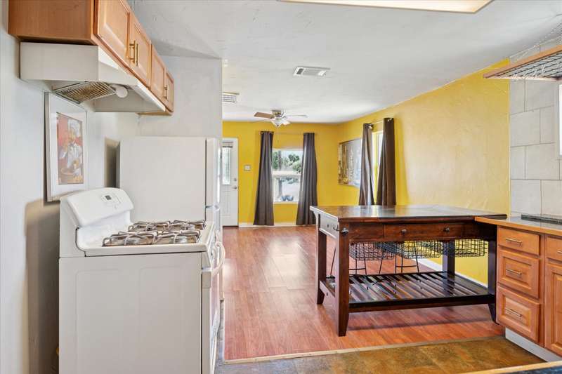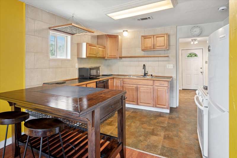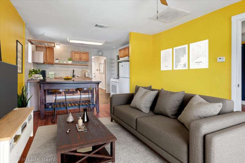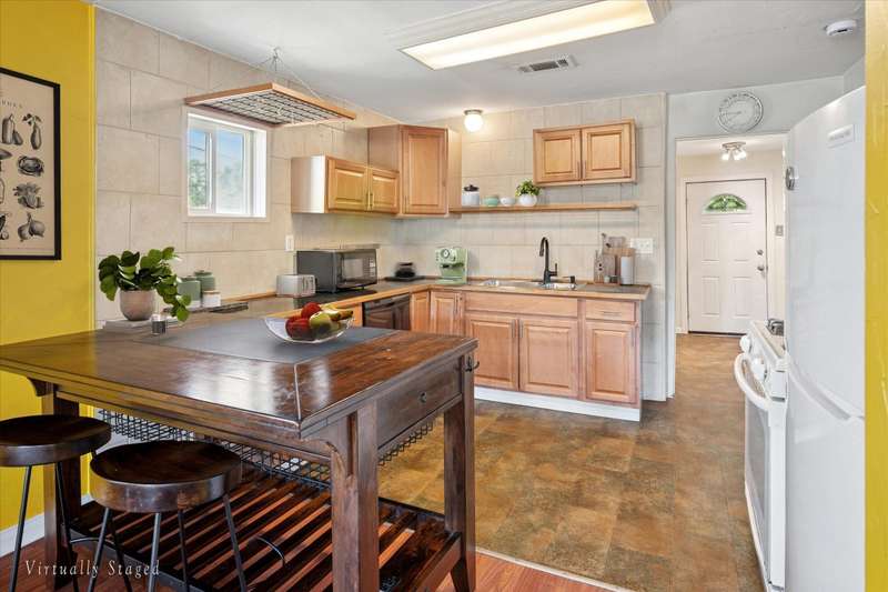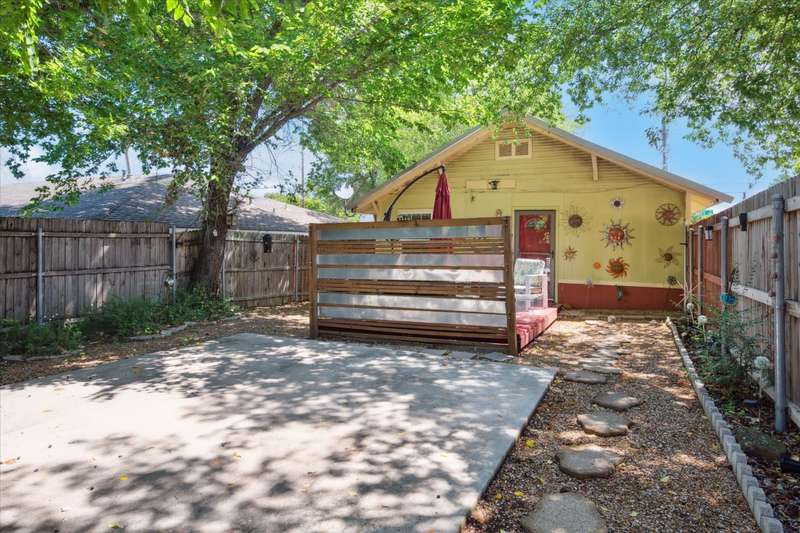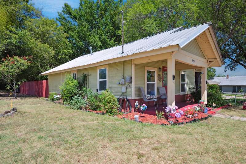 Charming 2 bedroom, 1.5-bath vintage home on a spacious corner lot just minutes from downtown Denton! Built in 1961, this well-maintained property offers timeless character with modern updates including durable LVP flooring and gas cooking. Hot Water Heater replaced 2022. A flexible bonus room provides space for a home office, studio, or easy conversion to a 3rd bedroom. Enjoy outdoor living with a private, tree-shaded backyard, covered front porch, and fenced yardperfect for entertaining or relaxing. Don't overlook the treed space outside of the fence, the lot extends beyond the privacy fence which could easily accommodate additional structure. The separate utility room fits a full-size washer and dryer, and the kitchen includes a gas range and center island with bar seating. Light and Bright this darling home complete with a Metal Roof is just waiting on you to come and see for yourself. Convenient to walking and biking trails, local shops, restaurants, and entertainment.Seller is generously including the following at no cost to the buyer: washer, dryer, refrigerator, microwave, kitchen island with bar stools, hallway mirror, bathroom shelving, pantry cabinet, gas range, outdoor deck furniture, patio umbrella, and front porch table and chairs plus wall mounted 55 inch TV.This home blends vintage charm, comfort, and convenience in one great package. Move-in ready with valuable inclusionsdont miss the opportunity to make this unique Denton home yours! Care has been taken to ensure accuracy, Buyer and Buyer Rep to verify schools and square footage.