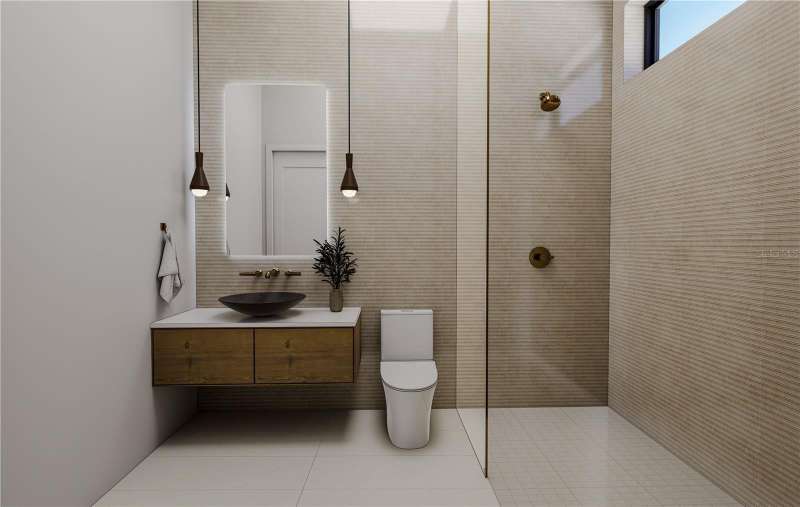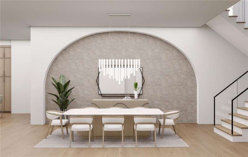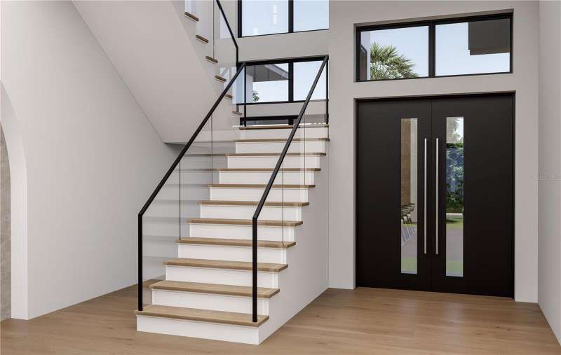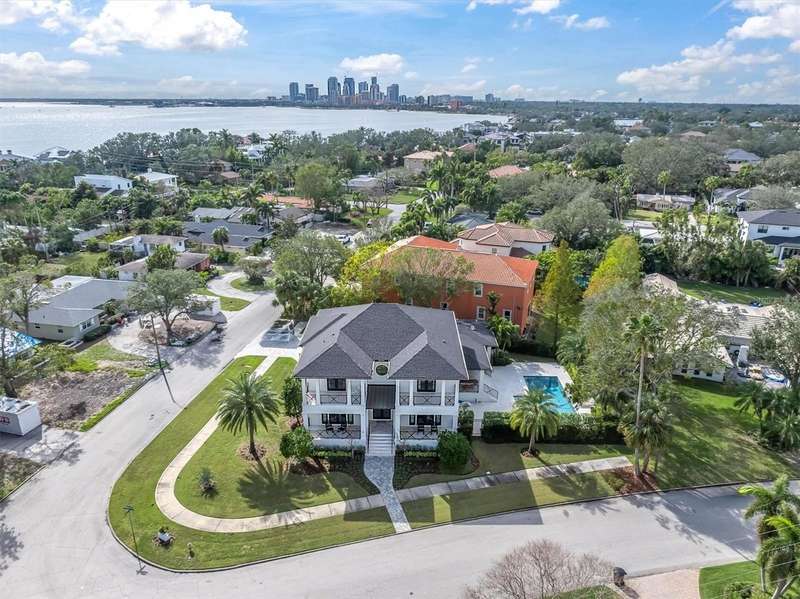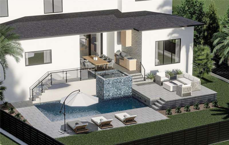 Under Construction. Introducing 609 Alda Way NE, a modern luxury residence in the making, designed with elevated architecture, refined finishes, and effortless indoor/outdoor living. Set on a 9,750 sq ft homesite, the façade blends McNear thin brick with Hardie board accents, bronze impact-rated ESW casement windows, a steel entry door, metal awnings, and a charcoal plank paver drive with in-ground step lighting. Inside, 12ft first-floor ceilings and a dramatic two-story glass entry set the tone. Wide-plank 7" European white oak floors, sleek crown/base profiles, premium lighting, and custom woodwork add warmth and sophistication. The great room pairs 3-panel sliders with a statement fireplace wrapped in large-format slab stone and built-ins, all under a tray ceiling with recessed LEDs. The chef's kitchen (design in progress) is planned with Skinny-Shaker cabinetry, a quartz-wrapped hood, waterfall island, designer backsplash and lighting allowances, and a Wolf/Sub-Zero appliance suite. An elegant study features a tray ceiling and accent wall. Thoughtful utility includes both downstairs and upstairs laundry. The primary retreat is envisioned with an accent wall, tray ceiling with LEDs, and a sitting area with cabinetry/shelving and beverage chiller. The spa-inspired primary bath will showcase luxury flooring/casework, an oversized shower with rain head, Kohler fixtures, and a soaking tub on an elevated platform. Secondary baths are curated with designer tile palettes and high-end selections. Outdoor living shines with a covered lanai, summer kitchen (36" Lynx gas grill & wrapped hood), stone accent wall, 24×24 porcelain pavers, and premium pool tile, plus a dedicated pool bath. Additional highlights include CHI Plank Skyline garage doors (Graphite), a shingle roof, and a tropical landscape package with lighting. Pre-construction / in-process: final selections and finishes subject to change; inquire for the current specification sheet and allowances. Renderings/selections are conceptual and may evolve during construction.