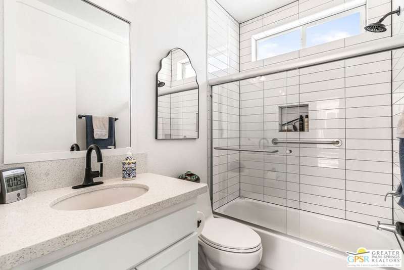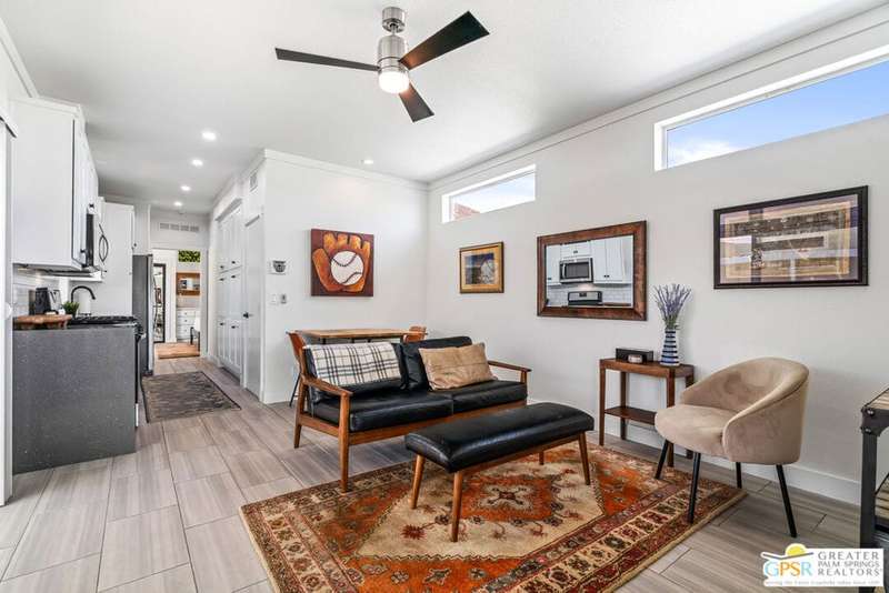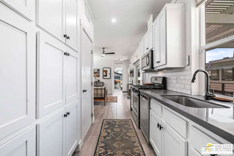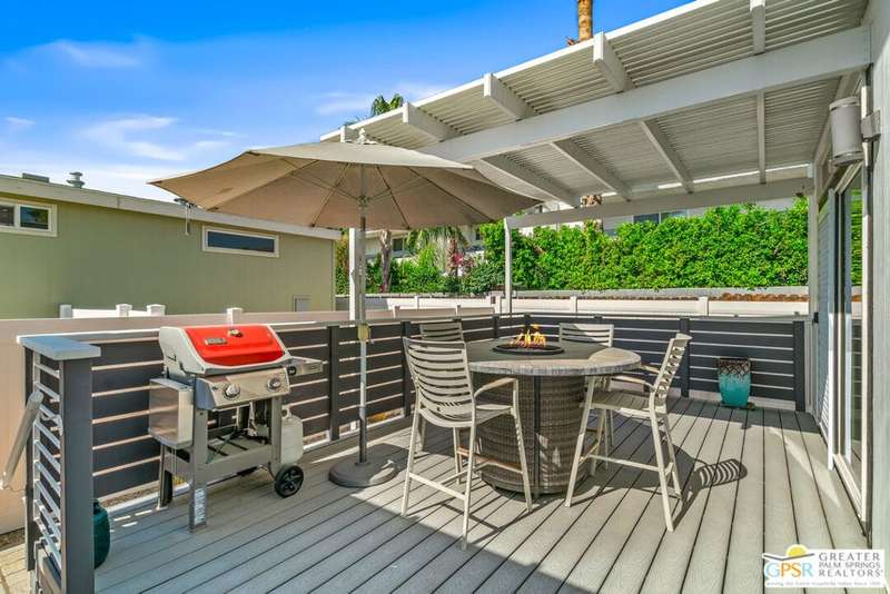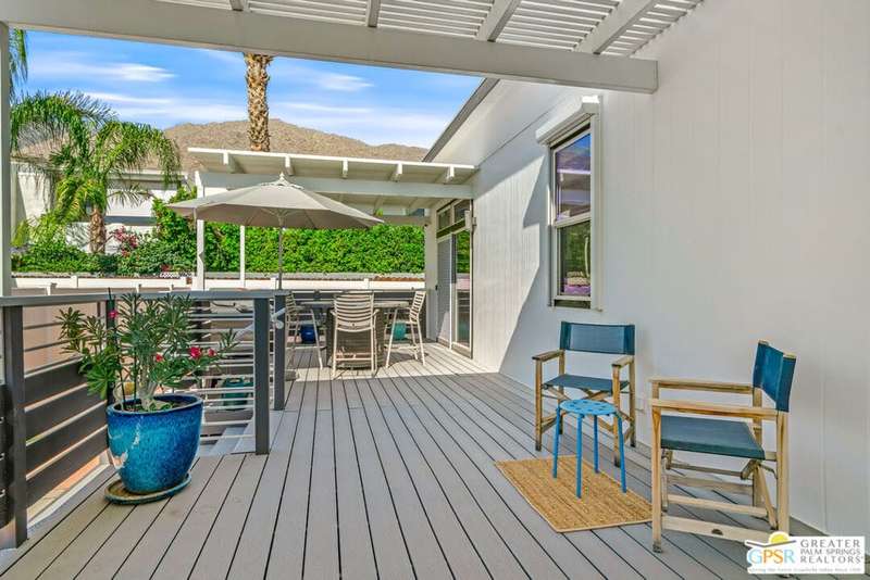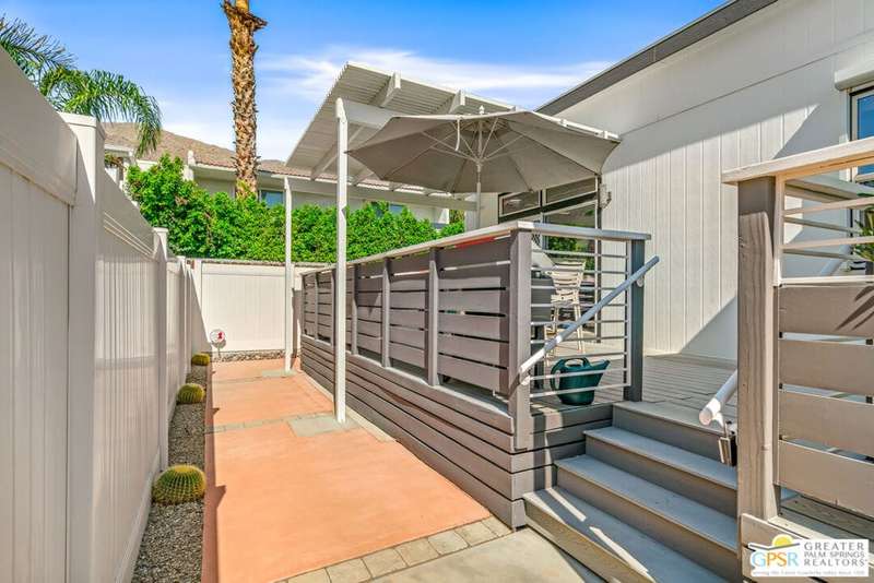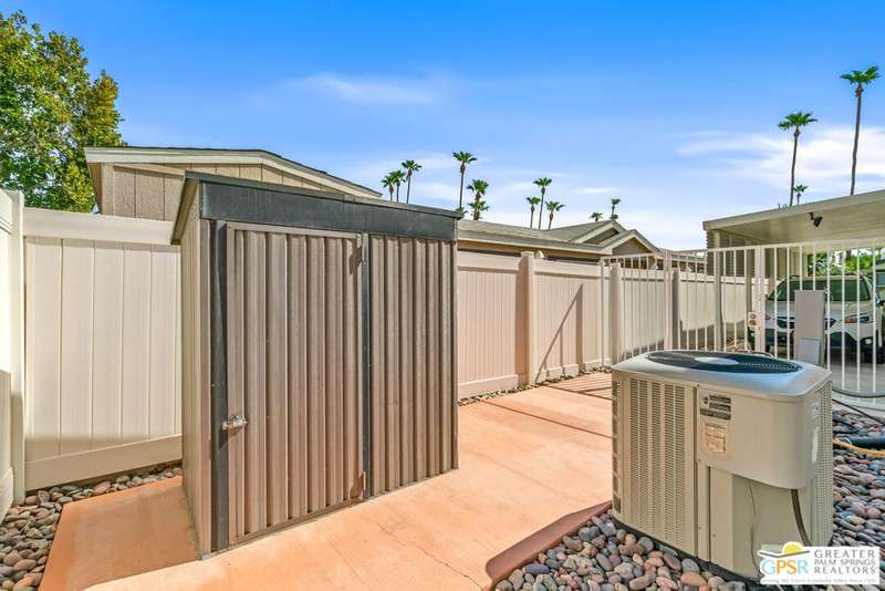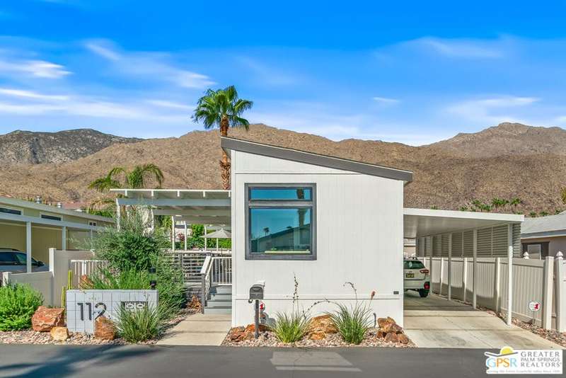 Nestled within the highly desirable Palm Canyon Mobile Club, experience the best of South Palm Springs living at 112 Pali Drive. This highly upgraded, stylish 2-bedroom, 2-bath home blends comfort, convenience, and community in one of the area's most desirable gated neighborhoods. An inviting south-facing layout welcomes you with a bright, modern kitchen outfitted with stainless steel appliances, quartz countertops, and elegant tile flooring throughout. The primary suite features dual customized closets and a generous en-suite bath with a walk-in tile shower, while the guest bedroom showcases sweeping down-valley mountain views with new windows. Step outside to a massive deck spanning the full length of the home, perfect for entertaining along with a large carport and a versatile storage shed. As a resident, you'll enjoy resort-style amenities including a sparkling pool, a spa framed by breathtaking mountain vistas, and a newly renovated clubhouse. Additional perks include two dog parks, a fitness center, billiards, a lounge, a community kitchen, and a party room complete with a dance floor. Park approval is required for new owners to join this vibrant, close-knit community.