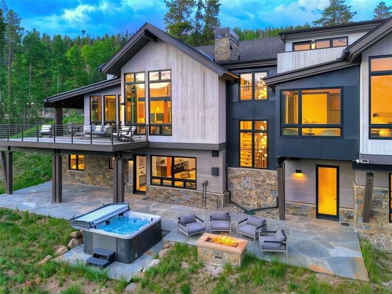 Welcome to Panorama Point! Perched on a gently sloping, sun-drenched 2-acre homesite, Panorama Point is a fully furnished, move-in-ready masterpiece designed by the talented Building Breck in collaboration with Iron Forest Building. As the signature residence of Tres’ Vue—an exclusive enclave of just three brand-new luxury homes—this extraordinary retreat offers unobstructed, panoramic views of the Ten Mile Range and Breckenridge Ski Resort. Located just minutes from Main Street Breckenridge, with easy access to the area’s extensive trail system, this home provides seamless connectivity to town while delivering complete privacy, serenity, and a large, functional backyard rarely found at this caliber. The site also allows for the potential construction of an accessory dwelling unit (ADU). Inside, five generously sized bedrooms and six and a half baths are complemented by an oversized, heated three-car garage—perfect for housing all your mountain gear, vehicles, and adventure-ready toys. Architectural elements throughout are designed to inspire, with the main level showcasing a grand vaulted great room featuring a DaVinci custom glass fireplace, dramatic stone hearth, and a built-in entertainment bar. The luxe primary suite includes a spa-inspired bath with a dual-size shower, freestanding soaking tub, gas fireplace, and breathtaking mountain vistas. Upstairs, a junior suite with a private deck and office connects via a dramatic bridgeway, while the lower level hosts a six-bed bunk room, two additional en-suites, a large family room with game space, wine wall, and wet bar, plus a spa bath with steam shower—just steps from the outdoor hot tub. Designed for year-round enjoyment, the home offers expansive outdoor living with a built-in grill, elevated deck, and lower flagstone patio perfect for stargazing. With Wolf/Subzero appliances, custom cabinetry, white oak flooring, and designer lighting from Inside Source, this is the ultimate expression of mountain luxury.