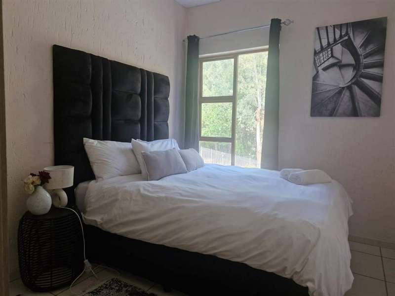Amazing investement opportunity with great rental and air b and b options!!!! Bright and airy 2 bed 2 bath apartment in a beautiful part of Paulshof within walking distance of Free Me Nature Reserve and the German Country Club. The kitchen and reception area is open plan allowing for a spacious living area which flows out to a lovely balcony with beautiful views. The kitchen is immaculate with granite tops and place for 2 undercounter appliances. The main bedroom has an ensuite bathroom and loads of wardrobe space. The second bedroom is serviced by the second bathroom/guest cloakroom and also has spacious built in wardrobes. The apartment has large porcelain tiles throughout. The complex has strict 24-hour security with access control. There is a gorgeous pool, club house and kiddies play area. The German Club next door has a fabulous restaurant, Cescos, as well as number sporting activities. Free Me Nature Reserve has the most beautiful picnic areas and walks ?Çô a real space in the country in the middle of Sandton There is easy access to the highway as well as excellent schools and shopping centres.