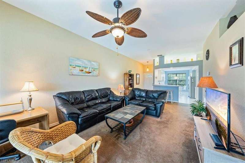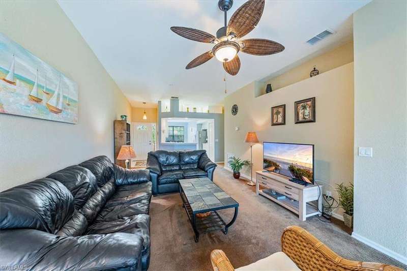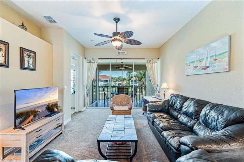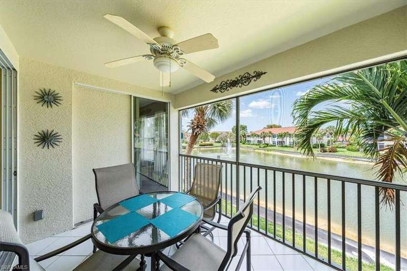 Enjoy Florida sunsets from your west facing covered balcony with unobstructed lake views. This 2 bed/2 bath is a split bedroom floorplan affords privacy between the primary and secondary suite, while the spacious great room is ideal for entertaining. Lighthouse Bay is a gated community uniquely situated in the heart of Southwest Florida. You are only minutes away from Coconut Point, RSW Airport, Gulf beaches, and dozens of golf courses. Within the gates, Lighthouse Bay offers 5 pools, a fitness center plus sauna, 2 boat houses, a clubhouse with multiple rec rooms and affiliations to the Brooks Commons Club! Available for rent May 2025 through December 2025.