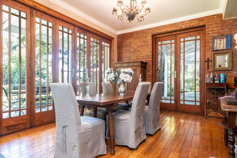 BRAND NEW RELEASE Enchanting 4-Bedroom House in Oaklands with Pool, Guest Cottage, and Historical Significance Nestled on one of Oaklands' most sought-after streets, this captivating 4-bedroom residence exudes timeless elegance and historical significance. Boasting an enchanting garden, a pristine pool area, and a separate guest cottage, this property offers a rare blend of luxury and charm. Upon entering through the original oregon pine doors, you're greeted by the grandeur of double-volume ceilings and meticulously preserved period and custom bespoke features. The spacious living areas are adorned with multiple fireplaces, creating a cozy ambiance for relaxation and entertaining. The gourmet kitchen is equipped with high-end fittings and features, perfect for culinary enthusiasts. Adjacent to the kitchen, discover the downstairs wine cellar or entertainment space, ideal for hosting intimate gatherings or storing your prized collection. Step outside onto the expansive patio that surrounds the house, where you'll find serene outdoor living spaces amidst the lush landscaping. Lounge by the poolside oasis or dine al fresco under the stars in this private sanctuary. The separate guest cottage provides a tranquil retreat for visitors, offering privacy and comfort with its own ensuite bathroom and kitchen. Additionally, the property features a separate loft with ensuite, providing versatility and additional living or creative space. History enthusiasts will appreciate the historical significance of this home, which has been lovingly maintained to preserve its original charm and character. From the original oregon pine door and frames to the exquisite craftsmanship throughout, every detail tells a story of Oaklands' rich heritage. With three garages, staff quarters, and a laundry area, convenience meets luxury in this exceptional property. Meticulously maintained and situated on a panhandle, this home offers security and privacy, a rare opportunity to own a piece of Oaklands' history while enjoying modern comforts. Experience the allure of this enchanting residence firsthand. Schedule a viewing today and discover the timeless beauty and historical significance of this Oaklands gem. KEY FEATURES: - Bespoke Layout And Finishes - Ultra Secure And Private - Conveniently Located - Close To All Private Schools And Religious Houses - Unique Curated Interior - Established Garden With Mature Trees - Sparkling Pool - Expansive Outside Spaces - Loads Of Off-Street Parking