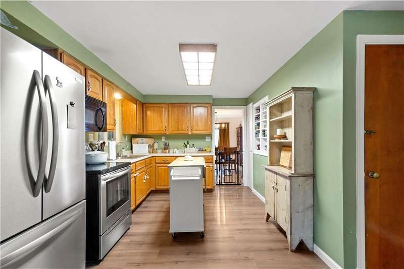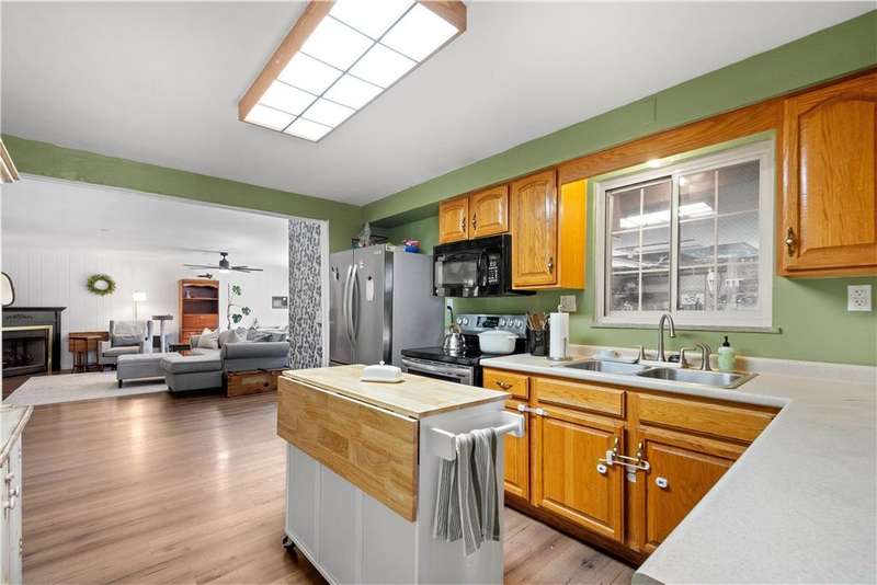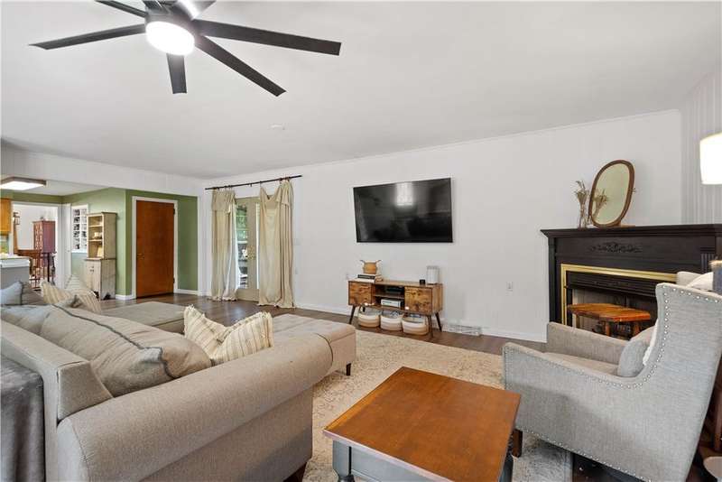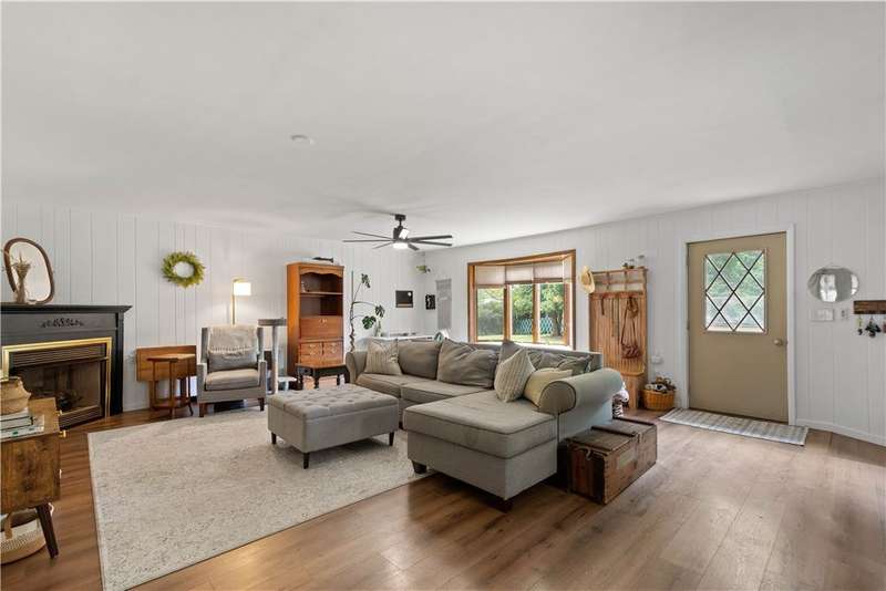 Welcome to 1160 Hunter Road. This level entry Ranch home includes beautifully refinished hw floors, tons of natural light, a level backyard perfect for entertaining, and much more! The spacious dining room(14'x18') includes a decorative fireplace with chandelier lighting, leading into the Chef's kitchen fully equipped with tons of storage and prep space. The large family room(24'x19') includes LVP floors, a cozy gas fireplace, and bay window. Private screened in porch off the family room. Two bedrooms and a full bath complete the first level. The lower level offers perfect storage space and can be easily converted into a finished basement. A half bath, laundry space, and dry storage room complete the lower level. New water lines (2021), updated basement electric (2024), new gas line in basement(2024), Furnace (2024), and Metal roof. The large 2 car attached garage includes additional storage space. Entertaining is a breeze with the large backyard with chicken coop and garden.