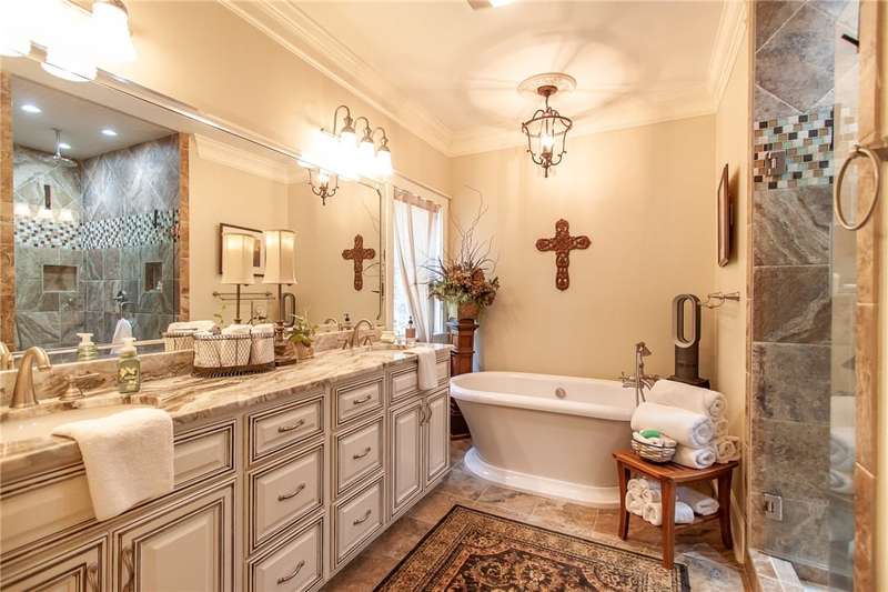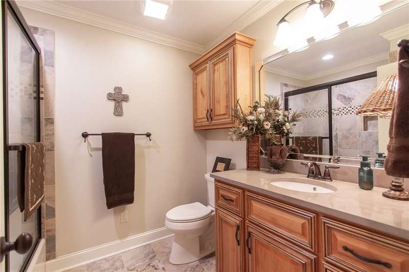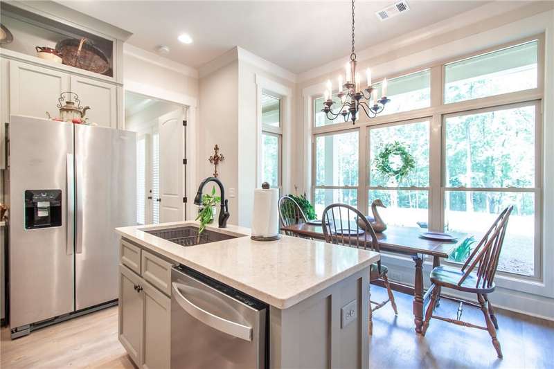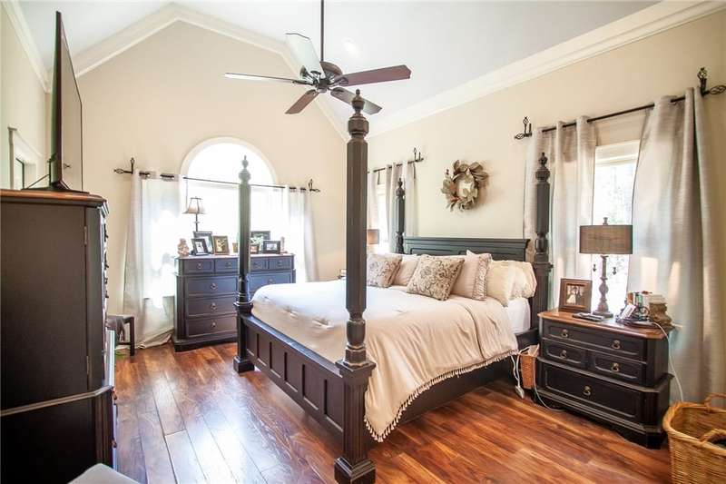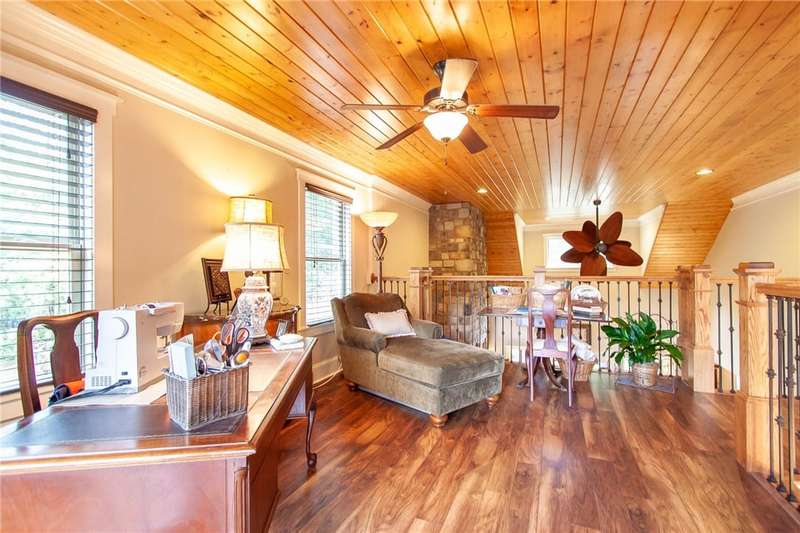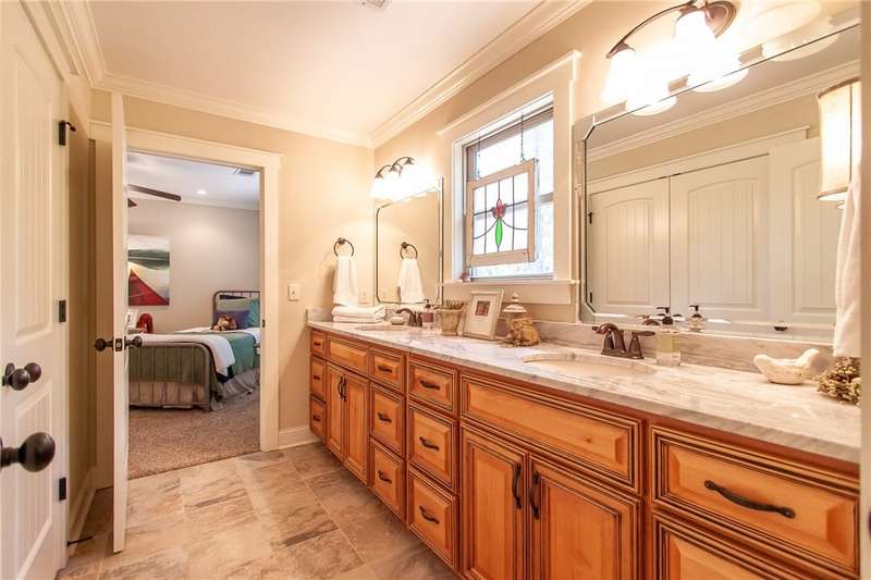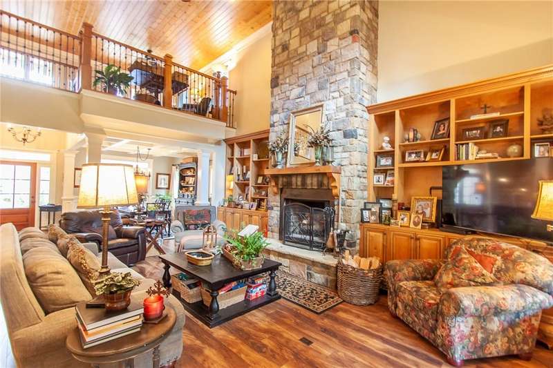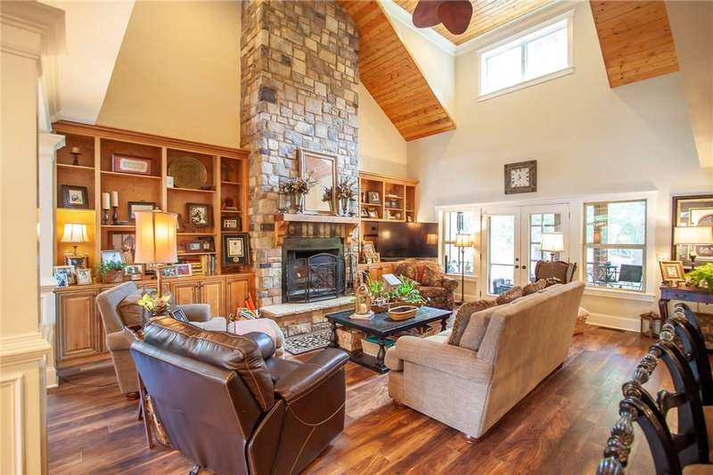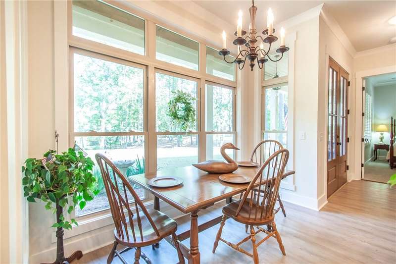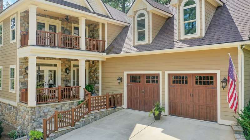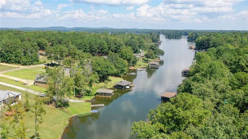 NOTE: Square footage of Main house is 3346 (4BR/3.5BA) & Guest House (2BR/2BA) square footage is 1048 for the total of 4394. Rare opportunity to enjoy a beautiful custom-built home AND guest home situated on 1.62 acres in secluded Waters Edge S/D on Lake Harding. Main house offers perfect blend of luxury & comfort. Abundant moulding, Wainscoting & coffered ceilings in dining room; tongue & groove ceiling in family room & loft area. Primary BR on main floor. 1/2 guest BA off kitchen. Large laundry room w/plentiful cabinets, utility sink and folding area. Quaint loft area overlooks main living area; perfect for reading, sewing, or relaxing in the outdoor covered seating area. Three additional BR and 2 BA upstairs PLUS amazing office/media room/exercise space. Guest house built in 2022. It's perfect for family, guests or VRBO. Public boat launch is adjacent to subdivision. House is right off the water w/lake views and access to common area, great for parking/docking your boat/jet ski.