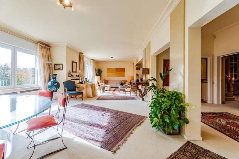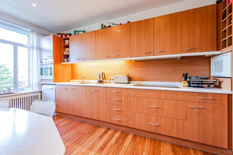 Opposite Brugmann Park, attractive duplex penthouse apartment on the 7th and 8th floors of a partially renovated building dating from 1965, with spectacular views. It has a surface area of approximately 285 m² and terraces of 70 m², offering a spacious reception room, a large fitted kitchen, 4/5 bedrooms, and 2 bathrooms. Garage for 2 cars. EPC G.