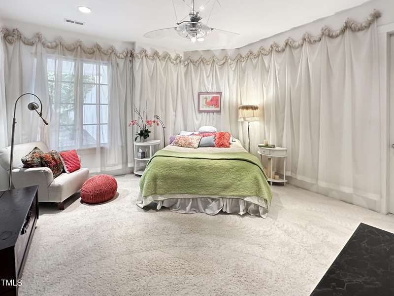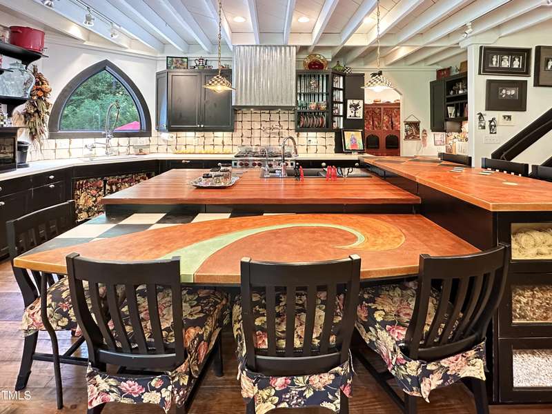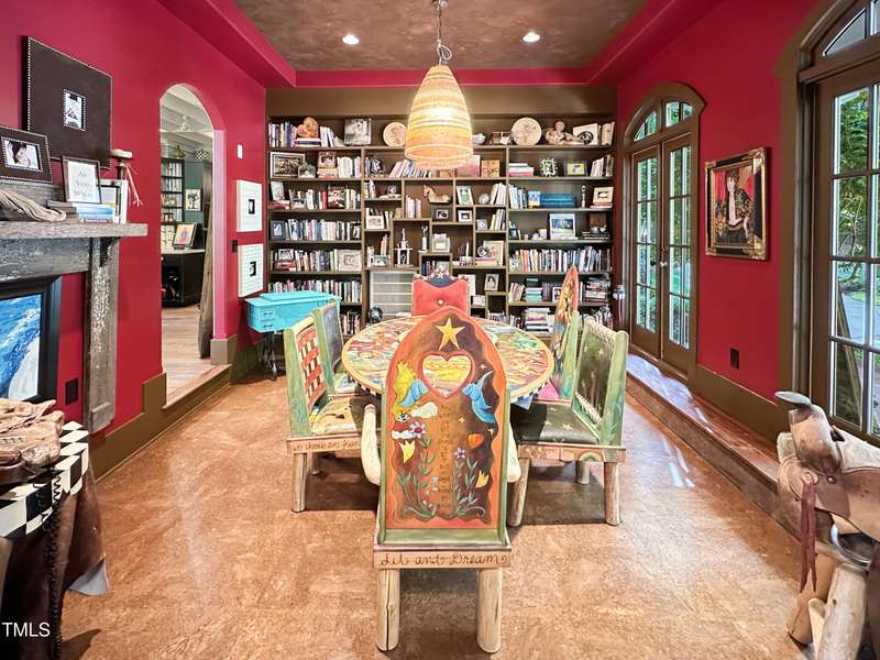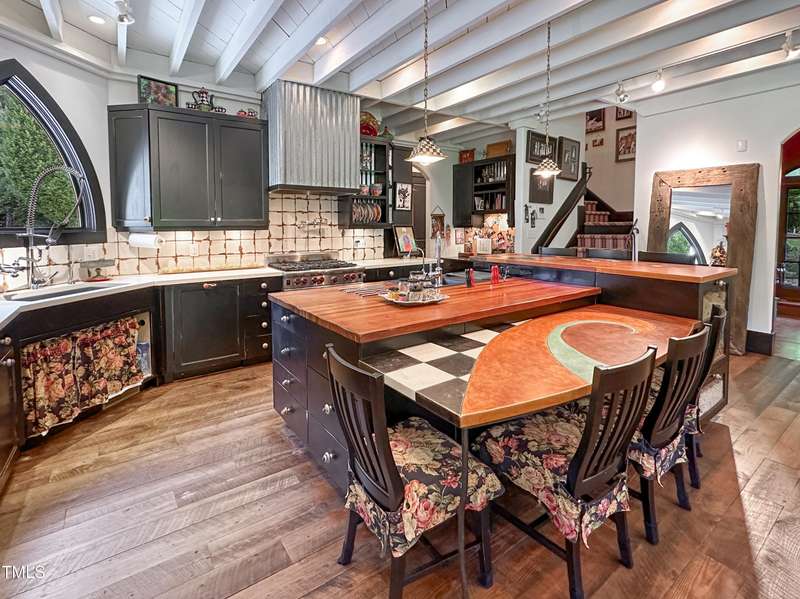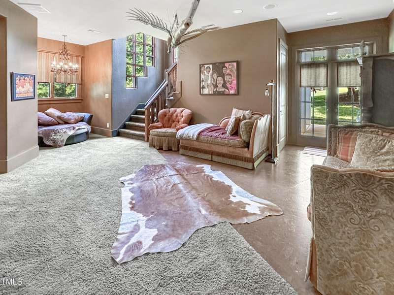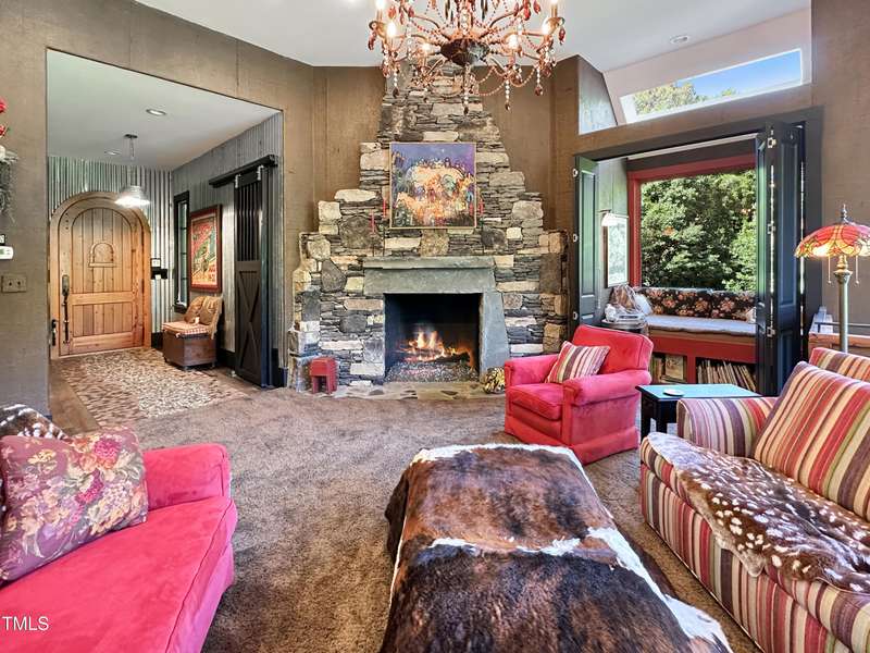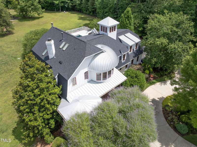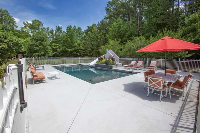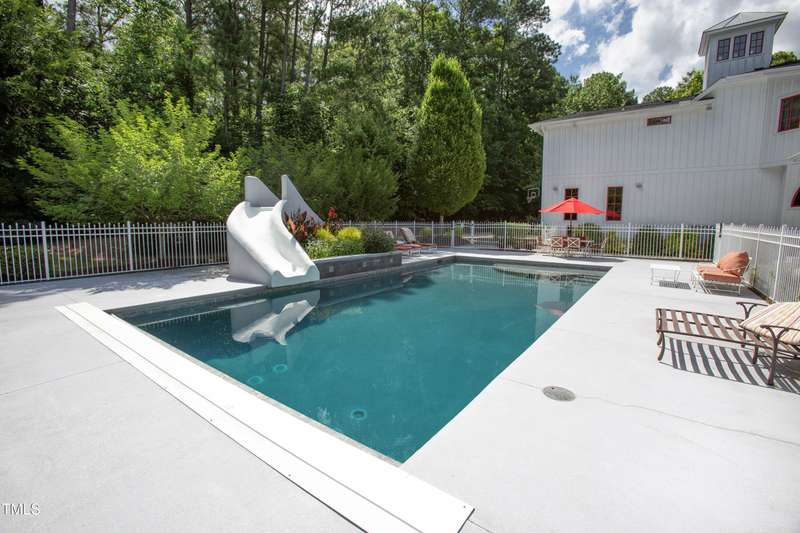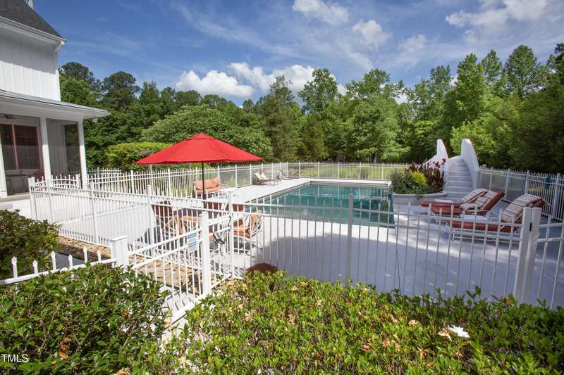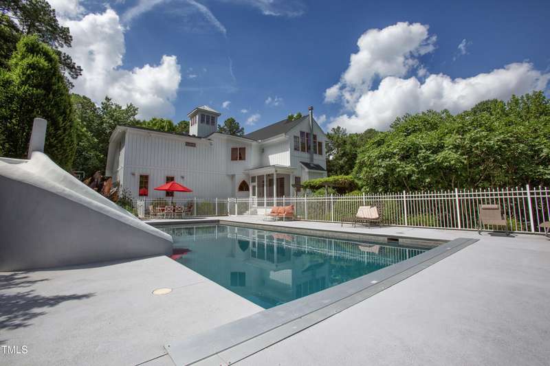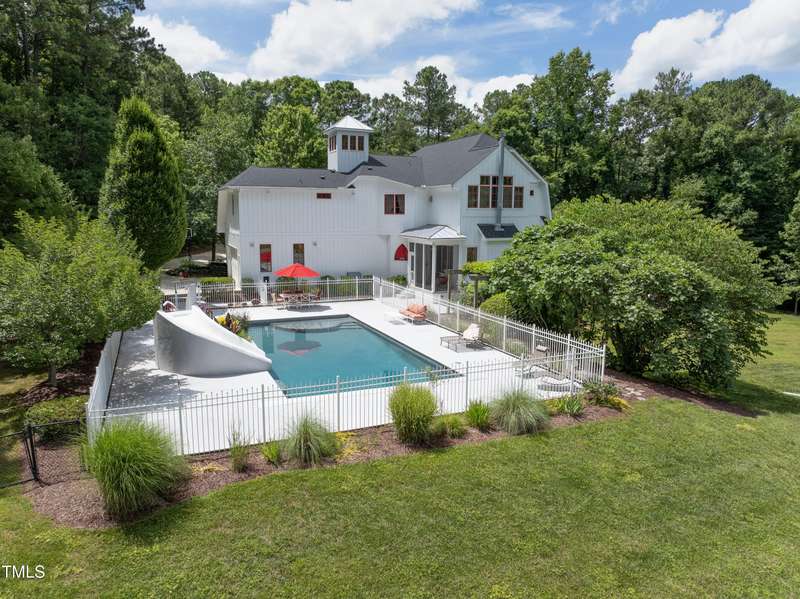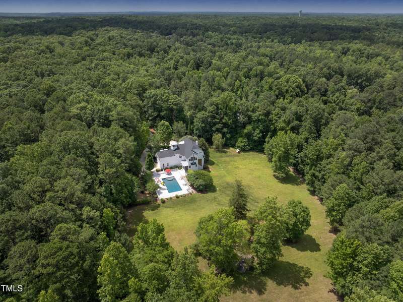 An Artist's Dream Home. This 5 Bedroom and 4.5 Bath Custom Home is full of Character and Creative flair. Nothing boring here! This home was designed with a vibe for the imaginative person who loves Free Flowing Rooms with whimsical touches. A uniquely different home surrounded by stunning landscapes. It's filled with natural wood carvings, art, and creative wrought iron accents. The home sits on 5.5 acres with stunning views of trees, open spaces, a swimming pool, a huge yard, and backs onto Falls Lake. It features an open kitchen with a bar and a sitting room with a fireplace, a craft room, an office area, and a pantry/mudroom. The second floor has a master suite, oversized bedrooms, private baths, and plenty of room to expand. The lower level includes a family room, guest bedroom, and ample storage. Enjoy a quiet walk around the grounds or to the lake. Relax on the large covered front porch or by the pool. It also offers easy access to shopping, RTP, and I-540. 360 Tour: https://momento360.com/e/u/7b297a673eca44dbbb766185ff944d24?utm_campaign=embed&utm_source=other&heading=0&pitch=0&field-of-view=75&size=large&display-plan=true