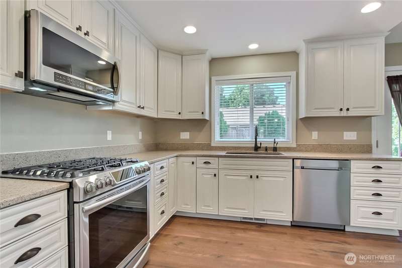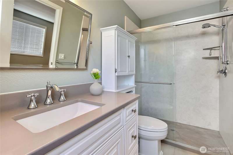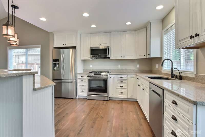 Gorgeous RARE rambler home in Lacey's Brookfield section of Lake Pointe! Vaulted ceilings & open concept design give it spacious feel. Top quality details abound including plantation shades & solid core doors. Brand new roof! Recently updated chef's kitchen features quartz counters, new matching SS appliances, instant hot water, raised soffit, Bay View quiet close cabinetry & fresh interior paint throughout. New 95% high efficiency furnace & central A/C in 2018. The primary suite offers double closets, new tile flooring, updated toilet, mirror, cabinetry & fixtures. Landscaped yard just refreshed, new rear stoop. An exceptional home in a prime community location. Act fast and ask your broker to tour today!