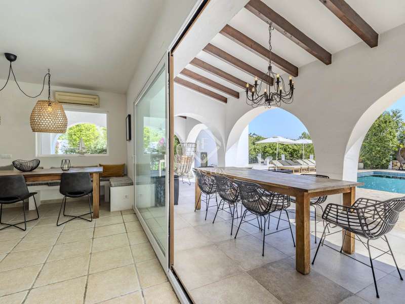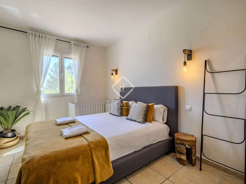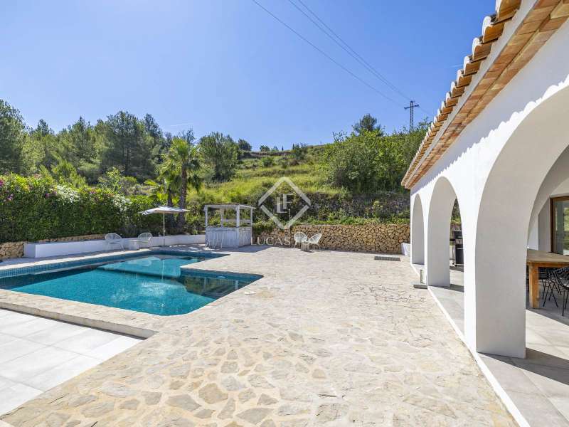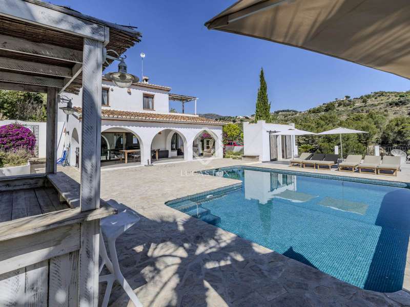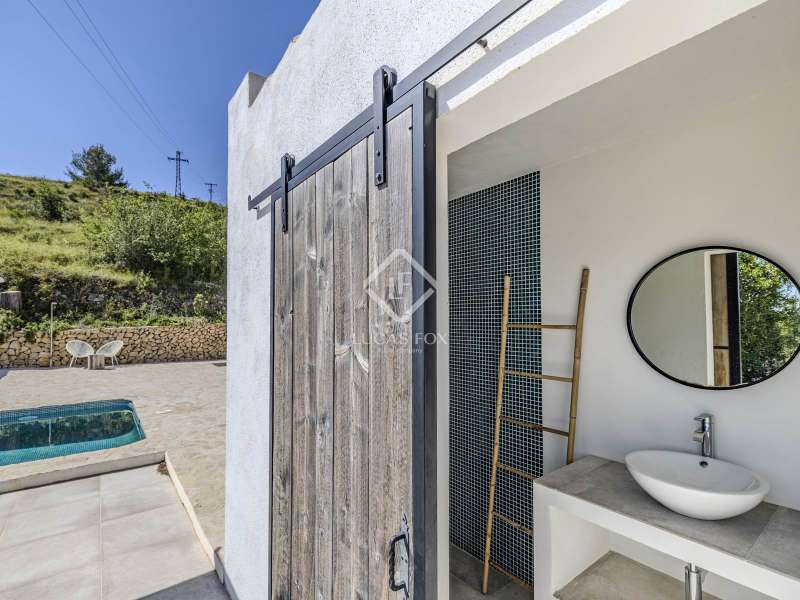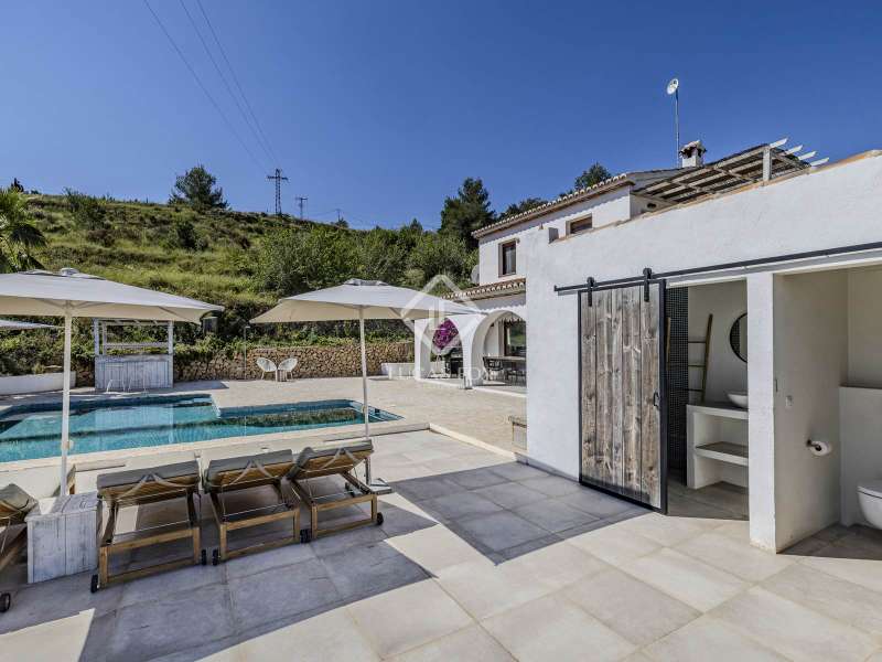 Set in a peaceful, secluded valley just minutes from Benissa, Calpe, and the stunning Jalon Valley, this beautifully renovated finca offers the perfect balance of privacy, comfort, and modern Mediterranean style. Nestled on a generous 10,000 sqm plot surrounded by nature, it’s an ideal space for anyone looking to unwind, entertain, or host wellness and lifestyle retreats. The property features four spacious bedrooms and three shower rooms. The finca is designed with a mix of traditional character and contemporary finishes. Upon entering the house we have an open style living and dining area, as well as on open kithcen leading us to the heart of the home is a gorgeous L-shaped naya — a covered terrace that opens out onto the south-east facing pool area. It’s the perfect spot for relaxed breakfasts, long lunches, or evening drinks as the sun sets behind the hills. The main bedroom is on the groundfloor and has the luxury of an ensuite shower room. Next to the staircase to go upstair there is a separate guest toilet. On the second floor we find 3 more double bedrooms with their own wardrobes, a separate toilet, a bathroom and a laundry room. One of the bedrooms has an ensuite shower room, where as an other has a private terace. The outdoor areas are made for modern, easygoing living. The large terrace includes a private pool and a built-in bar area, creating a laid-back social hub for gatherings with family, friends, or retreat guests, as there also is an outside toilet and shower room. The finca’s position ensures plenty of natural light and open views, while the extensive grounds offer space for yoga decks, garden walks or would make an ideal location for keeping horses. With its unbeatable location — close to local beaches, charming villages, and the renowned vineyards of the Jalon Valley and the AP7 high way — this property is a rare find. Whether you’re looking for a family home, a second residence, or a boutique retreat space, it’s a place where natural beauty and modern comfort come together effortlessly.