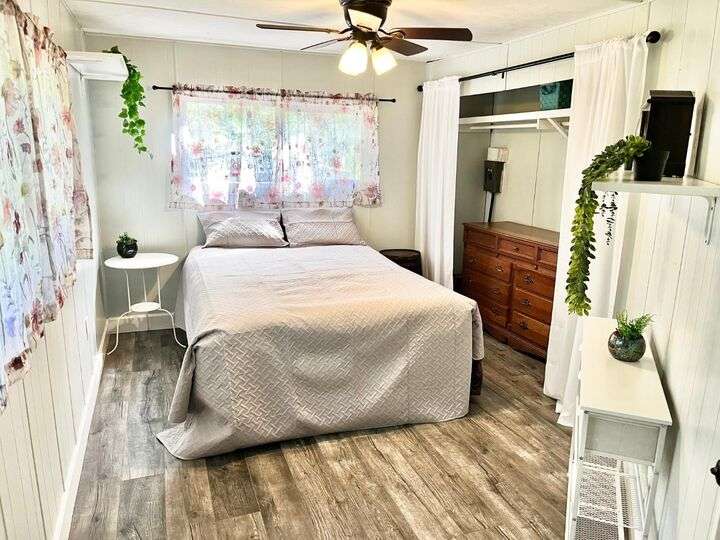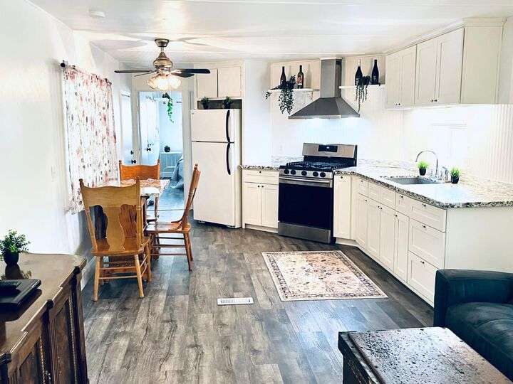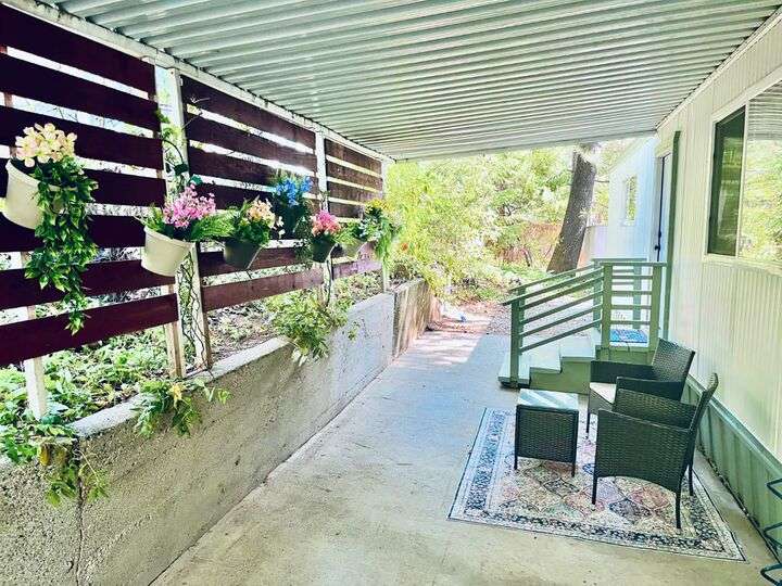 Discover this beautifully upgraded 672 sq. ft. in Grass Valley Mobile Home Village. 2-bedroom, 1.5-bath home with modern features and an open layout in this ALL-AGES PARK. The home includes double-pane vinyl windows, water-resistant laminate flooring, and waterproof vinyl in the bathrooms. The kitchen is stylishly updated with solid wood, soft-close cabinets, granite countertops, a new large stainless-steel sink, gas stove, range hood, and ceiling fans. The kitchen takes center stage in this move-in-ready home, boasting efficient central gas heating complemented by a charming wood-burning stove for added warmth and ambiance. Freshly painted inside and out, the home also includes an AC window unit and a standalone unit for year-round comfort. Washer and dryer hookups for a stackable unit are conveniently located inside, rounding out the practicality of this inviting space. Nestled among the trees in the serene Grass Valley Mobile Home Village, this charming community offers a lifestyle with fantastic amenities. Relax by the seasonal pool, take advantage of the clubhouse with laundry facilities, and enjoy the spacious, peaceful layout. Conveniently located just off Highway 49 with a 4-minute drive to Grass Valley's and all its amenities. Make this charming, upgraded home yours!