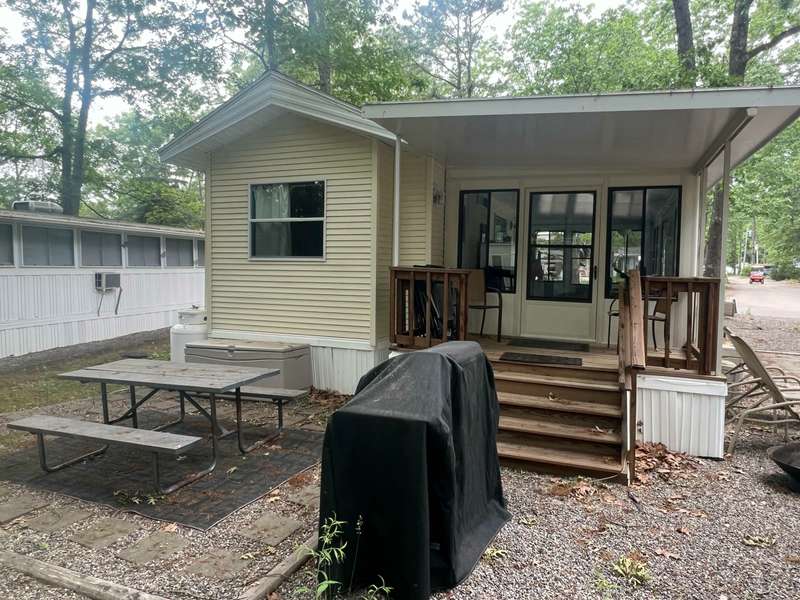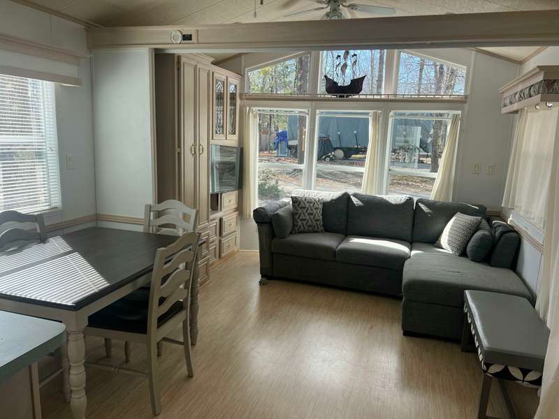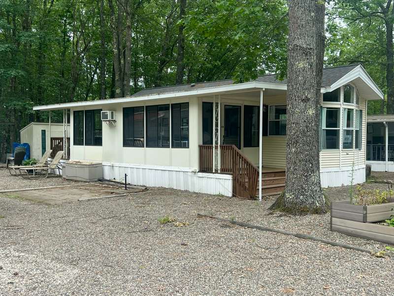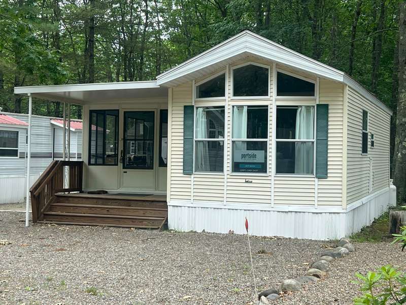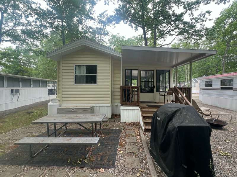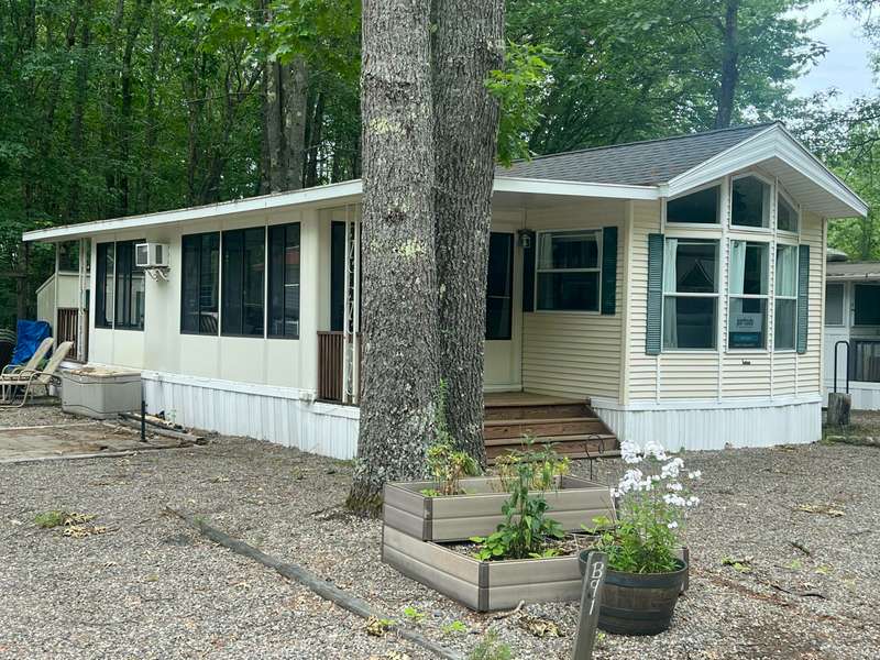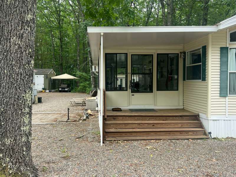 Welcome to Yankeeland Resort! Outstanding 1 bedroom 1 full bath Chariot Eagle Park Unit sited on a large private lot abutting trees and green space. Built in 2000 and maintained very well throughout the years. Newer roof, vinyl siding, and front and rear porches. Very little, if any, deferred maintenance. Expansive sunroom adds to the appeal while providing additional space suitable for most of your daily wants and needs. The open concept design of the kitchen, dining, and living room is ripe for entertaining or simply lounging around. The kitchen is spacious and equipped to satisfy all your cooking needs to include gas range, large refrigerator and ample space to prep. The bathroom is efficient with a full-size shower/bathtub and comes complete with separate entrances to the bedroom and common areas. Climate control is under control thanks to the forced hot air system for heat and built-in A/C units for cooling. Amenities galore in this vibrant community to include a pool, pavilion, basketball courts, playground, game room, and fire pit. The direct access to the Mousam River is equipped with its own dock suited to anchor all those summertime water activities. Yankeeland Resort is conveniently located close to everything the 'Kennebunks' has to offer. Beaches less than 8 miles, Shops/restaurants less than 4 miles, Dock Square less than 8 miles. Your summer oasis can't get any better than this! Must be seen!