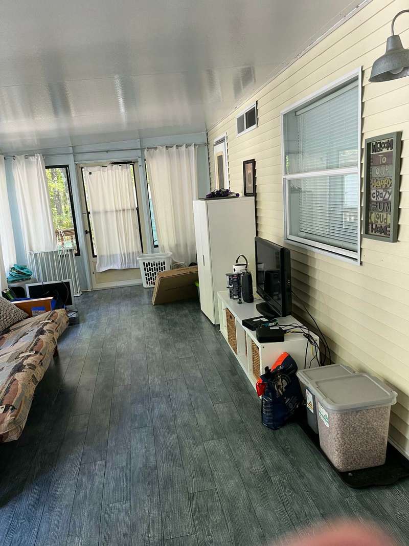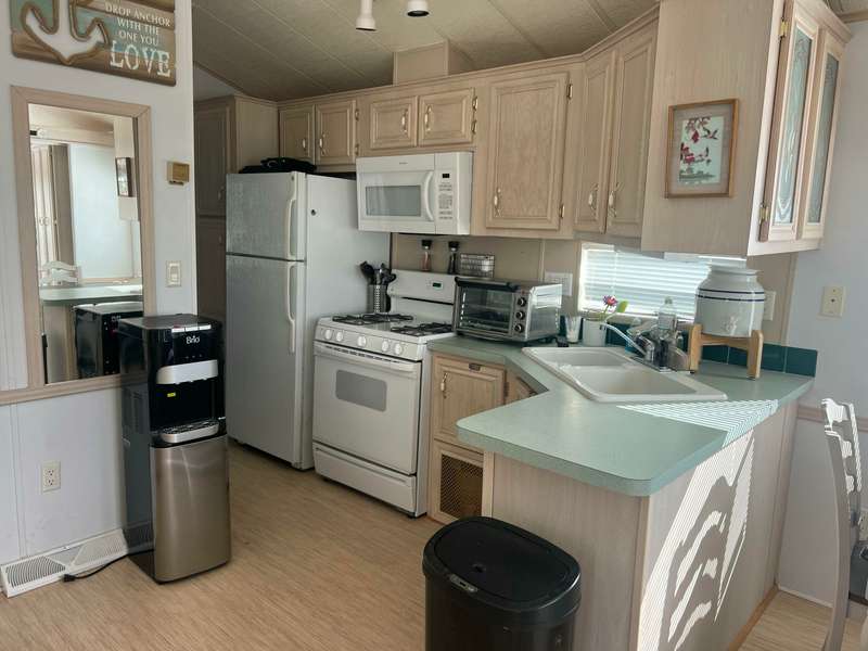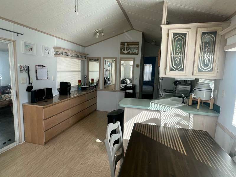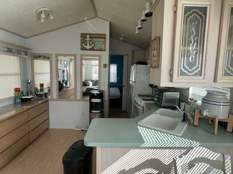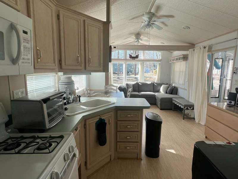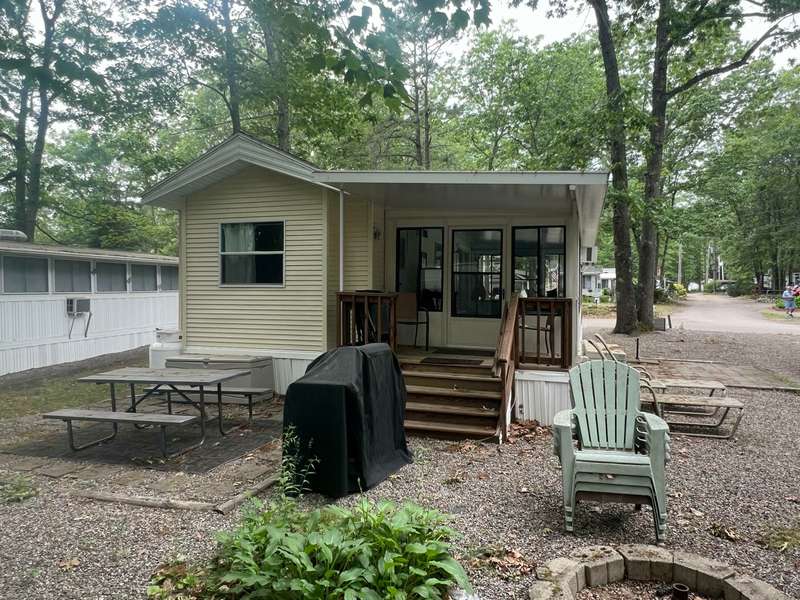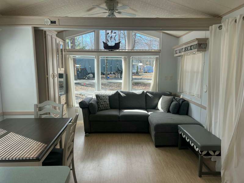 Welcome to Yankeeland Resort! Outstanding 1 bedroom 1 full bath Chariot Eagle Park Unit sited on a large private lot abutting trees and green space. Built in 2000 and maintained very well throughout the years. Newer roof, vinyl siding, and front and rear porches. Very little, if any, deferred maintenance. Expansive sunroom adds to the appeal while providing additional space suitable for most of your daily wants and needs. The open concept design of the kitchen, dining, and living room is ripe for entertaining or simply lounging around. The kitchen is spacious and equipped to satisfy all your cooking needs to include gas range, large refrigerator and ample space to prep. The bathroom is efficient with a full-size shower/bathtub and comes complete with separate entrances to the bedroom and common areas. Climate control is under control thanks to the forced hot air system for heat and built-in A/C units for cooling. Amenities galore in this vibrant community to include a pool, pavilion, basketball courts, playground, game room, and fire pit. The direct access to the Mousam River is equipped with its own dock suited to anchor all those summertime water activities. Yankeeland Resort is conveniently located close to everything the 'Kennebunks' has to offer. Beaches less than 8 miles, Shops/restaurants less than 4 miles, Dock Square less than 8 miles. Your summer oasis can't get any better than this! Must be seen!