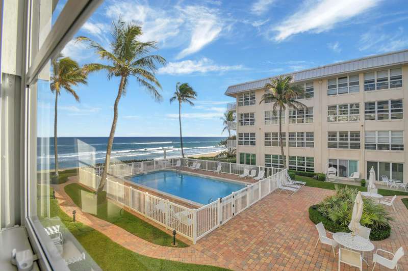 Welcome to Paradise! This bright & airy 1/1 condo boasts a natural color palette. Enjoy stunning OCEANFRONT & POOL VIEWS from your south-facing unit, complete with BAMBOO floors, walk-in shower, and energy-efficient IMPACT GLASS WINDOWS. Nestled directly on the ocean with a wide sandy beach, the property features an oceanfront pool and onsite mgmt. Best of all, it's PET FRIENDLY, making it an ideal home for your furry companion. Just 3 miles from the vibrant Atlantic Ave (heart of Delray Beach) & only 15 minutes from PBI Airport, this home is ideally located for both relaxation and convenience. With the milestone inspection completed, you can move in with peace of mind. Whether you're seeking a peaceful sanctuary or a vibrant coastal lifestyle, this condo offers the perfect blend.
