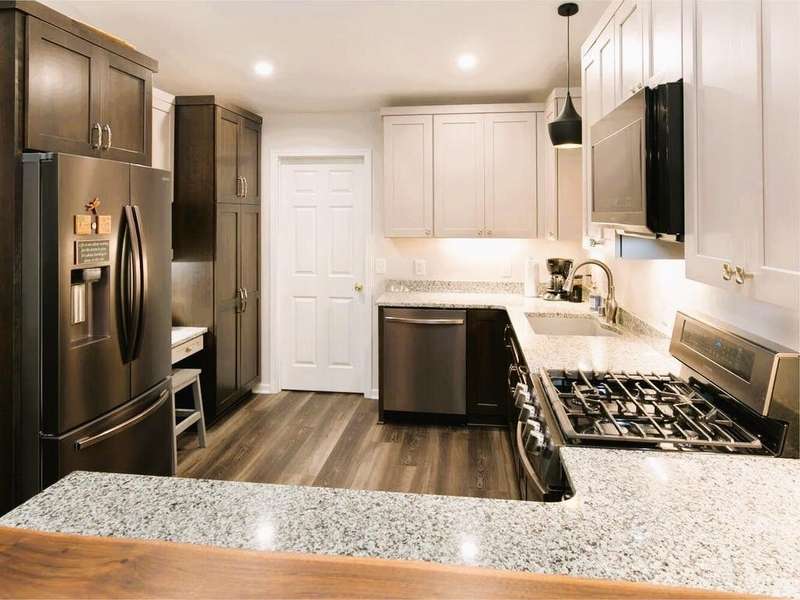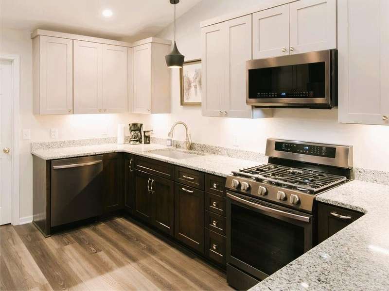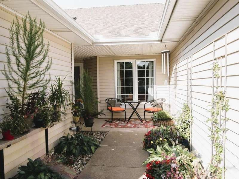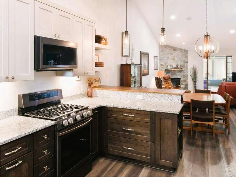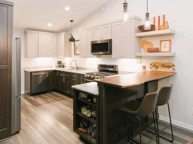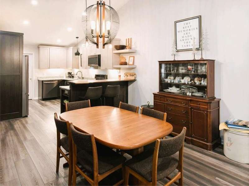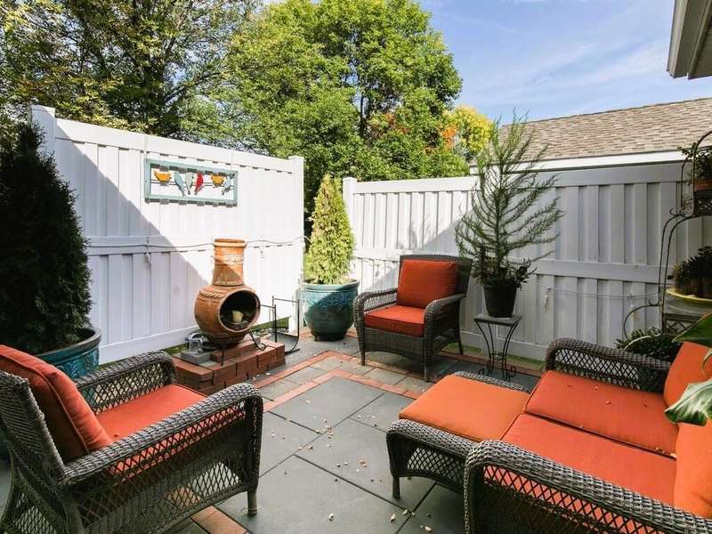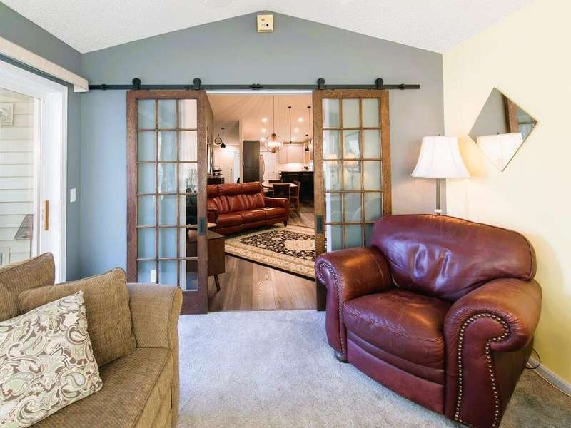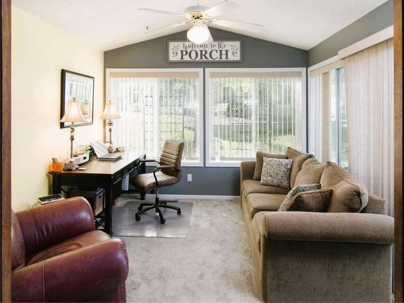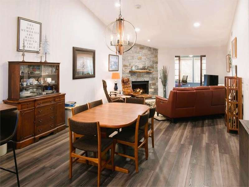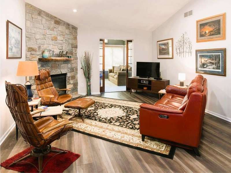 Beautifully updated one level townhome offering stylish comfort and easy living! All the updates have been done, creating a turn key property ready for its new owner(s). Step inside to an open-concept layout highlighted by fresh paint, new lighting, LVT plank floors, floor to ceiling stone surround gas fireplace and a gorgeous, remodeled kitchen featuring two-tone maple cabinets, granite counters, pantry with pull-outs, and a striking black walnut live-edge breakfast bar. The spacious owner's suite boasts a walk-in closet and a professionally updated private ¾ bath with custom ceramic tile, walk-in solid surface shower and double sink vanity. A bright sunroom with vintage library door, opens to a private patio-perfect for morning coffee or evening relaxation. Additional features include a refreshed main bath, 2nd bedroom and modern finishes throughout. Outdoor living spaces also shine with welcoming front walkway with beautiful perennial gardens as well as the very private patio surrounded by lush plantings - a testament to the seller's green thumb - creating peaceful outdoor retreat areas. Well maintained association and convenient access to shopping, restaurants, walking trails and roadways for easy commute.