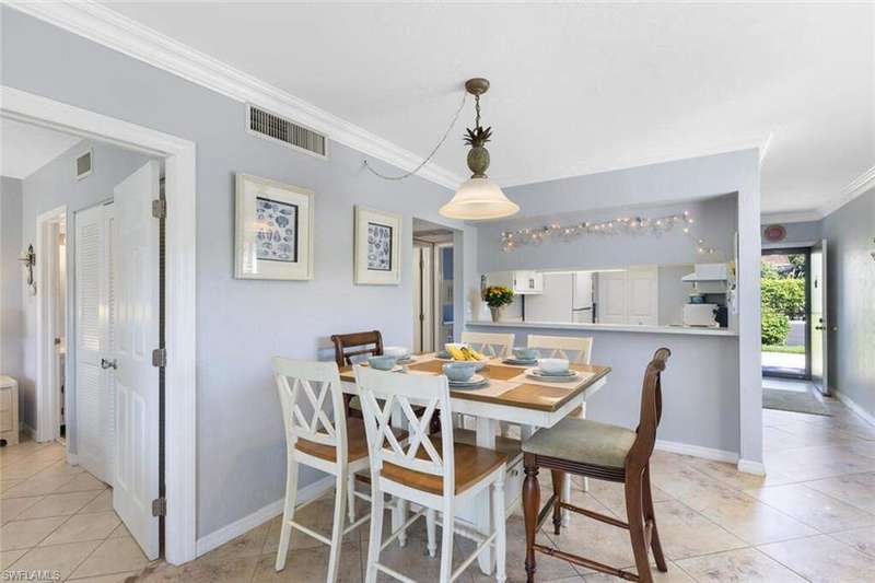 Enjoy the Florida sun all day long in this charming 2-bedroom, 2-bathroom condominium located directly across from Marco Island's world-famous Resident's Beach. With highly desirable southern exposure, this home is filled with natural light from sunrise to sunset, creating a warm and inviting coastal retreat. This first-floor condo offers ultimate convenience with a designated parking space right outside your door-no elevators or long walks needed. Inside, you'll find a spacious layout with two generously sized bedrooms, two bathrooms, and the added practicality of an in-unit washer and dryer. Elegant plantation shutters and crown molding in the living areas add timeless style and a touch of sophistication. The community is vibrant and well-maintained, featuring a resort-style pool along with beautifully landscaped grounds. Just steps from the beach, shopping, and dining, this location makes it easy to immerse yourself in the relaxed Marco Island lifestyle. Whether you're seeking a full-time residence, seasonal getaway, or investment opportunity, this sun-filled beachside condo offers comfort, convenience, and the best of island living.