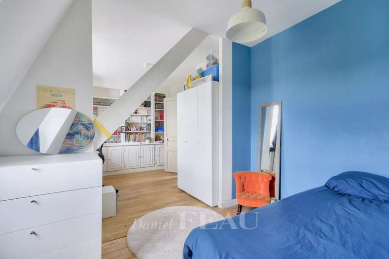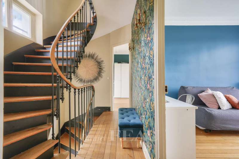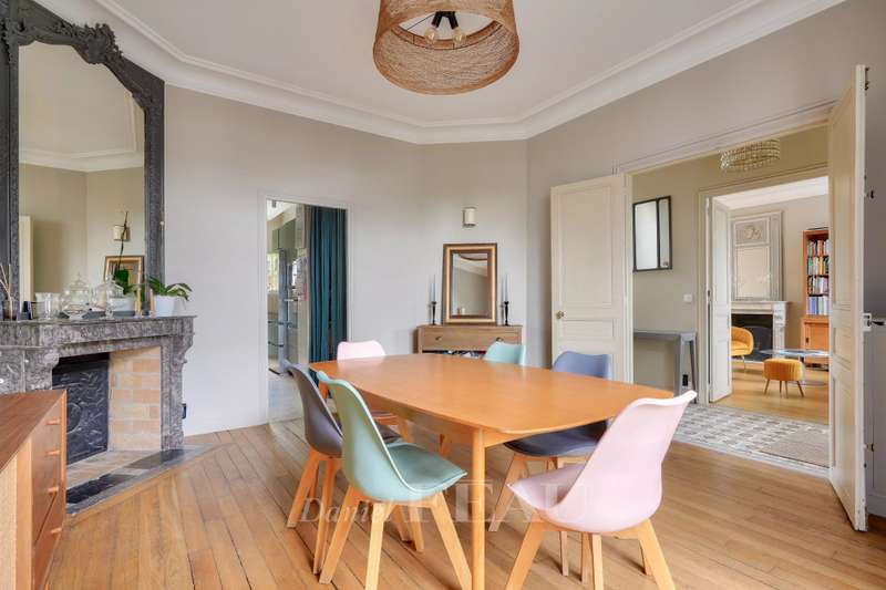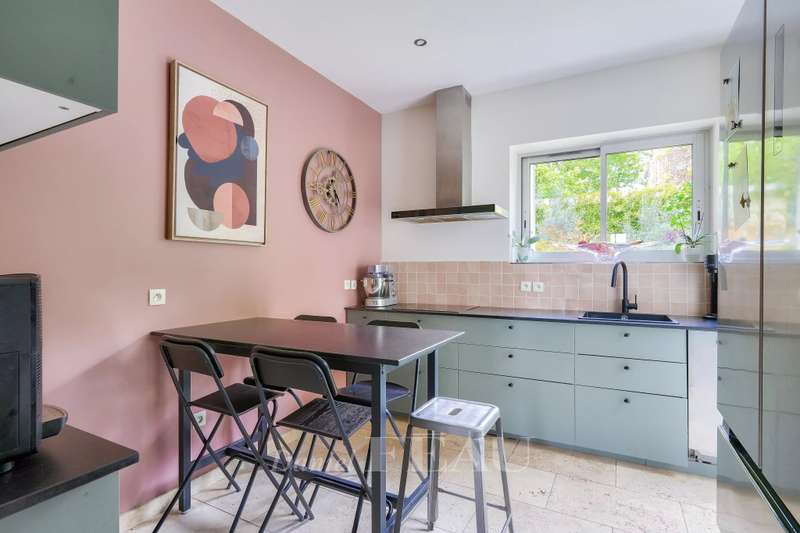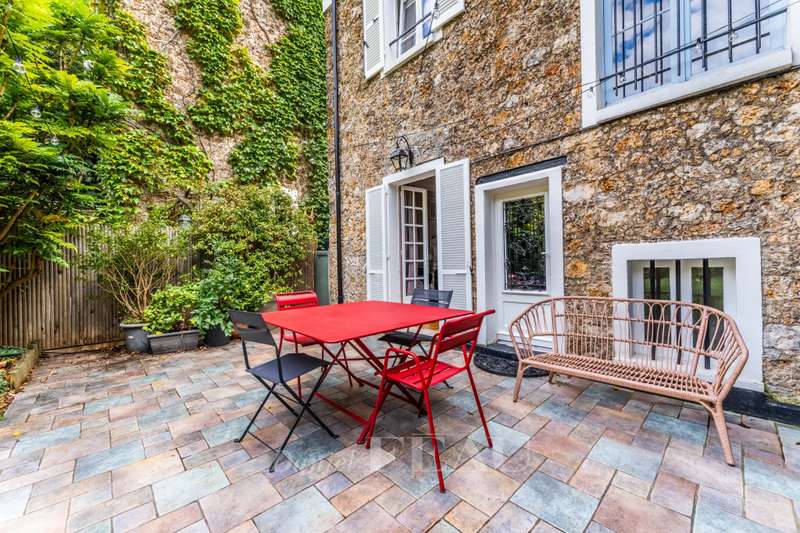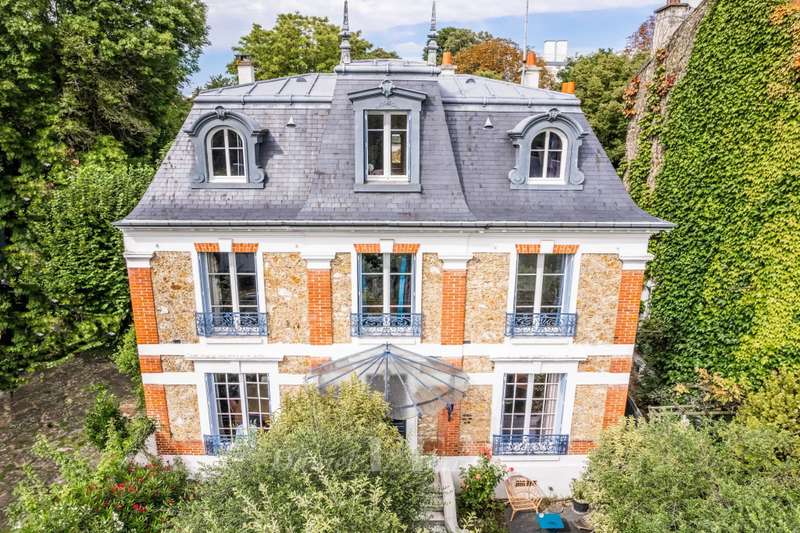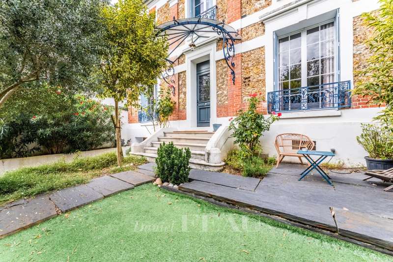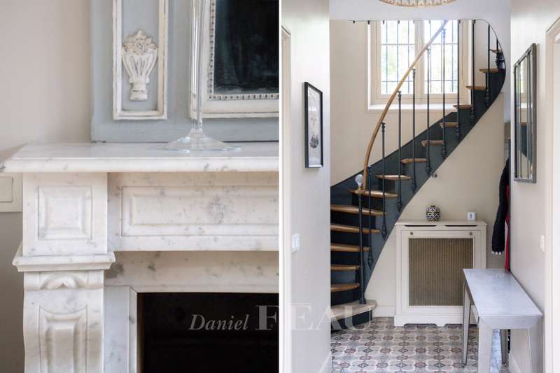 This delightful 1930’s millstone-built property located in a peaceful neighbourhood near the shops was renovated throughout in 2021 and is in very good condition. Set in a 369 sqm plot, it offers about 182 sqm of living space including a living/reception room with a fireplace opening onto the garden, a dining room and a kitchen. Upstairs are three spacious bedrooms, a bathroom and a shower room. The top floor comprises two further bedrooms (one particularly spacious), and a bathroom. On a basement with a garage, a utility/boiler room and a cellar. An ideal family home a short distance west of the capital.