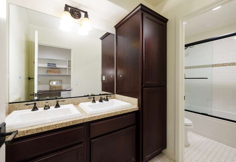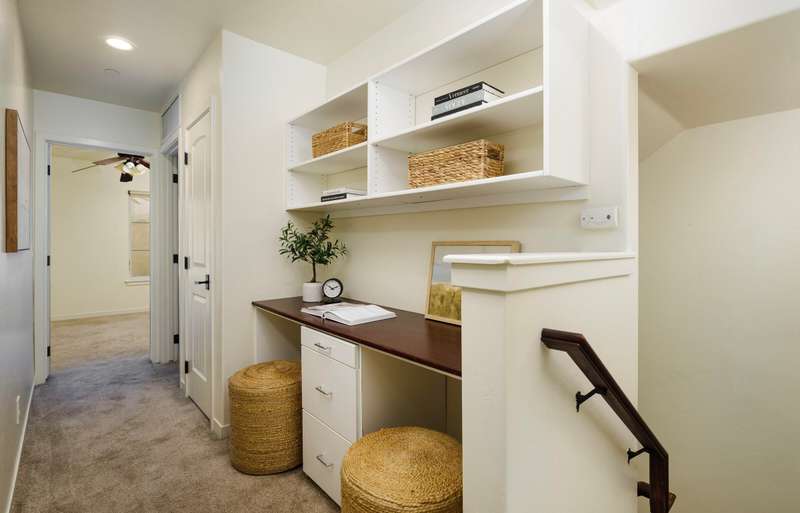 Upstairs, you'll discover two additional built-in desk spaces, a convenient laundry closet, and the spacious primary suite. The suite features a walk-in closet, built-in storage, and serene style your own retreat at the end of the day.