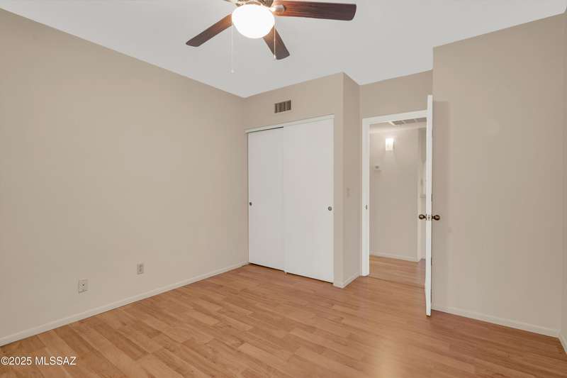 Welcome to this inviting upstairs unit featuring 2 spacious bedrooms and 2 full bathrooms. Enjoy the charm of a bay window, complemented by wood laminate flooring throughout.Stainless steel appliances, ample cabinet space, and a full size washer and dryer. Both bedrooms are generously sized, with the primary suite offering a large walk-in closet and private bath.Located in a community with pool, spa and landscaped common areas. The HOA covers the roof, exterior maintenance, water, trash, and common area.Move-in ready. Don't miss this one!