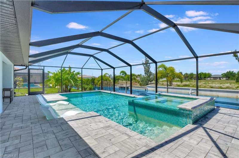 Gorgeous Gulf Access Waterfront Resort Pool Home Located in the Heart of Cape Coral! Great floor plan with Double door entry way and Porcelain Wood Plank Tile throughout the whole house as well as tray ceilings in every room. Beautiful Granite counter tops and upgraded stainless steel appliances that any gourmet chef would appreciate. Natural Gas in home Connected to Stove, Dryer, Instant Tankless Water Heater, Grill, Pool Heater & Generac Generator. Feel secure in this home with an Indoor Ring security system with cameras, outdoor camera system, impact windows & doors and whole house water softener system. Enjoy a cocktail in this Oversized pool with spa and sun shelf with umbrella holder as you watch some amazing sunsets in the area. Huge covered lanai area with pocket door sliders. Not in a Flood Zone! Plenty of room in this 3-car garage to put all your toys in. Large sitting area on the concrete dock great for entertaining or fishing. List of House Features provided! Close to shopping, hotels, restaurants, parks, beaches, boating, fishing, boat ramps, islands and airports. Navigate your boat down beautiful canals as you make your way towards local islands and beaches with awesome fishing in the area. Make the Move to Paradise! Fall in love and make this house your Home!