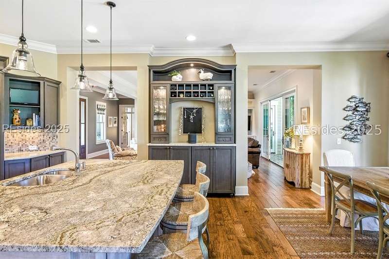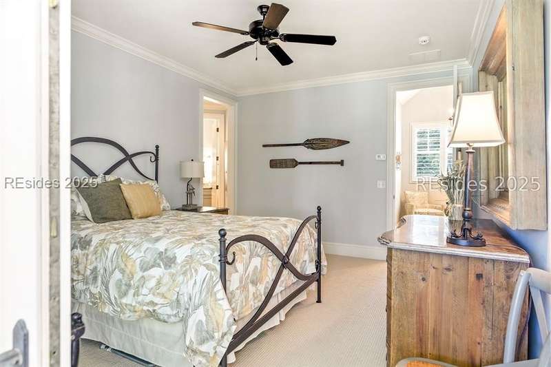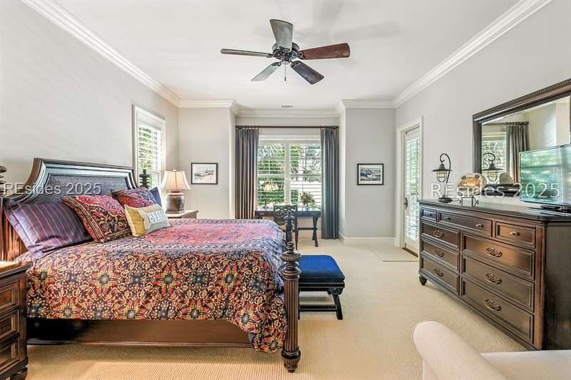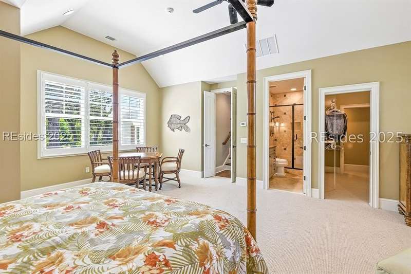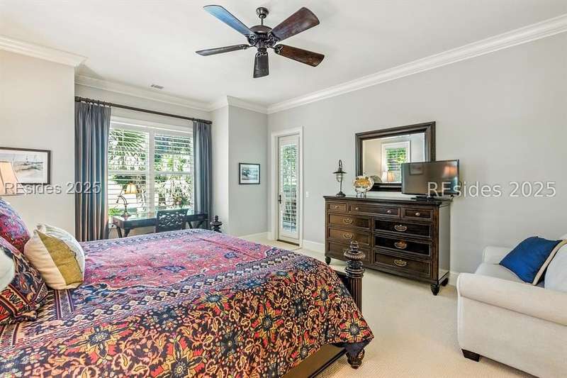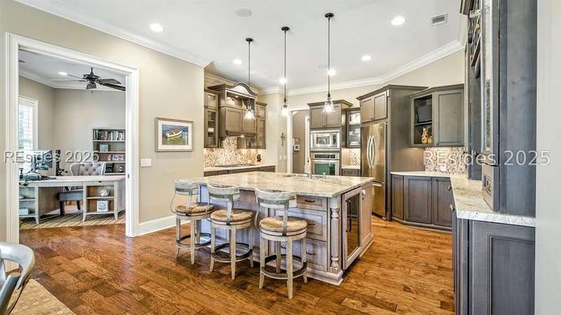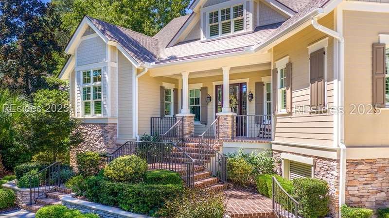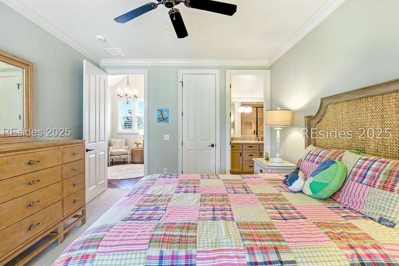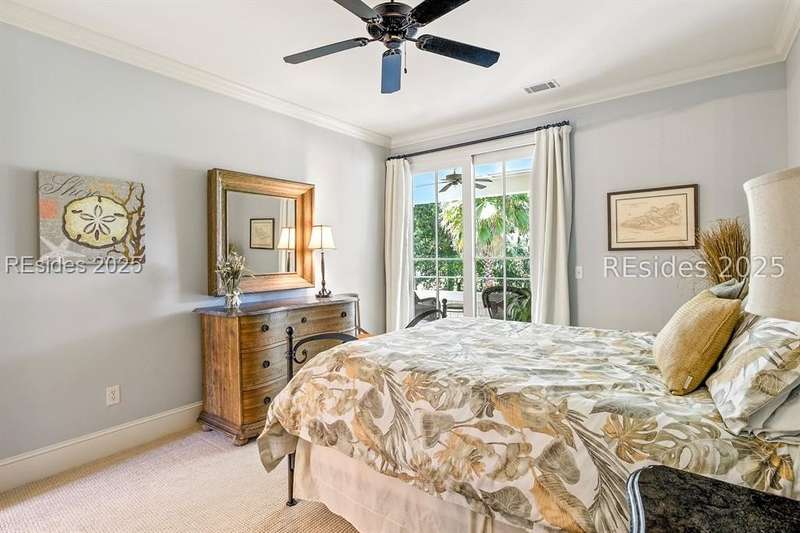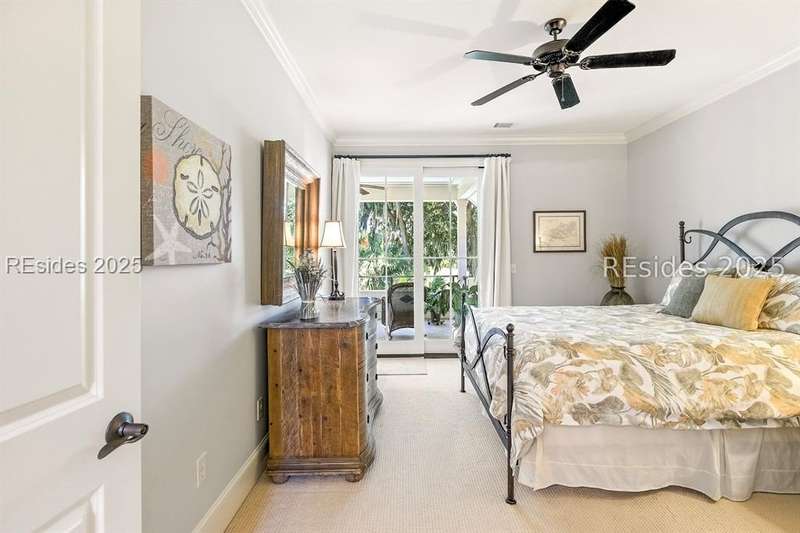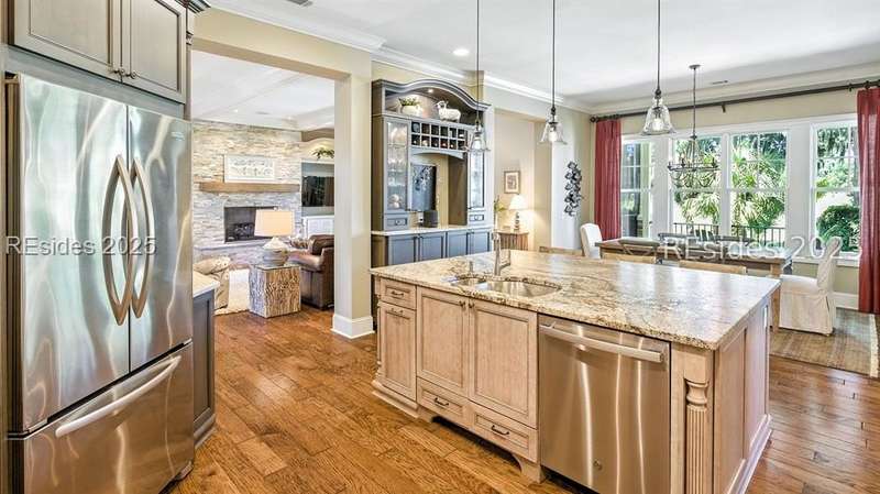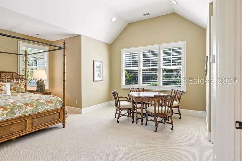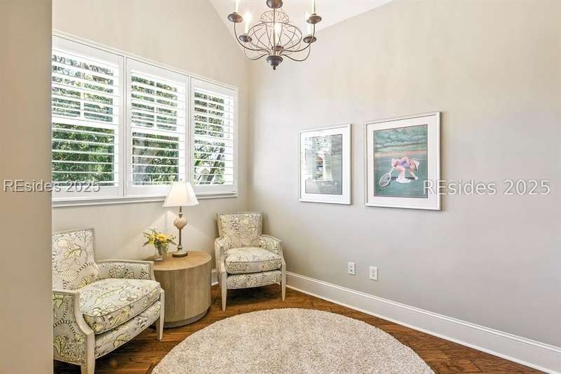 Nestled on a quiet cul-de-sac in the private Leamington community, this award-winning custom home combines timeless design, modern comforts, and a premier setting on the 13th fairway of the Arthur Hills Golf Course. With 3,618 square feet, this home has been meticulously maintained and thoughtfully crafted for both everyday living and entertaining. Inside, the family room centers around a gas fireplace and flows naturally into a custom kitchen, which features a large island, gas cooktop, stainless steel appliances, and beverage refrigerator. The first-floor primary suite offers privacy and convenience, while two upstairs ensuite bedrooms enjoy access to an upper-level covered deck with stunning golf views. A spacious fourth ensuite over the garage features a sitting area and a large walk-in closet, making it an ideal private retreat for guests or extended family. A private office provides the perfect space to work from home. Outdoor living shines with a screened porch, covered grilling deck, and saltwater pool with jacuzzi. Lush landscaping, a mosquito misting system, and panoramic fairway views create a private, resort-like setting. The backyard showcases panoramic fairway views, creating a tranquil retreat. Completing the home are an oversized 2-car garage with a golf cart bay, a spacious, walk-in attic with easy access, impact-rated windows and doors, integrated speakers, and a built-in safe.Living in Leamington means enjoying private beach access at the Leamington Beach Club, a new community pool and recreation complex, kayak launch onto the 11-mile lagoon, playground with bocce courts, golf cart-friendly streets, and 24/7 security. Few communities on Hilton Head offer this level of lifestyle, and few homes capture it as beautifully as 12 Leamington Ct.