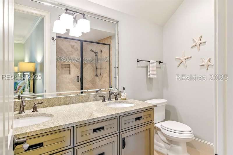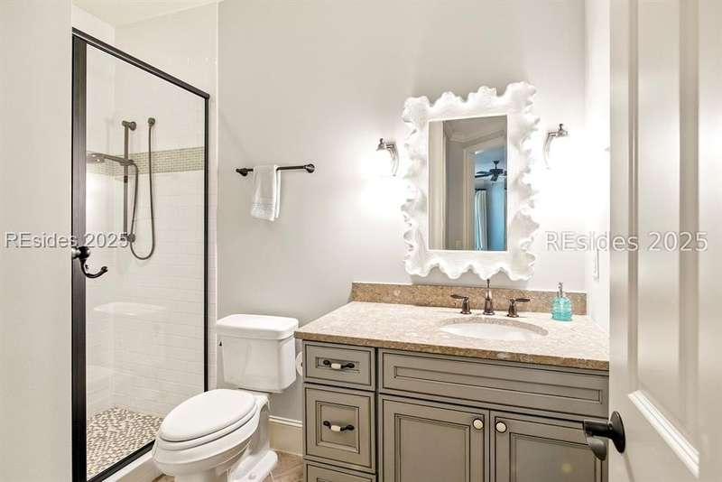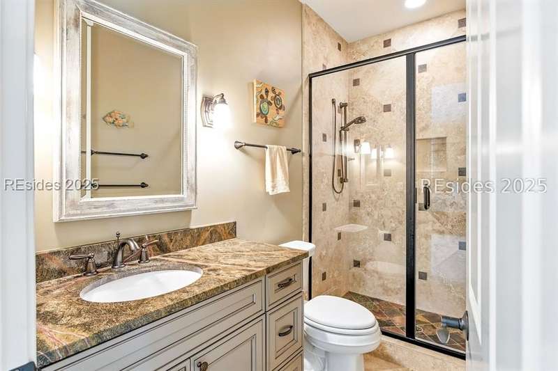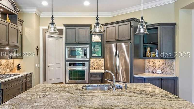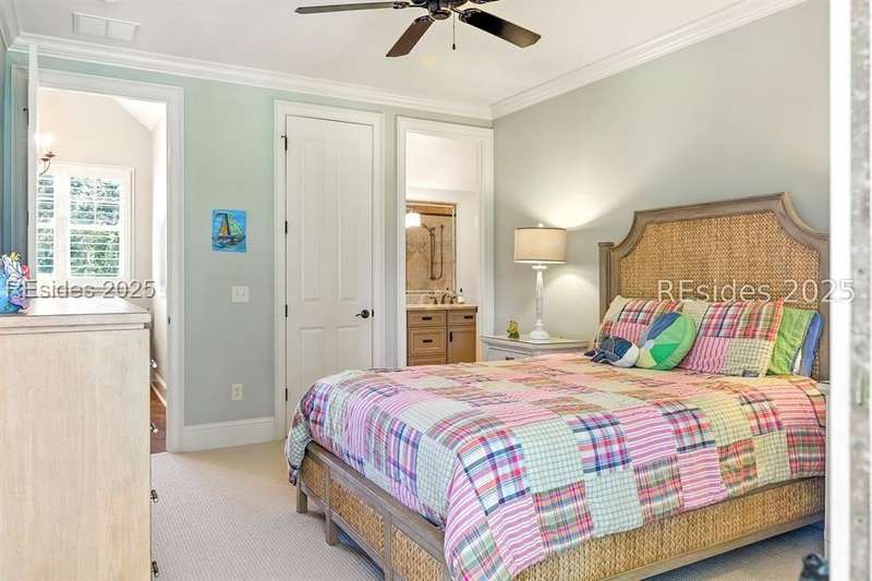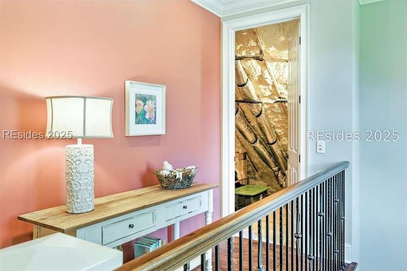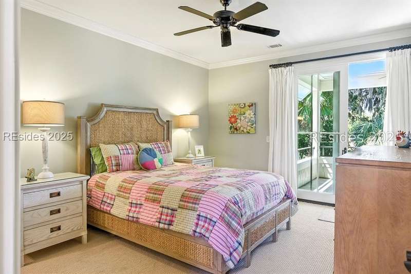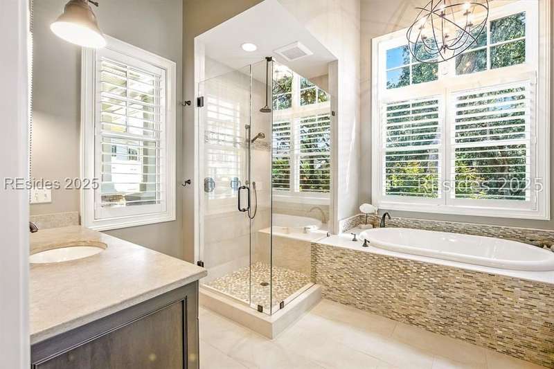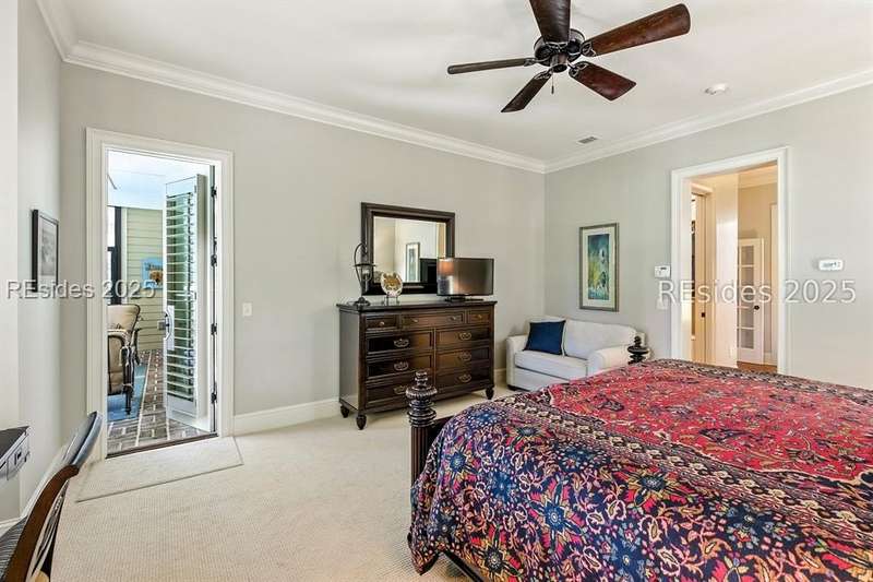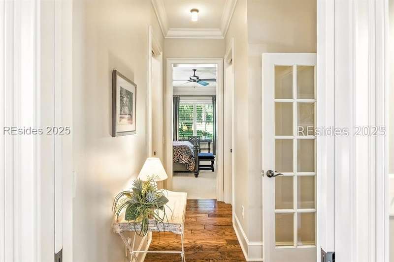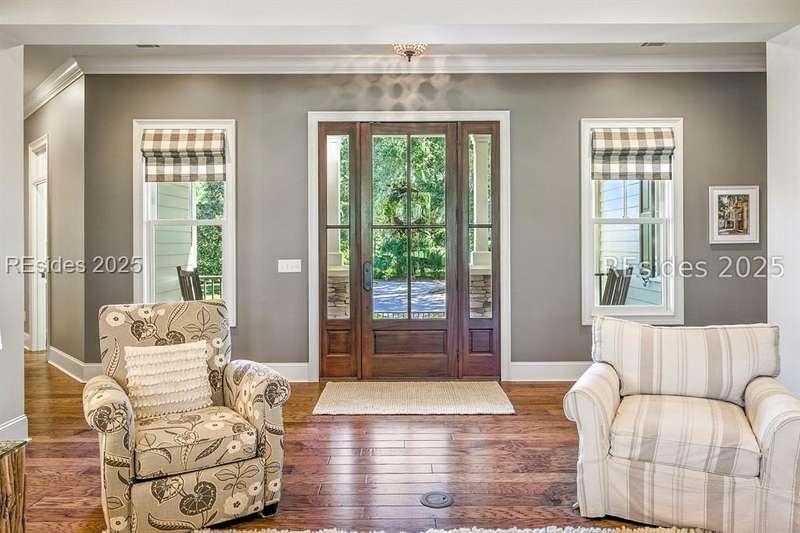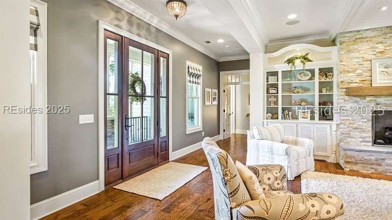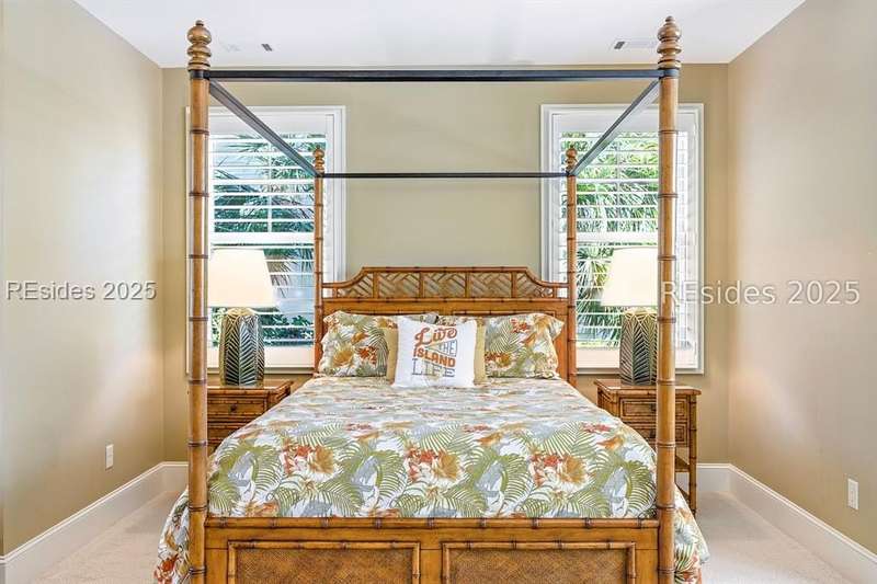 Nestled on a quiet cul-de-sac in the private Leamington community, this award-winning custom home combines timeless design, modern comforts, and a premier setting on the 13th fairway of the Arthur Hills Golf Course. With 3,618 square feet, this home has been meticulously maintained and thoughtfully crafted for both everyday living and entertaining. Inside, the family room centers around a gas fireplace and flows naturally into a custom kitchen, which features a large island, gas cooktop, stainless steel appliances, and beverage refrigerator. The first-floor primary suite offers privacy and convenience, while two upstairs ensuite bedrooms enjoy access to an upper-level covered deck with stunning golf views. A spacious fourth ensuite over the garage features a sitting area and a large walk-in closet, making it an ideal private retreat for guests or extended family. A private office provides the perfect space to work from home. Outdoor living shines with a screened porch, covered grilling deck, and saltwater pool with jacuzzi. Lush landscaping, a mosquito misting system, and panoramic fairway views create a private, resort-like setting. The backyard showcases panoramic fairway views, creating a tranquil retreat. Completing the home are an oversized 2-car garage with a golf cart bay, a spacious, walk-in attic with easy access, impact-rated windows and doors, integrated speakers, and a built-in safe.Living in Leamington means enjoying private beach access at the Leamington Beach Club, a new community pool and recreation complex, kayak launch onto the 11-mile lagoon, playground with bocce courts, golf cart-friendly streets, and 24/7 security. Few communities on Hilton Head offer this level of lifestyle, and few homes capture it as beautifully as 12 Leamington Ct.